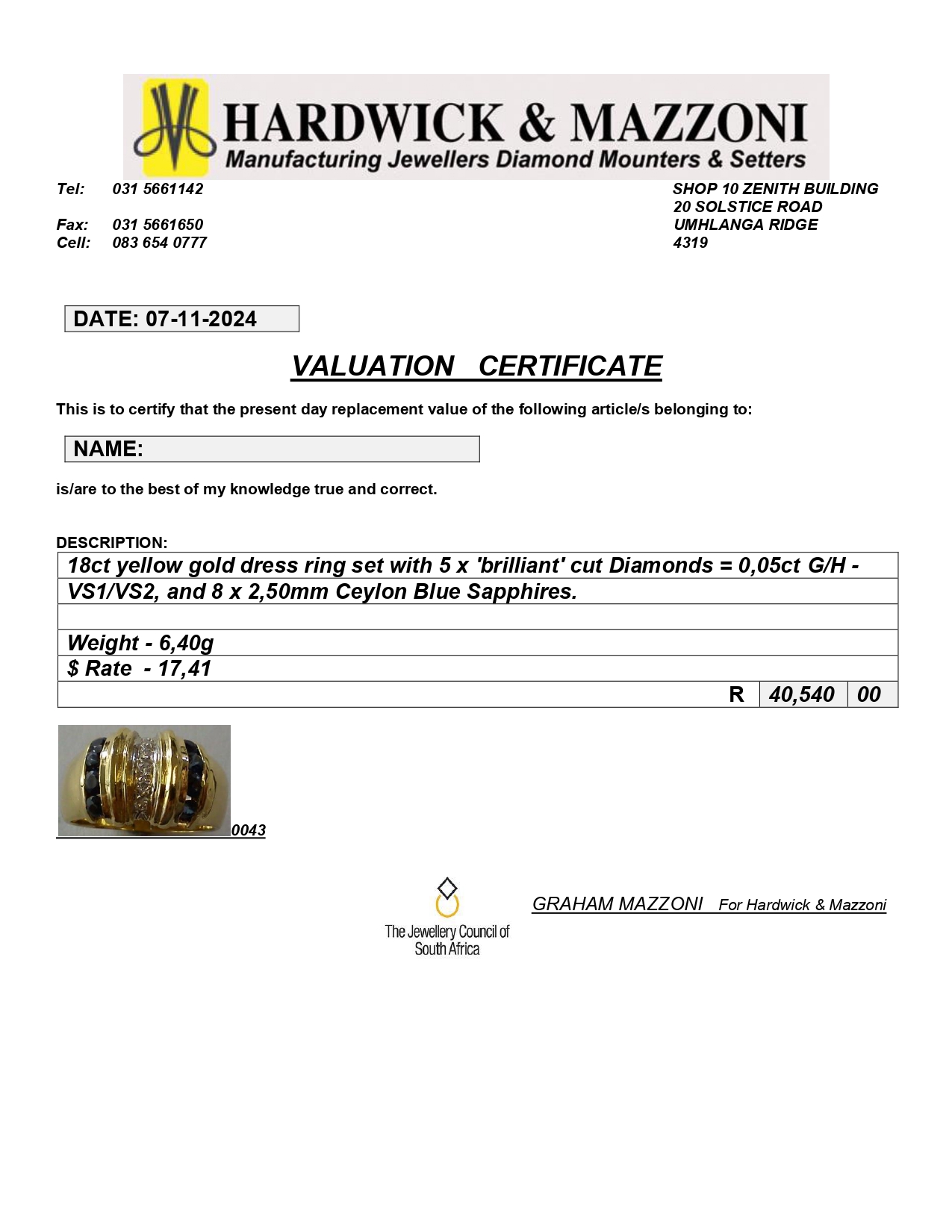 This lovely ring comes with a detailed valuation, with a replacement of R 40540, a copy of which is listed in the photographs. (The valuation was done by a very reputable jeweller).