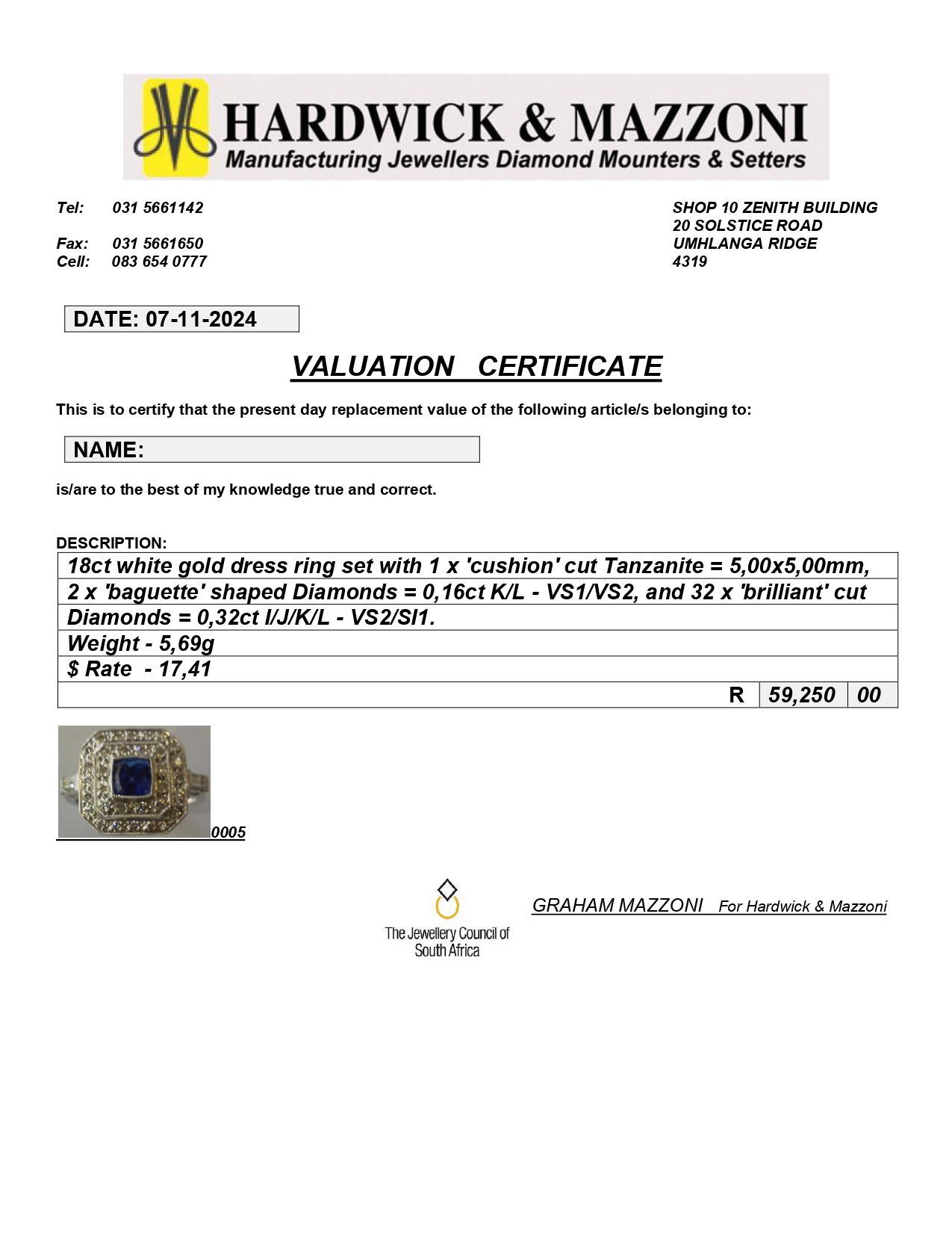 Replacement Value = R59 250 (This ring is sold with a reputable independent jeweller’s valuation certificate.)