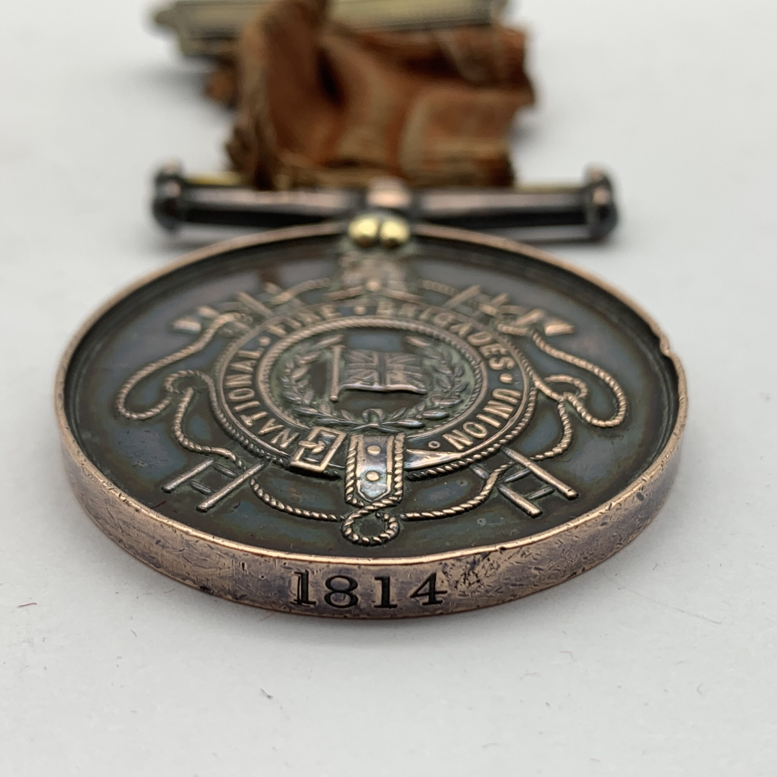 This original, very early ‘National Fire Brigade Association Long Service’ medal in bronze was awarded in 1903 to ‘J. ALMOUR’ of the ‘B.C.F.B.’ (B? City Fire Brigade) and is numbered on the rim ‘1814’. It’s a good quality medal, in great condition with nice detail, and has its original and very aged piece of ribbon. It measures 50mm x 40mm and weighs 35,2g.