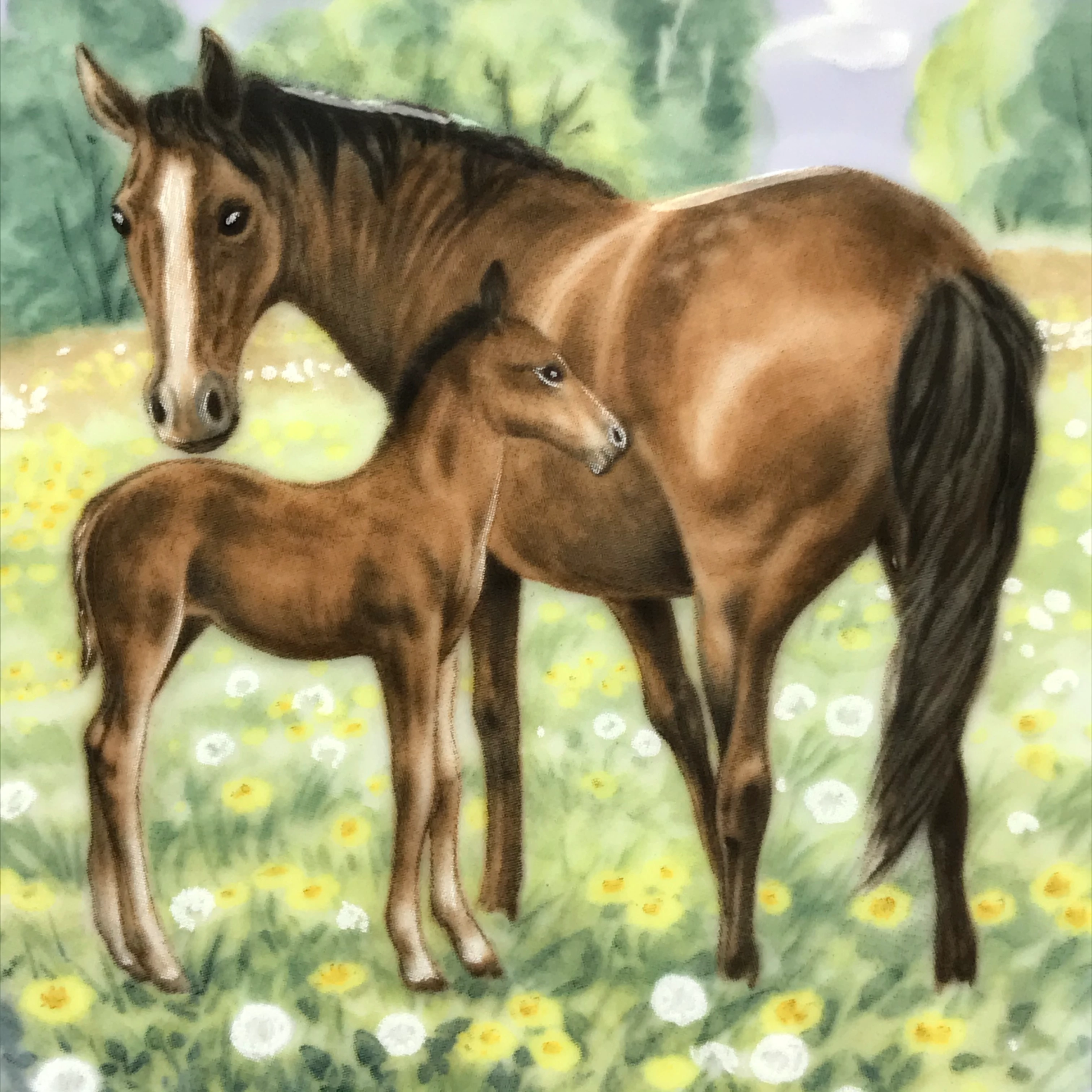 This charming plate - ‘The Colt’ - is from the ‘Nature’s Children’ series which was designed by ‘Jorgen Nielsen’ and produced, in a limited edition, by the Royal Copenhagen factory in Denmark between 1993 and 1998. It depicts a horse and foal, in relief, standing in a gorgeous field of flowers, on a pale blue background and is numbered ‘2102 A’ on the back. It is in excellent condition and measures 16.3cm in diameter.