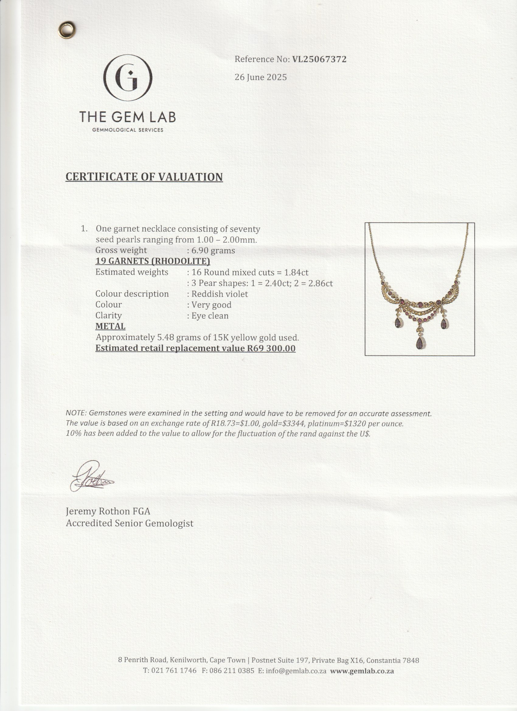 This fine quality necklace comes with a detailed valuation, with a replacement of R69 300, a copy of which is listed in the photographs. (The valuation was done by a very reputable Gemmologist, but it doesn’t take antiquity and rarity into consideration).