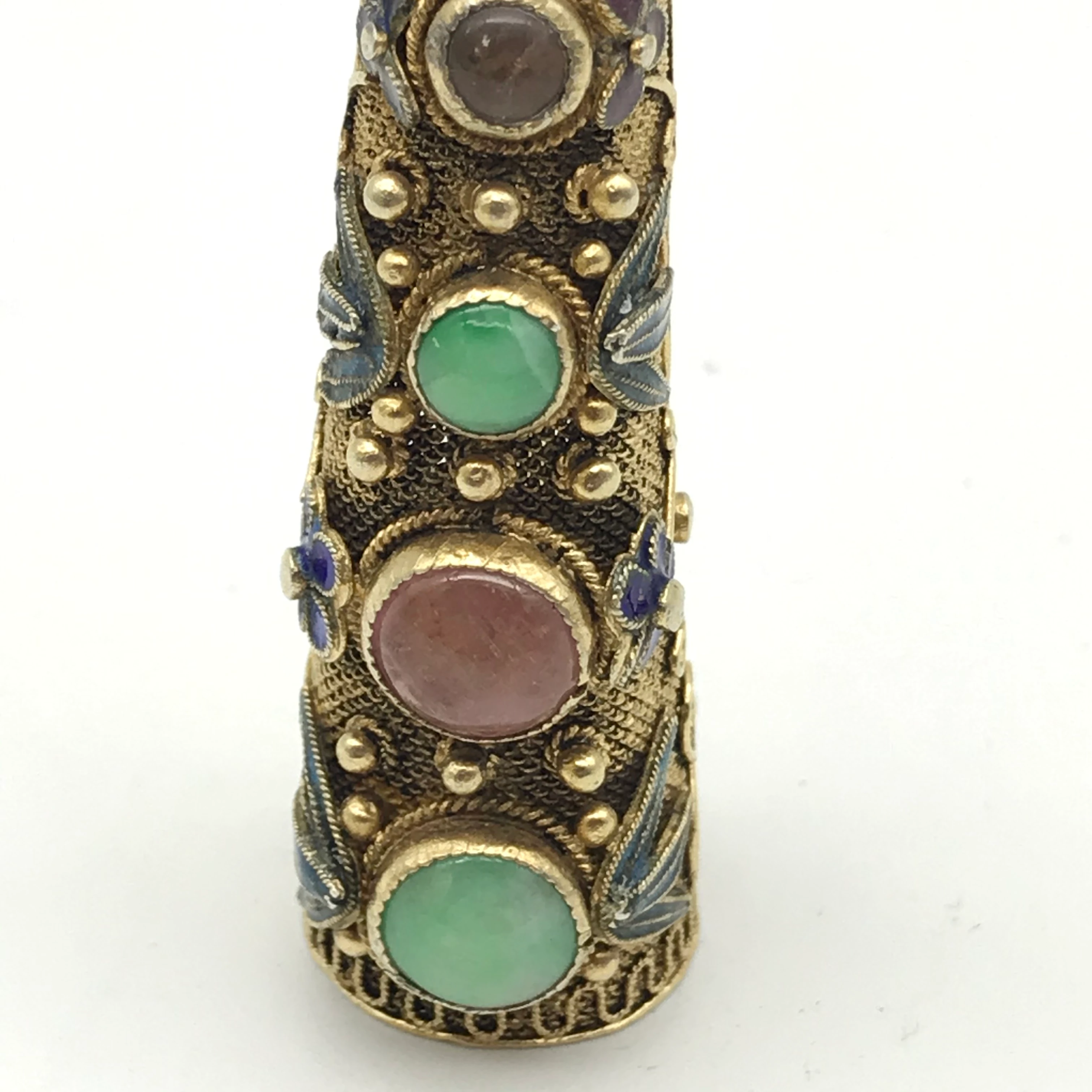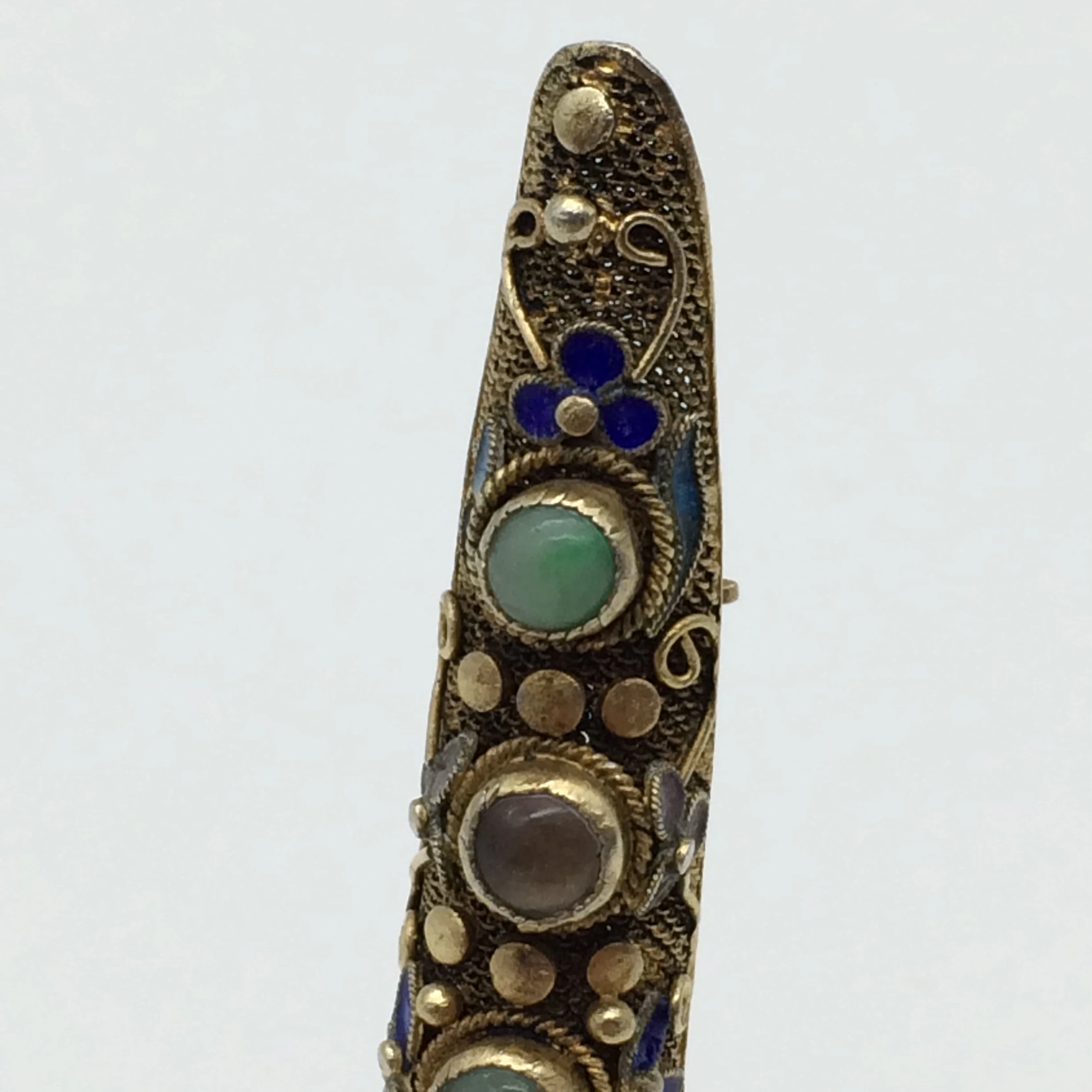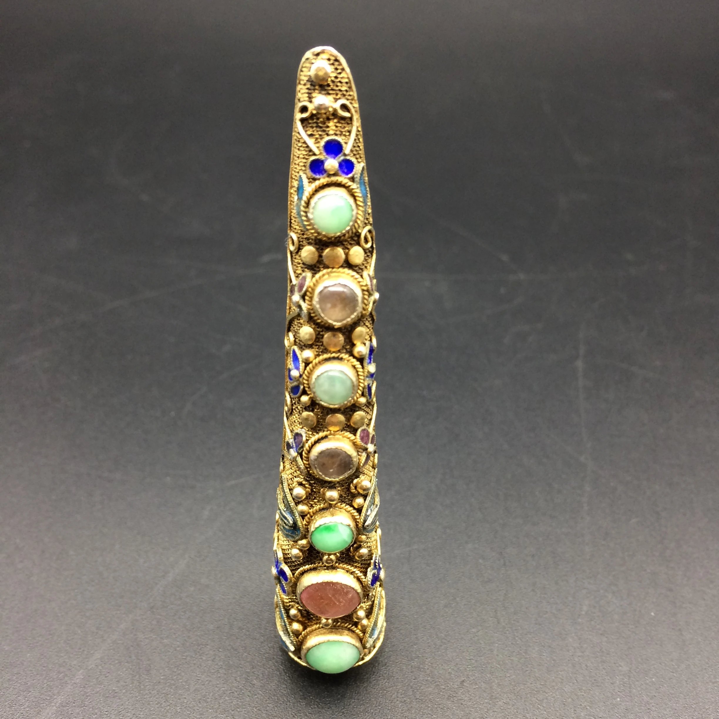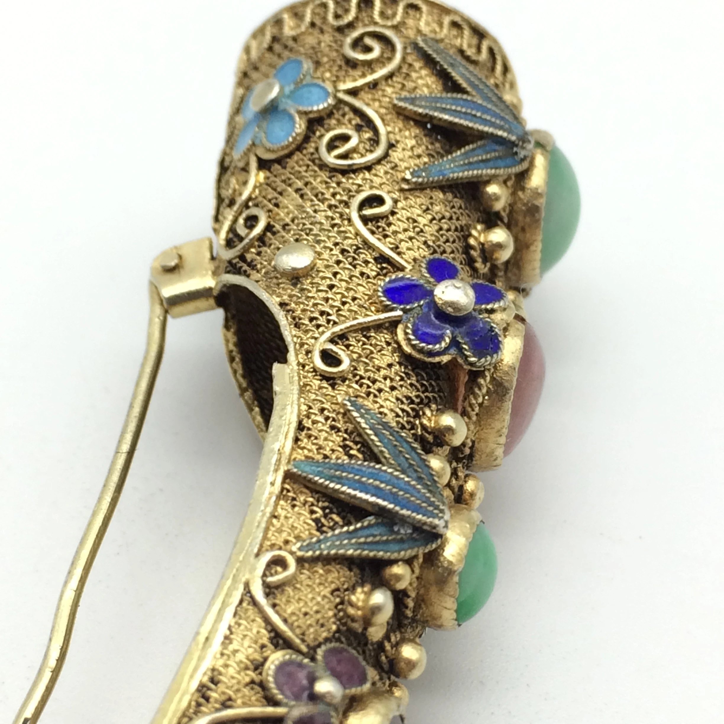 Antique Chinese Silver, Enamel & Gemstone ‘Nail Protector’ Brooch