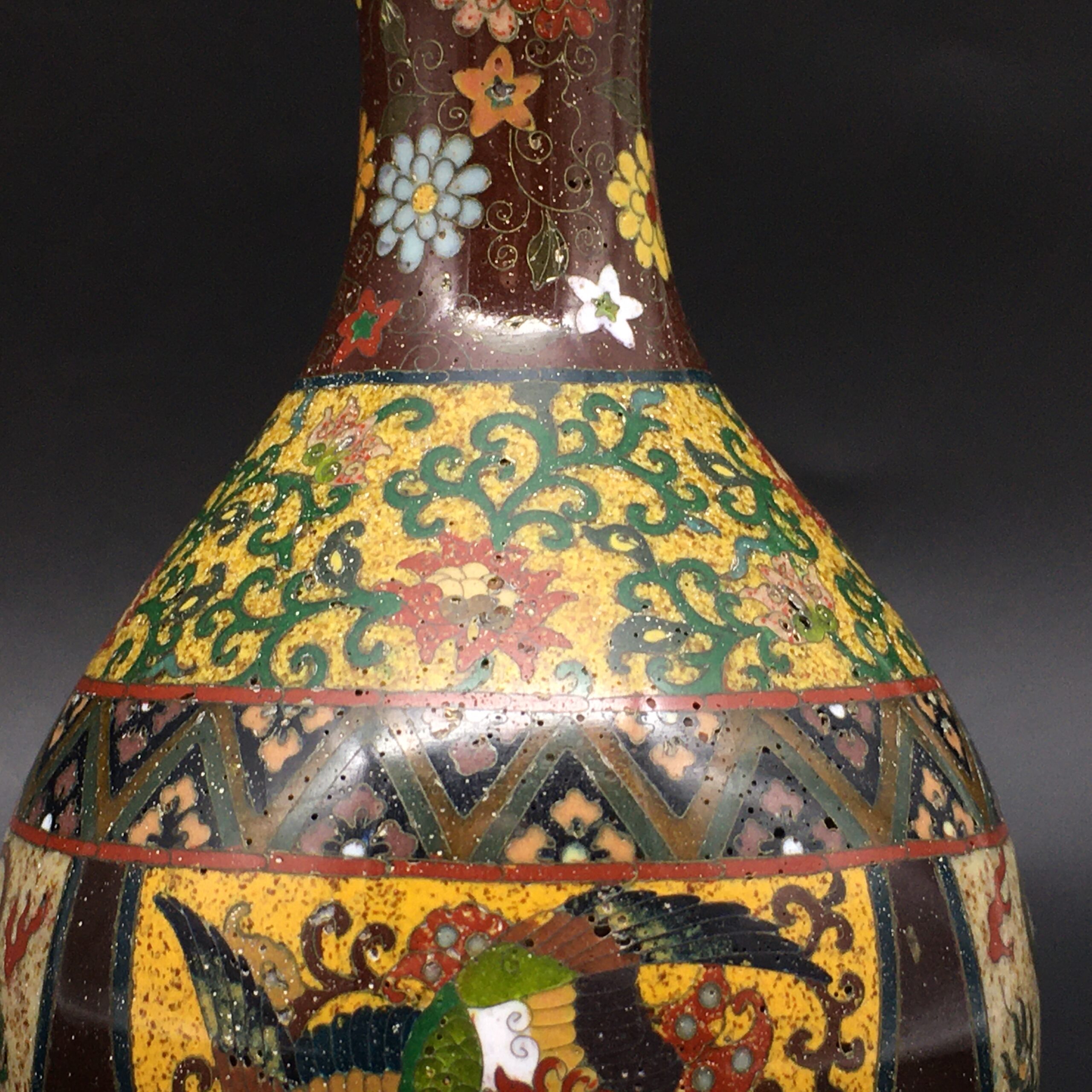 Antique Japanese Cloisonne Enamel Vase (Meiji Period)