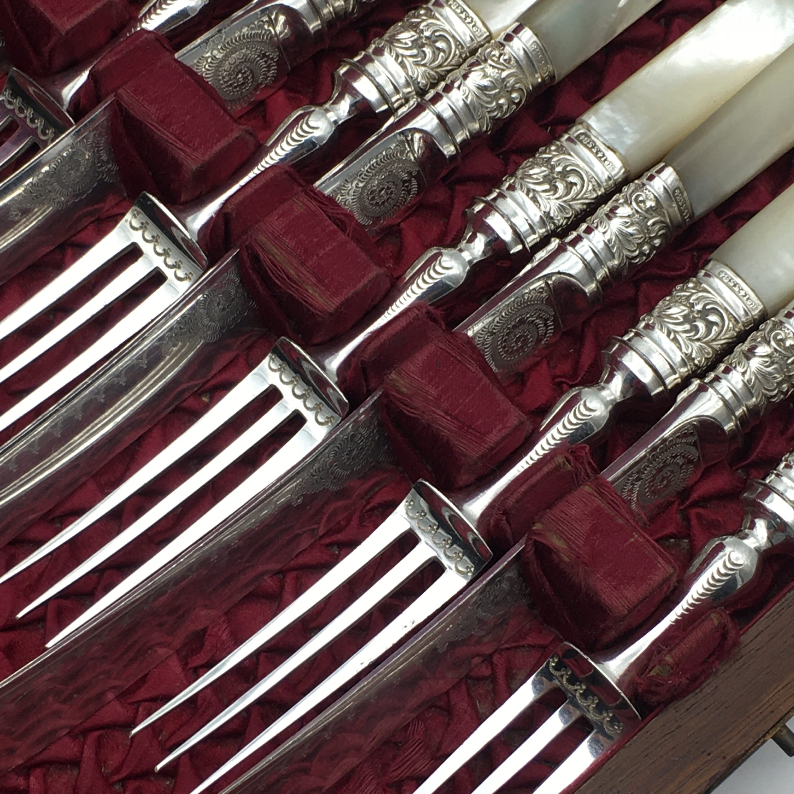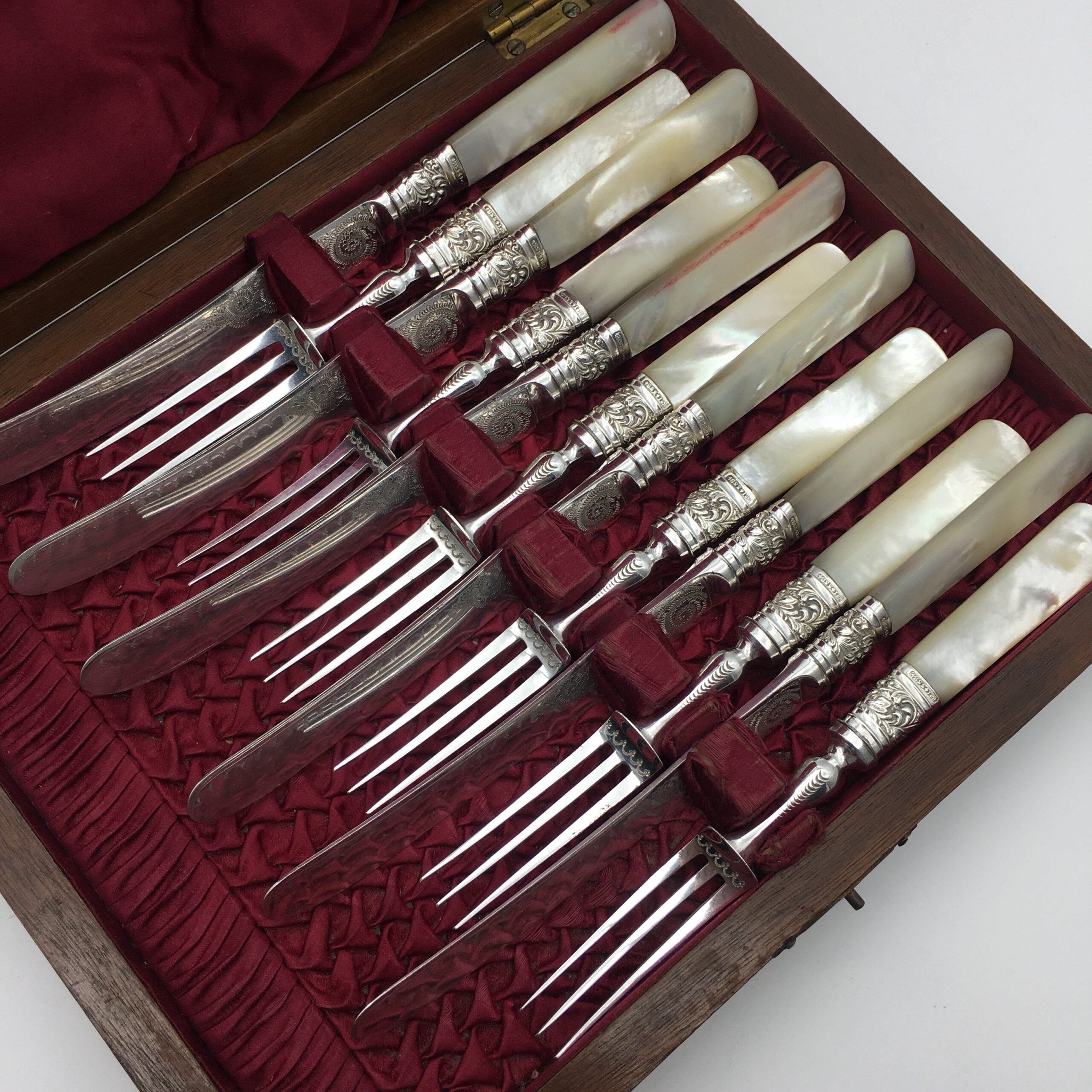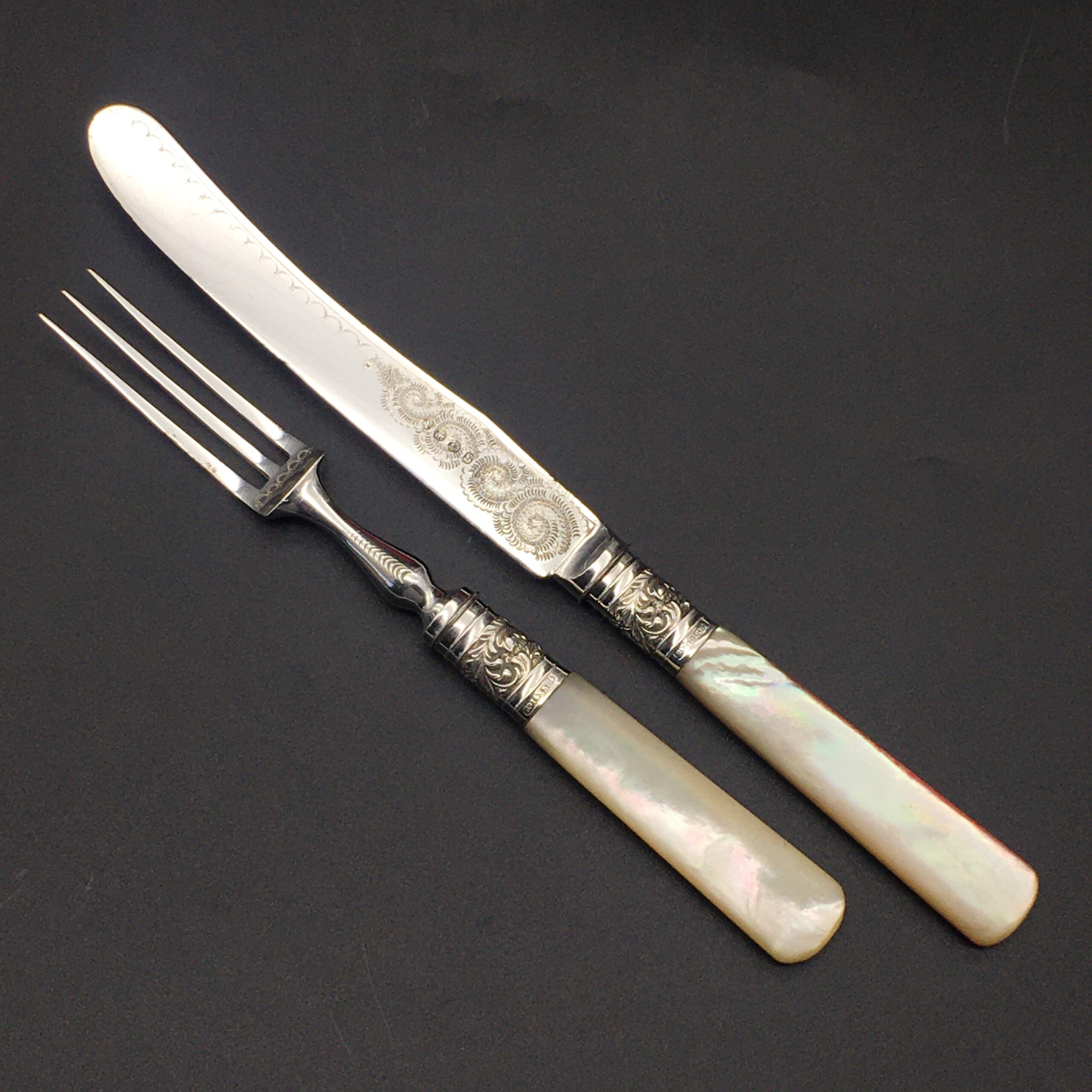 Antique Mother-of-Pearl & Silver-Plate Dessert or Fruit Set (Cased)