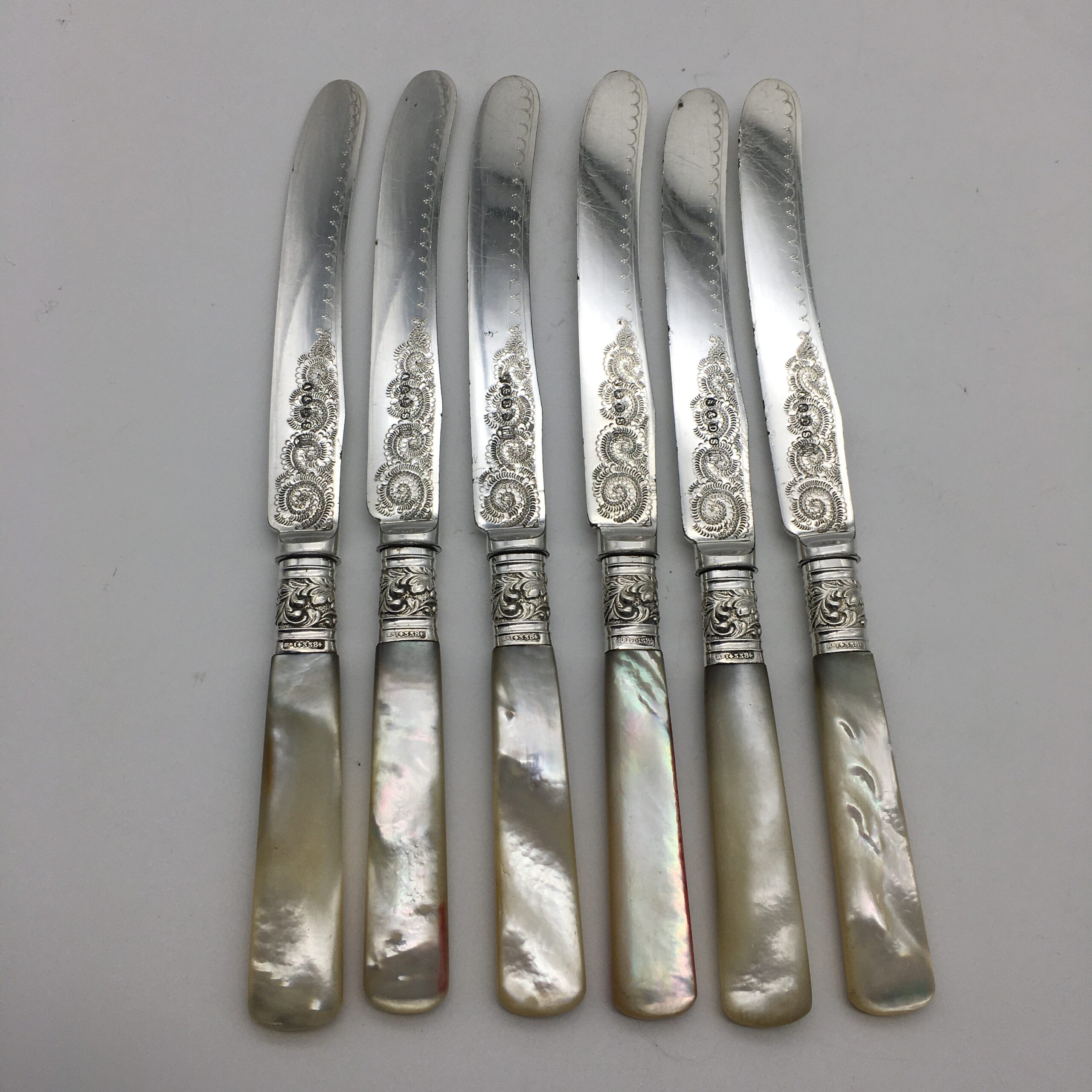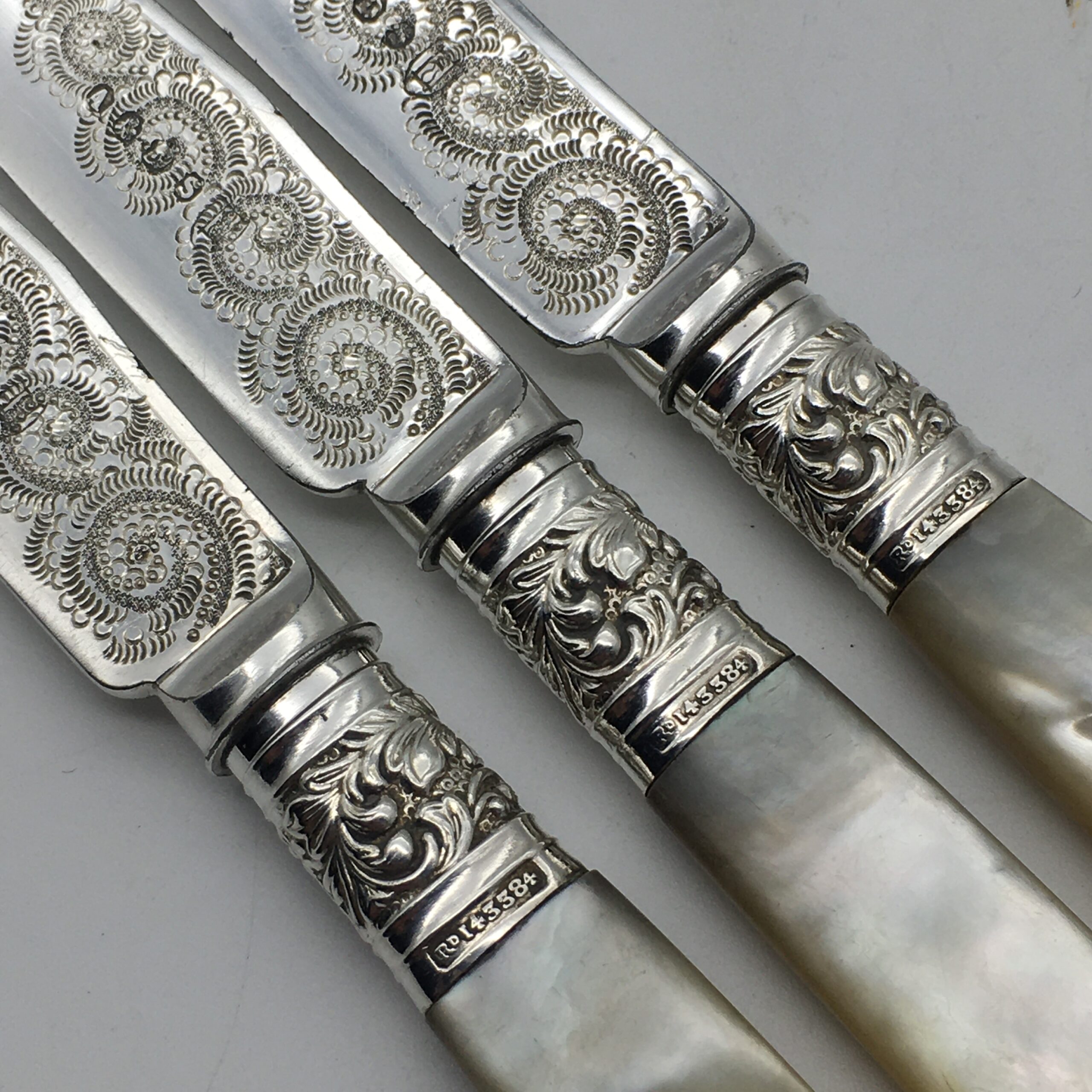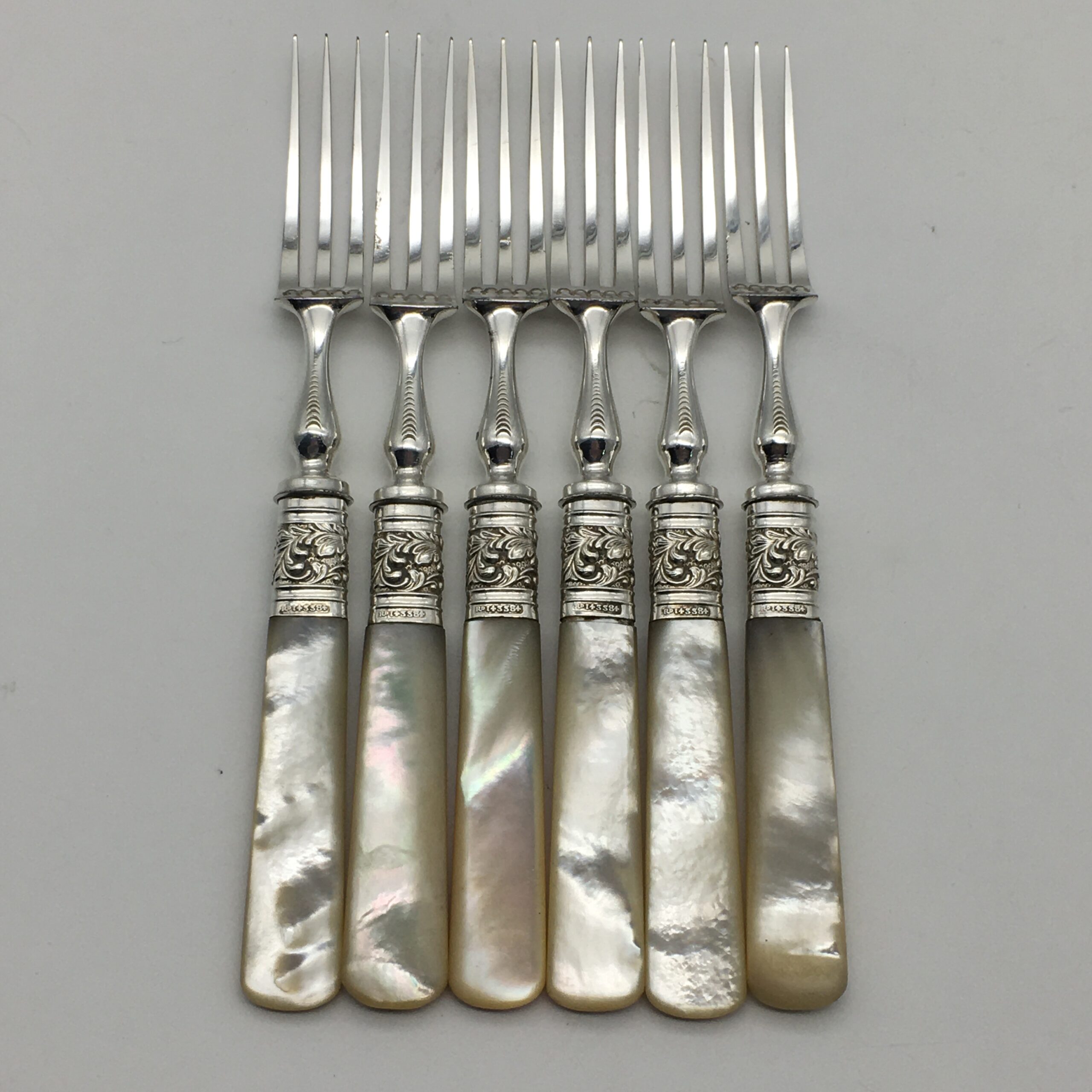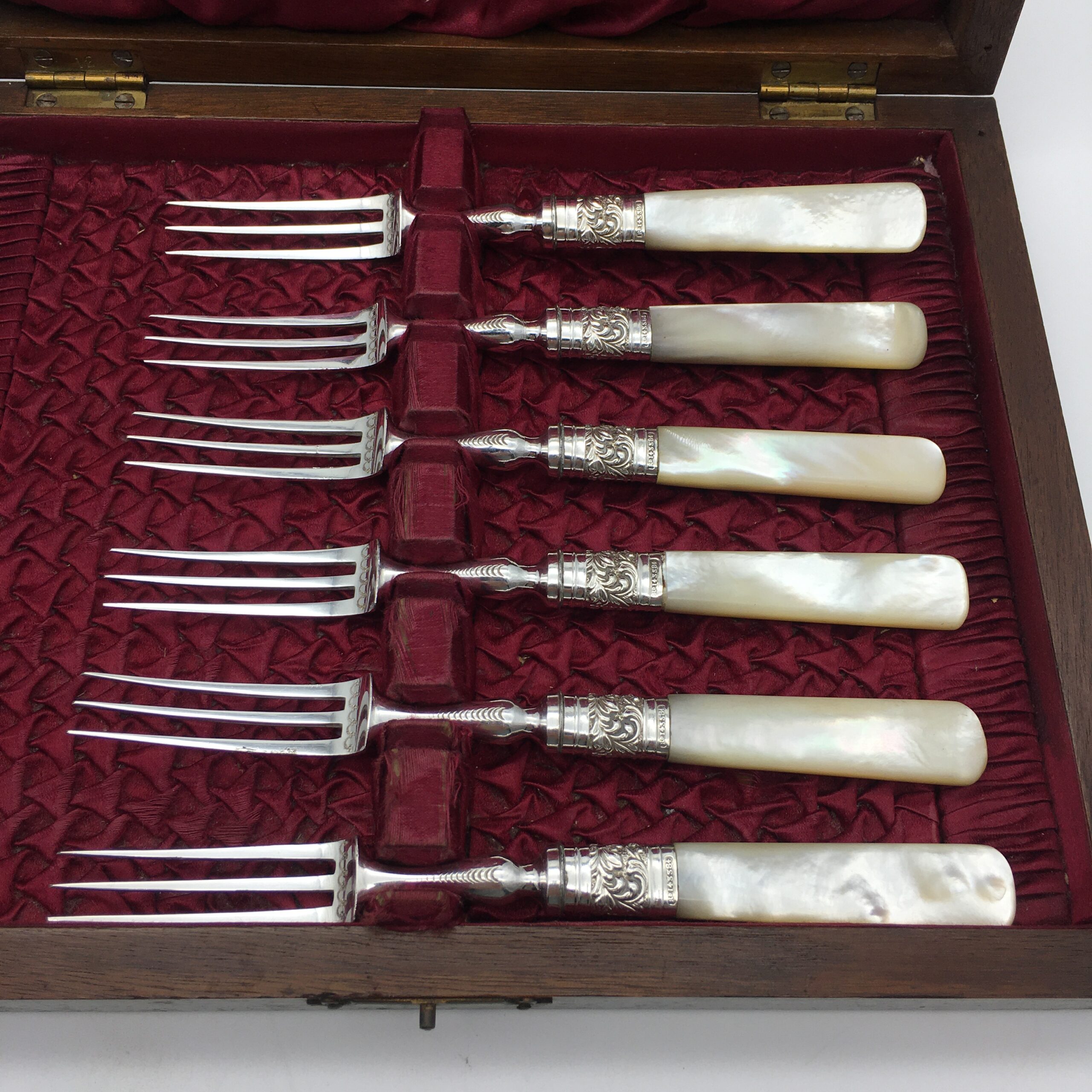 Antique Mother-of-Pearl & Silver-Plate Dessert or Fruit Set (Cased)