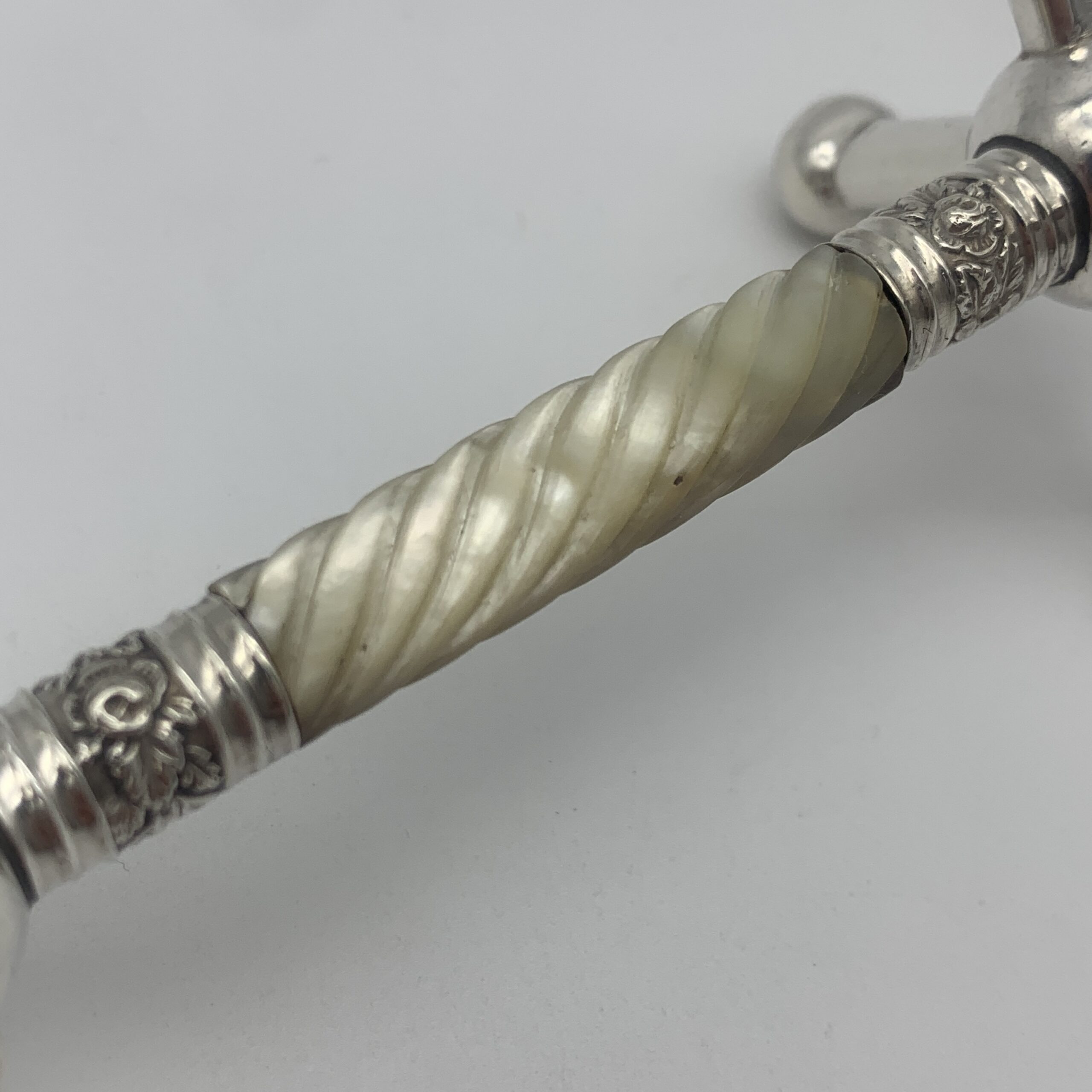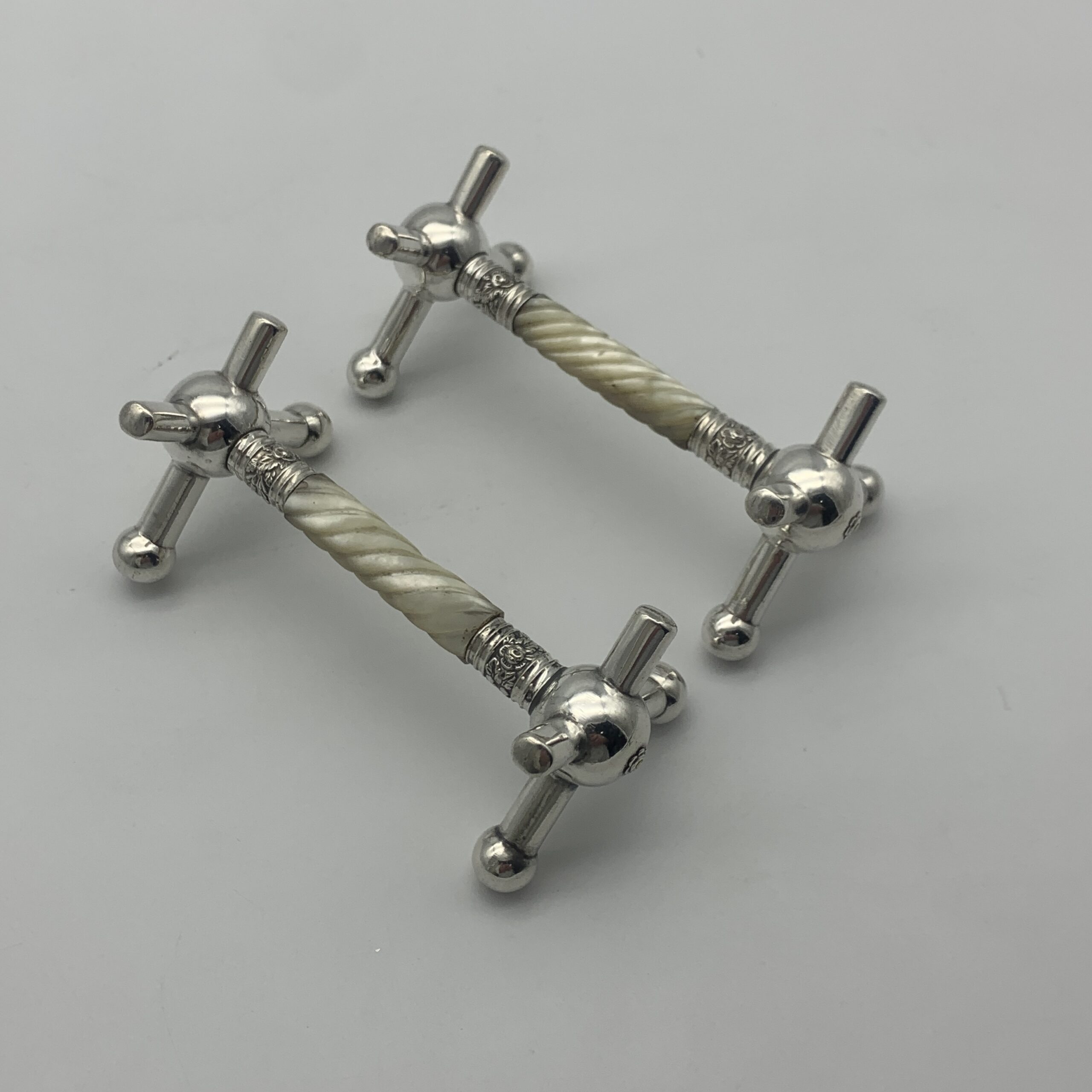Antique Pair of Silver-Plate & Mother of Pearl Knife Rests