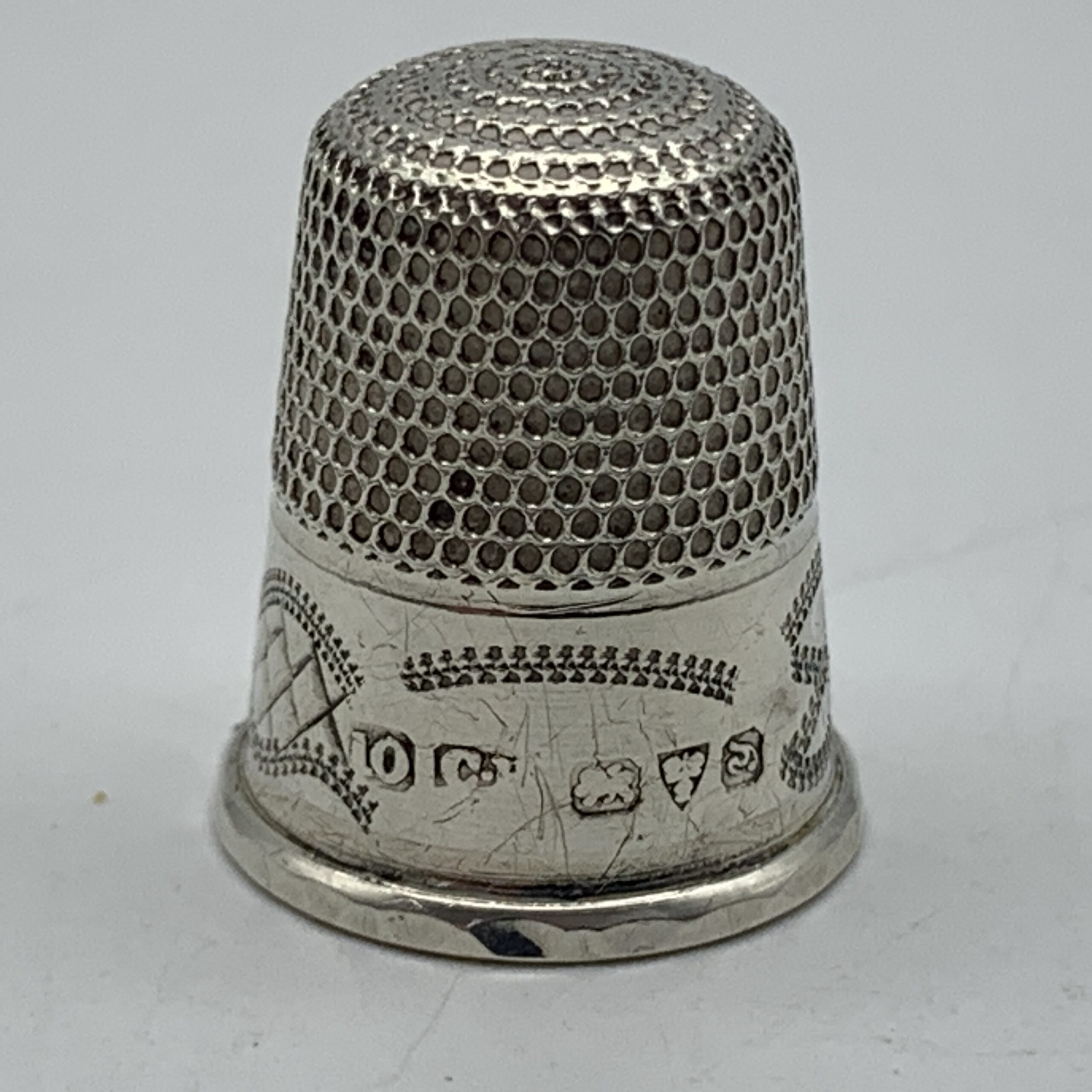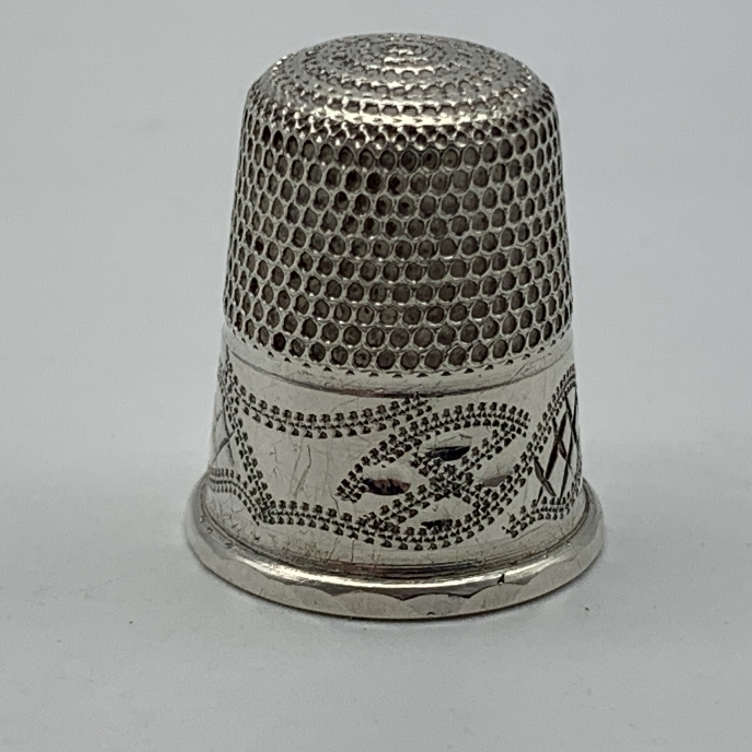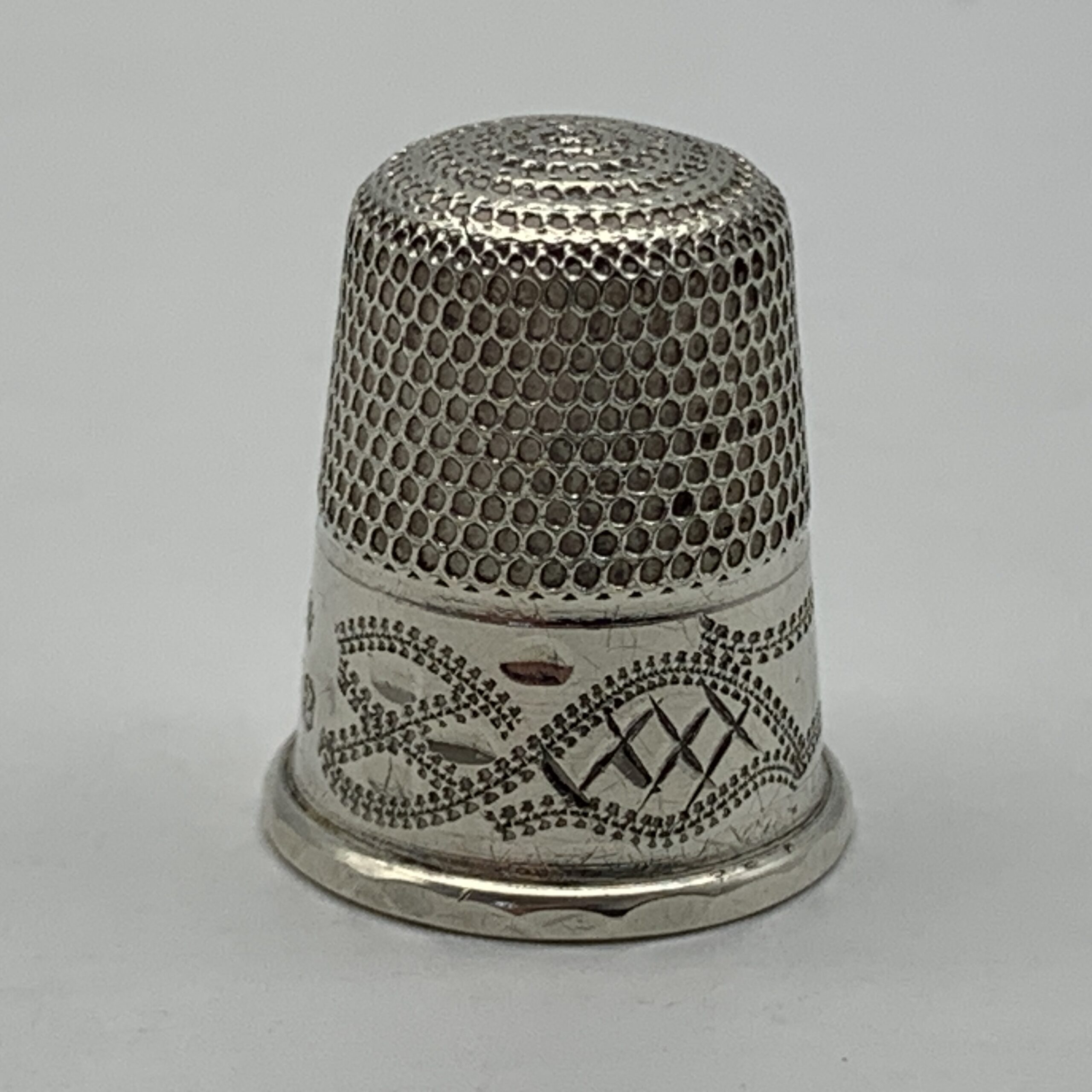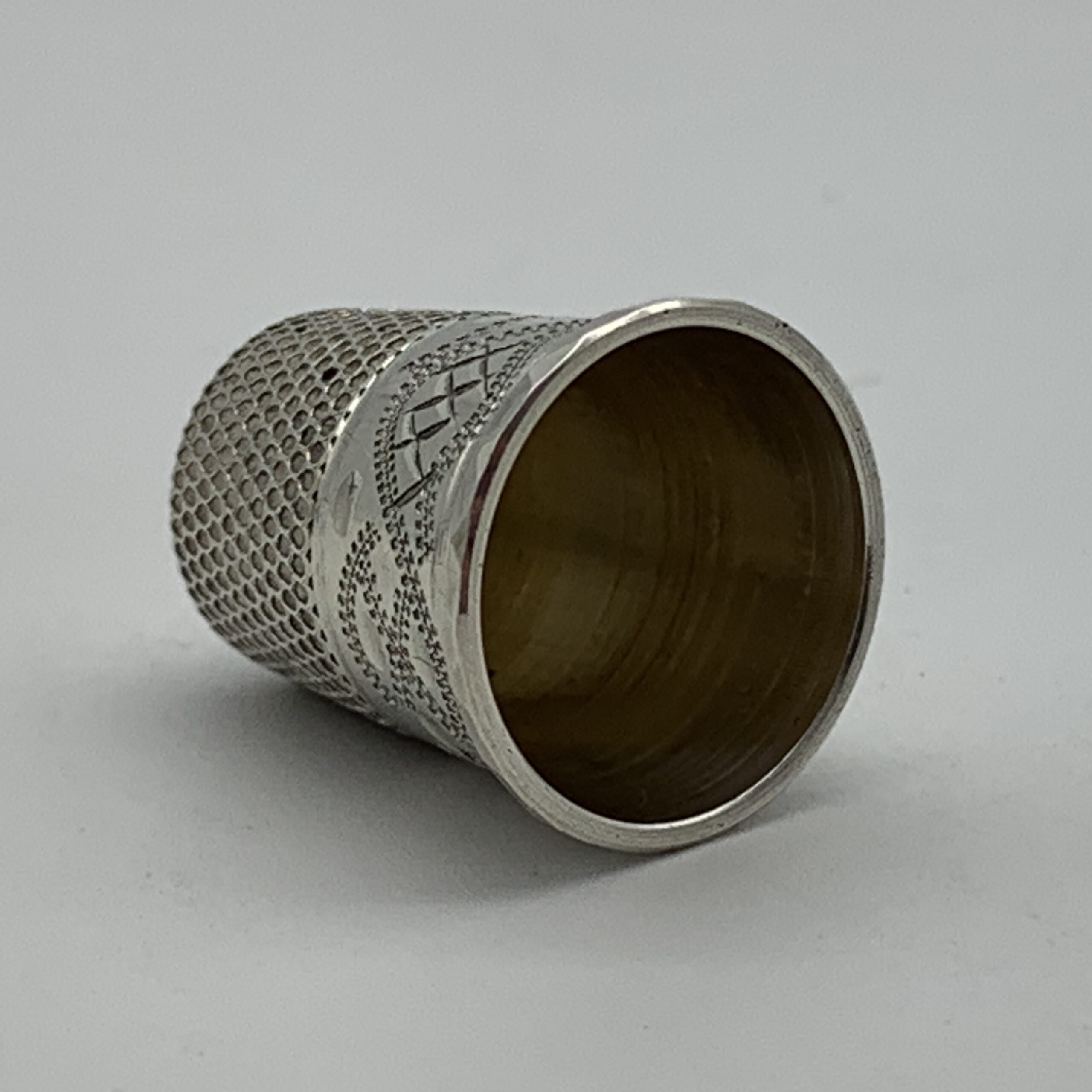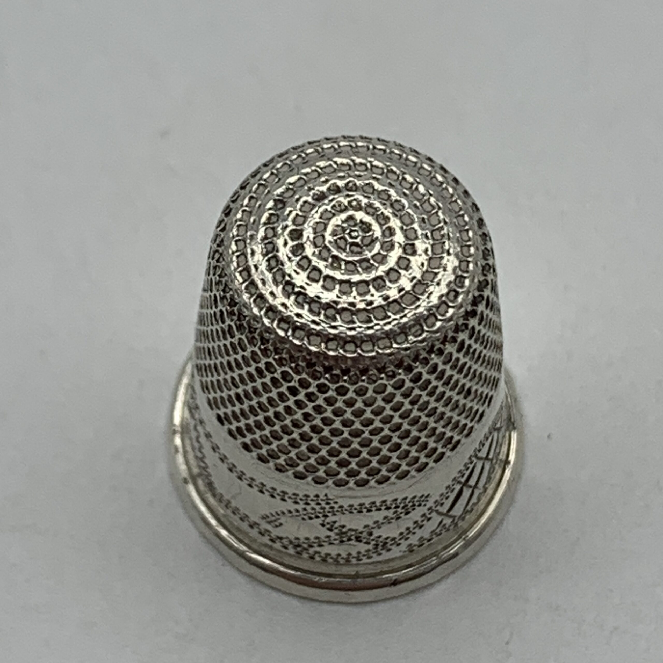 This early, sterling silver thimble was made in Chester, England in 1924 by silversmiths ‘Charles Horner’. It is in excellent condition and measures 16mm x 20mm and weighs 2,2g.