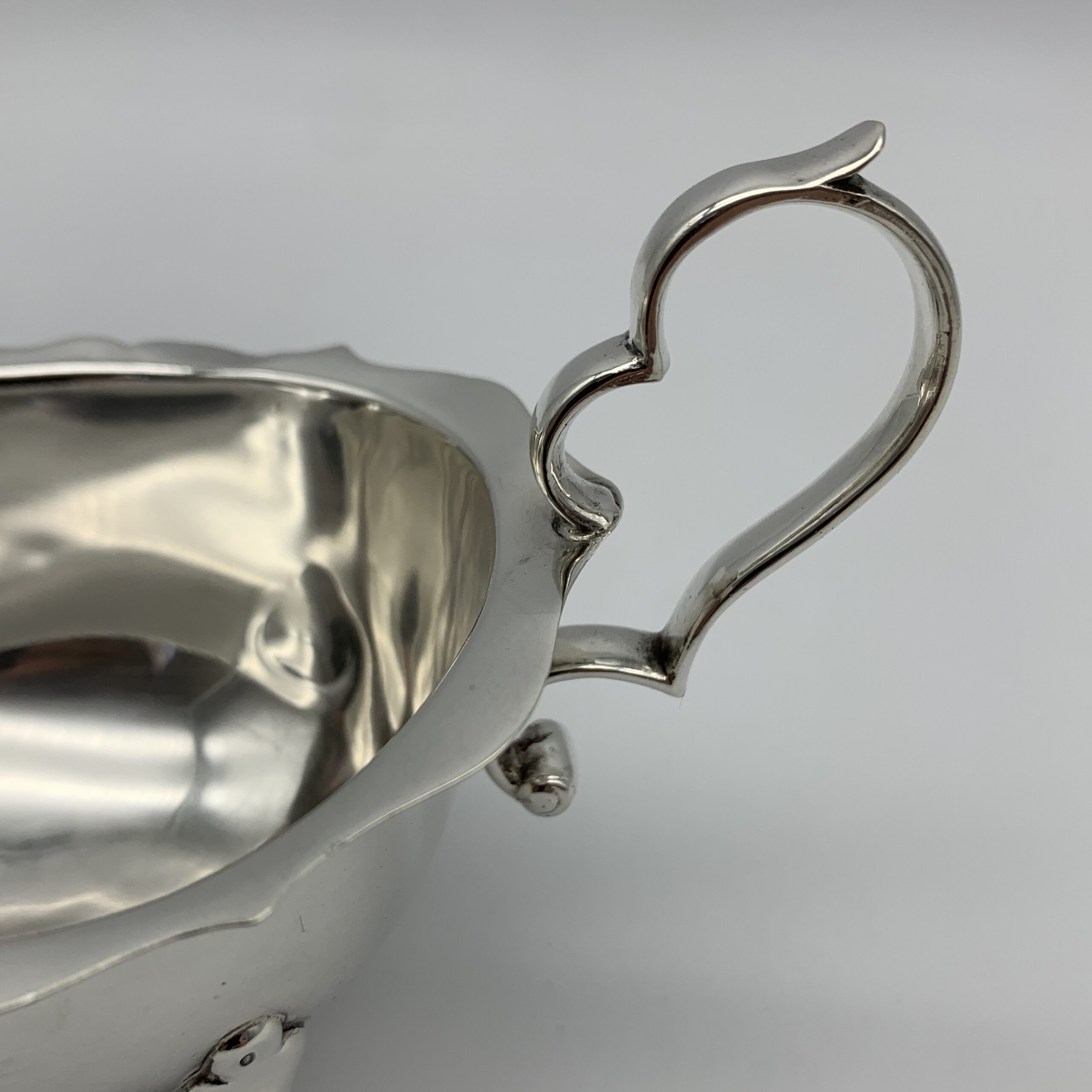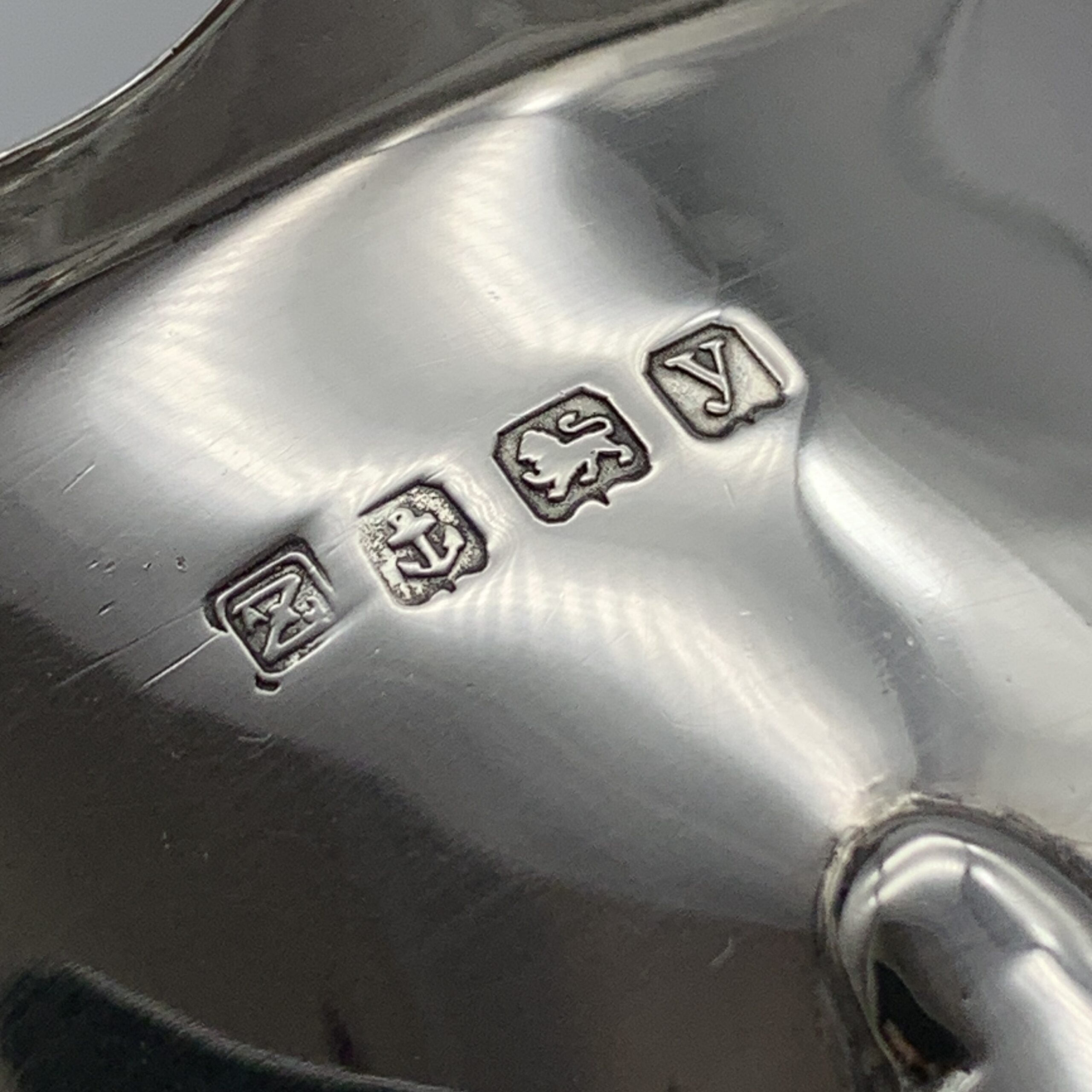 This lovely, fine quality, sterling silver sauce or gravy boat from the early 1920’s, is in excellent condition with clear English hallmarks and a nice weight. It was made in Birmingham in 1923 by silversmiths ‘A & J Zimmerman Ltd’ (AZJ), which was founded by ‘Arthur & John Zimmerman’ in 1879 and stopped trading in 1920. The gravy boat measures 15,5cm from handle to spout, with a width of 9cm, stands 8,5cm high and weighs 105g.