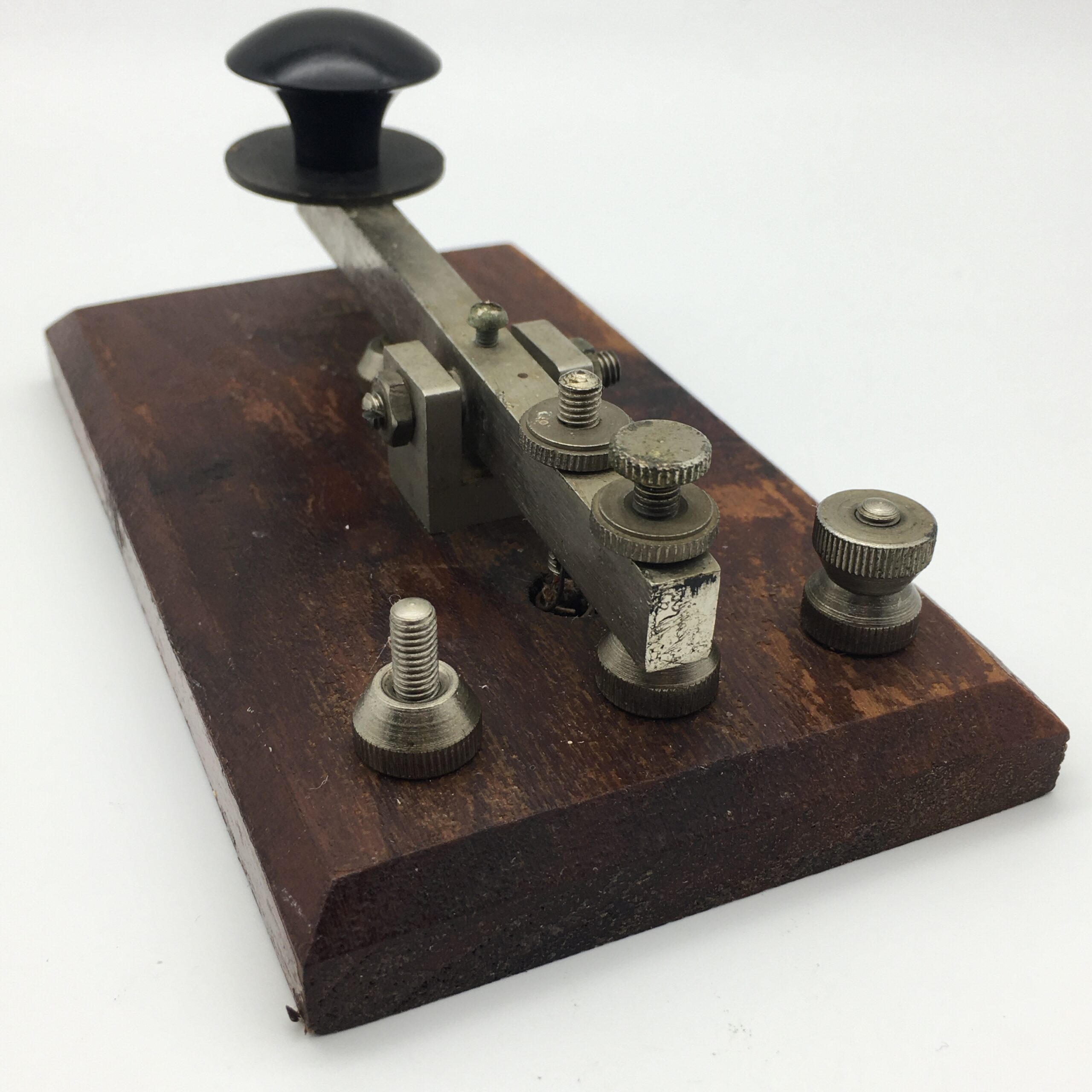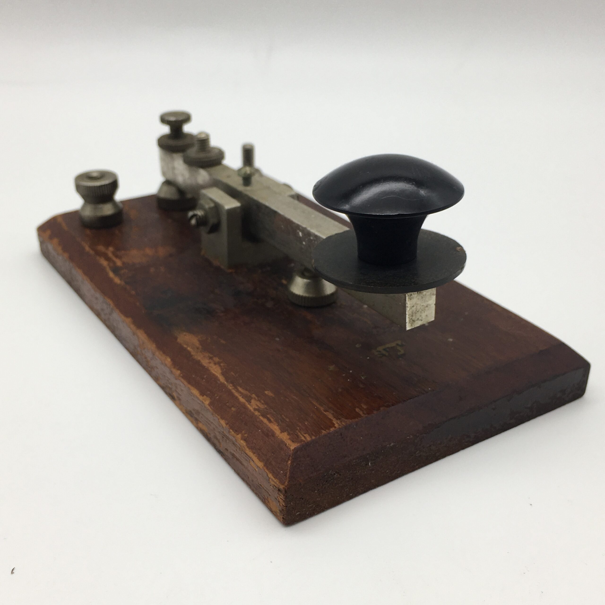 This early, original, wooden and white metal telegraph key from the early 1900’s, appears to be in great condition for its age. It measures 15cm x 8,5cm, and stands 5,7cm high.