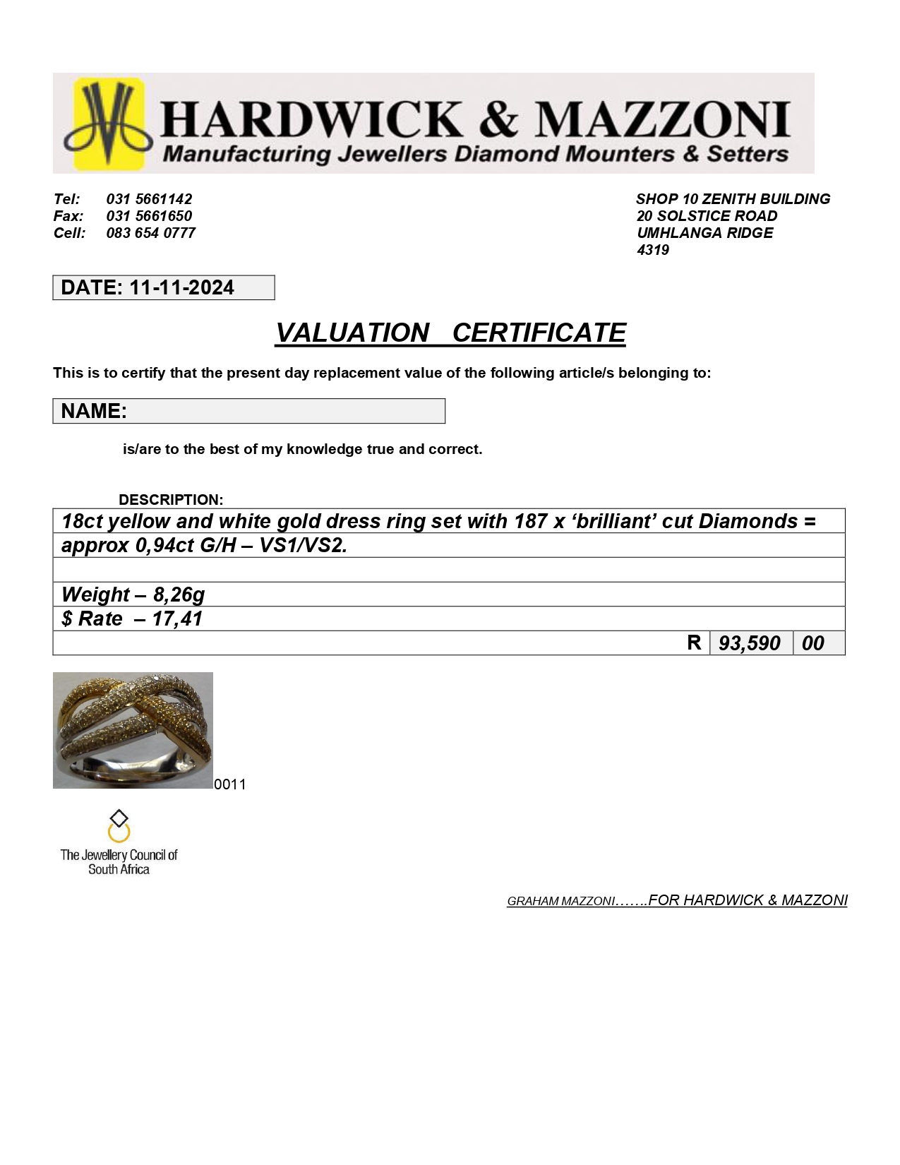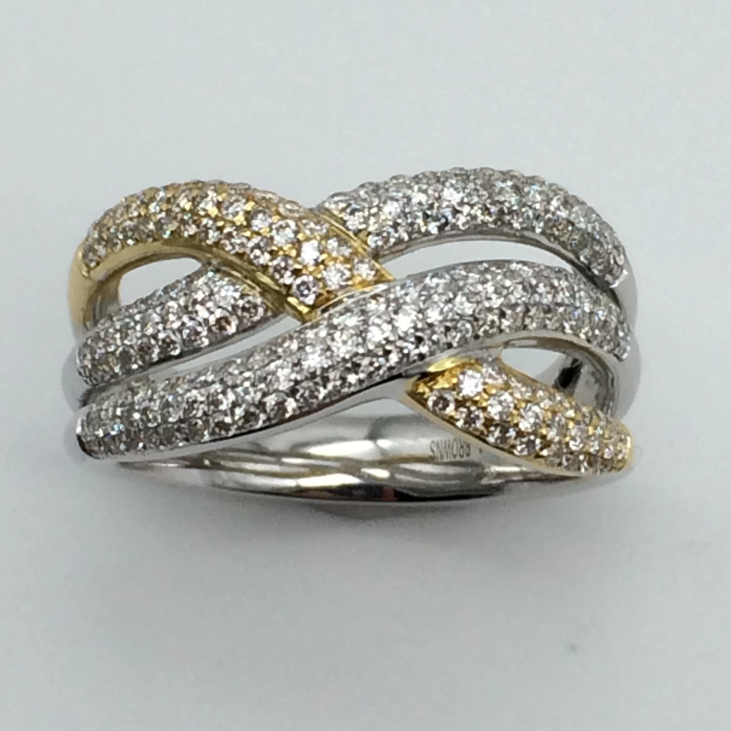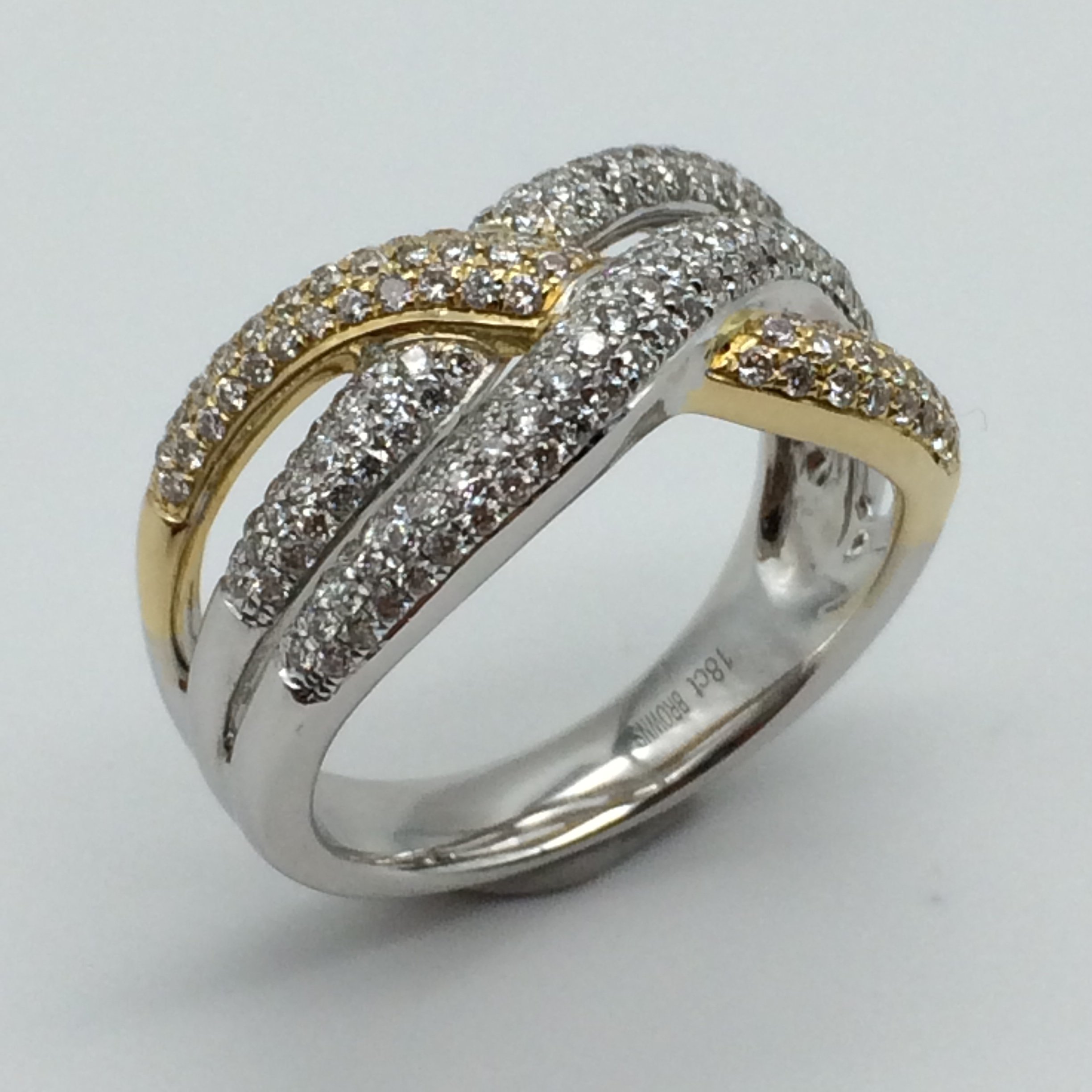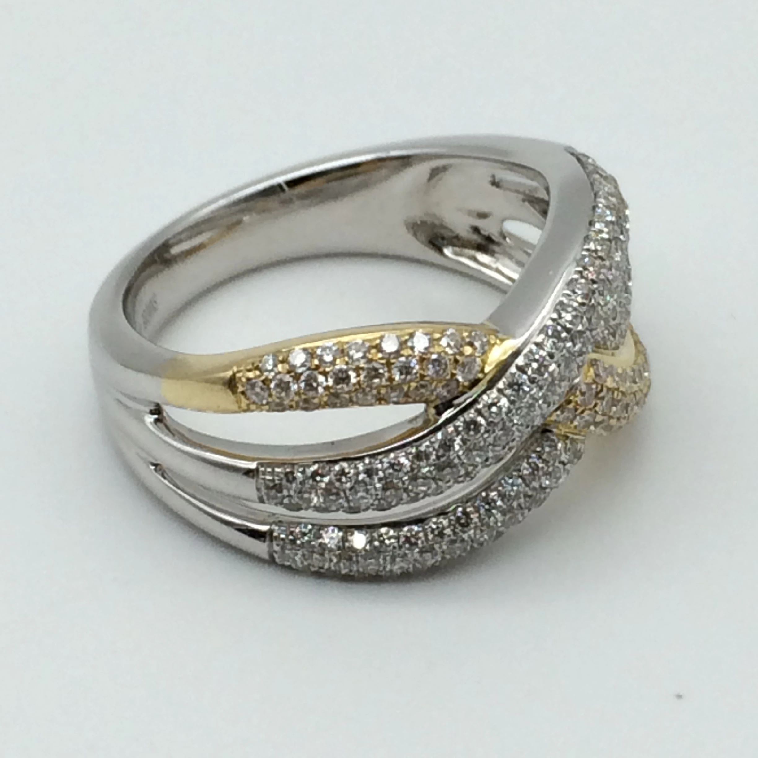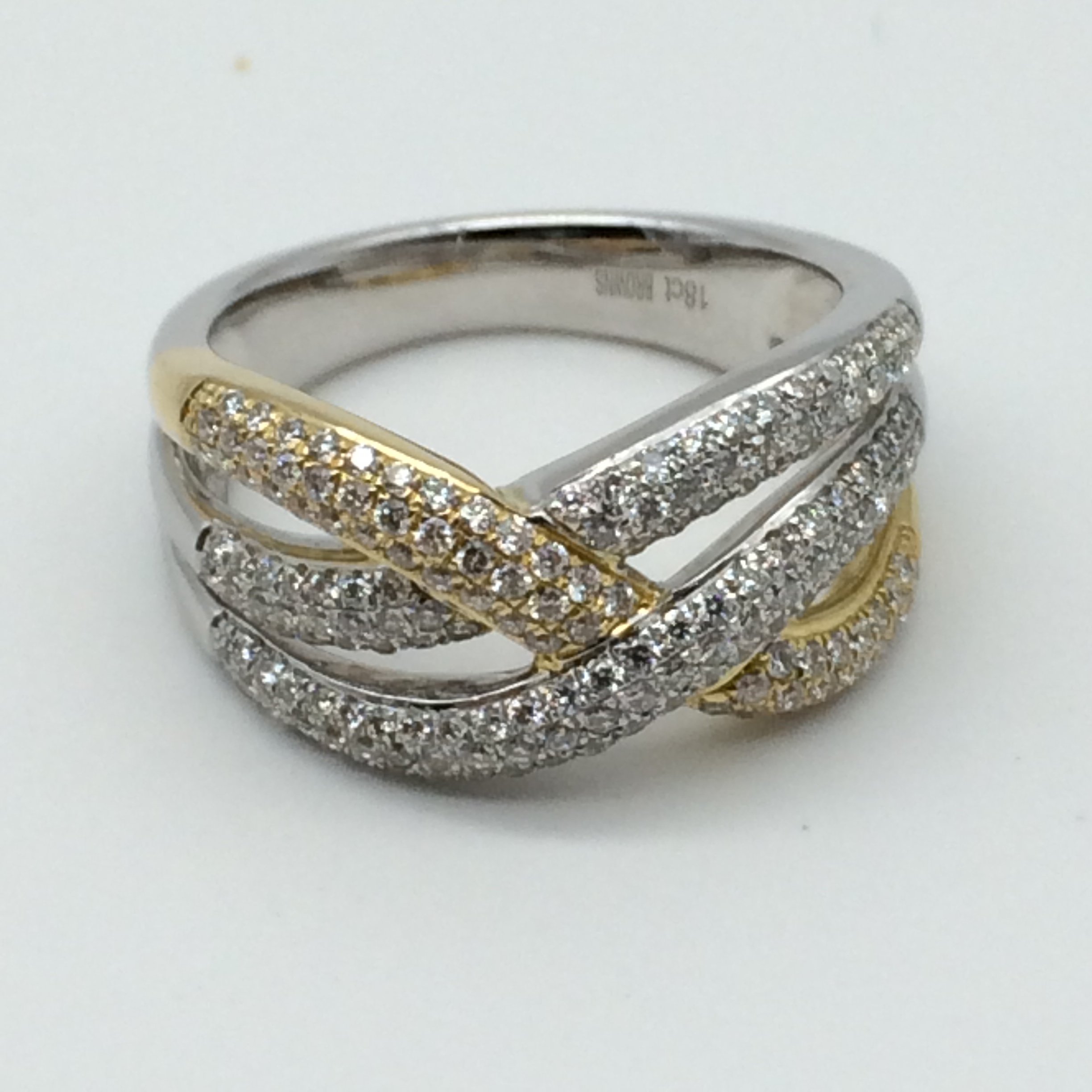 This very attractive 18ct yellow and white gold dress ring is set with 187 x brilliant cut diamonds = approx. 0.94ct G/H – VS1/VS2.
