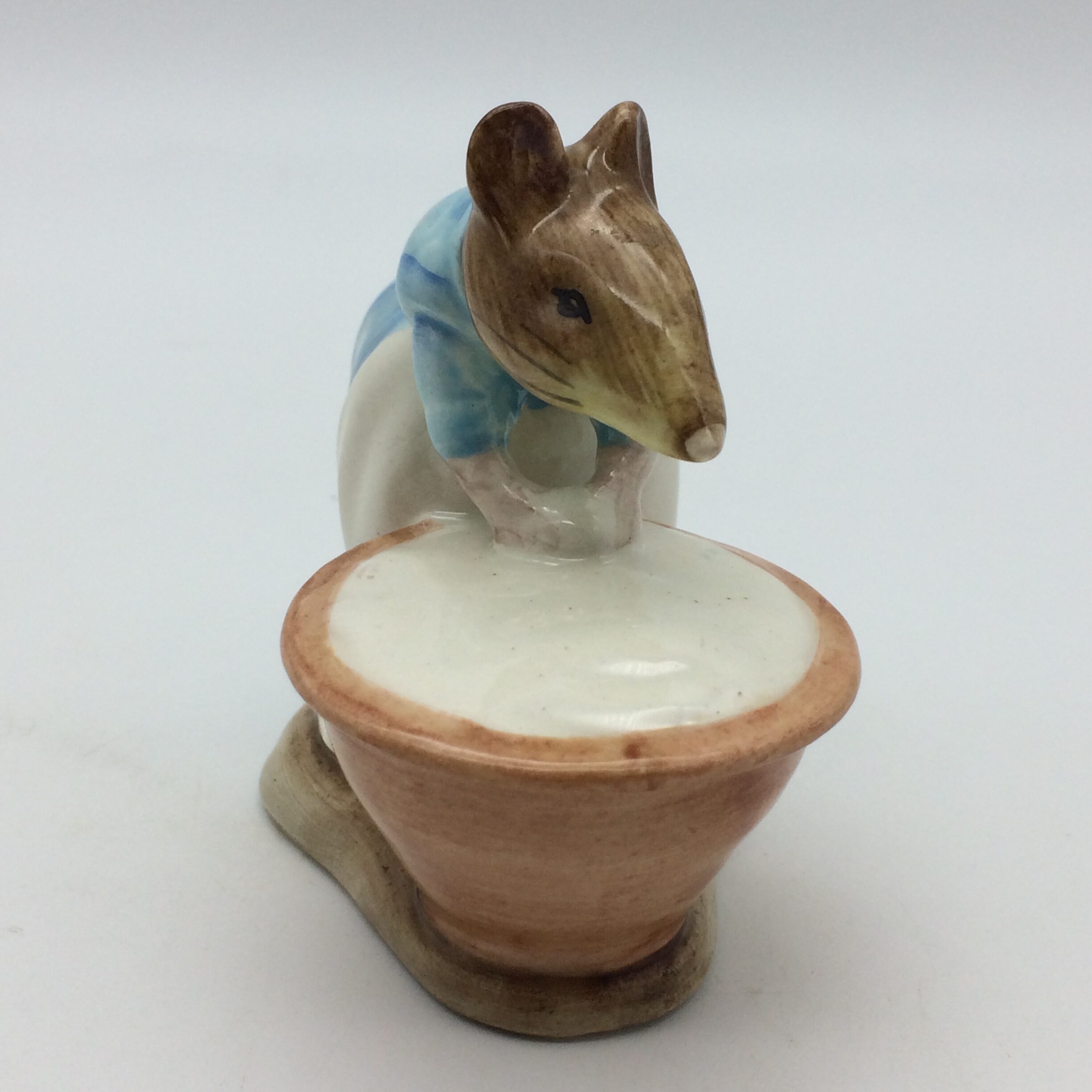 This cute, discontinued ‘Beswick’ Beatrix Potter figure was in production for twenty years, from 1963 to 1983. She was modelled by ‘Albert Hallam’ and is from the book ‘The Tale of Samuel Whiskers’. This figure has the ‘BP3b’ backstamp, dating her between 1974 & 1983. She was listed in ‘The Charlton Price Guide’ (6th Edition) at £135 She’s in excellent condition and stands 7,5cm high.