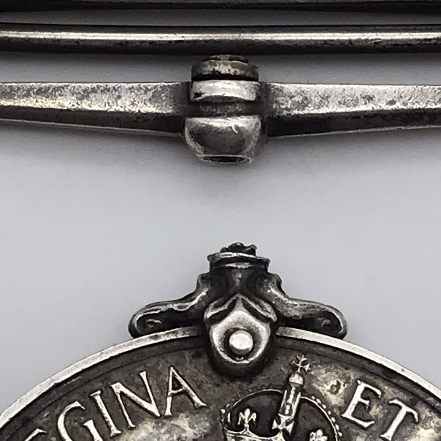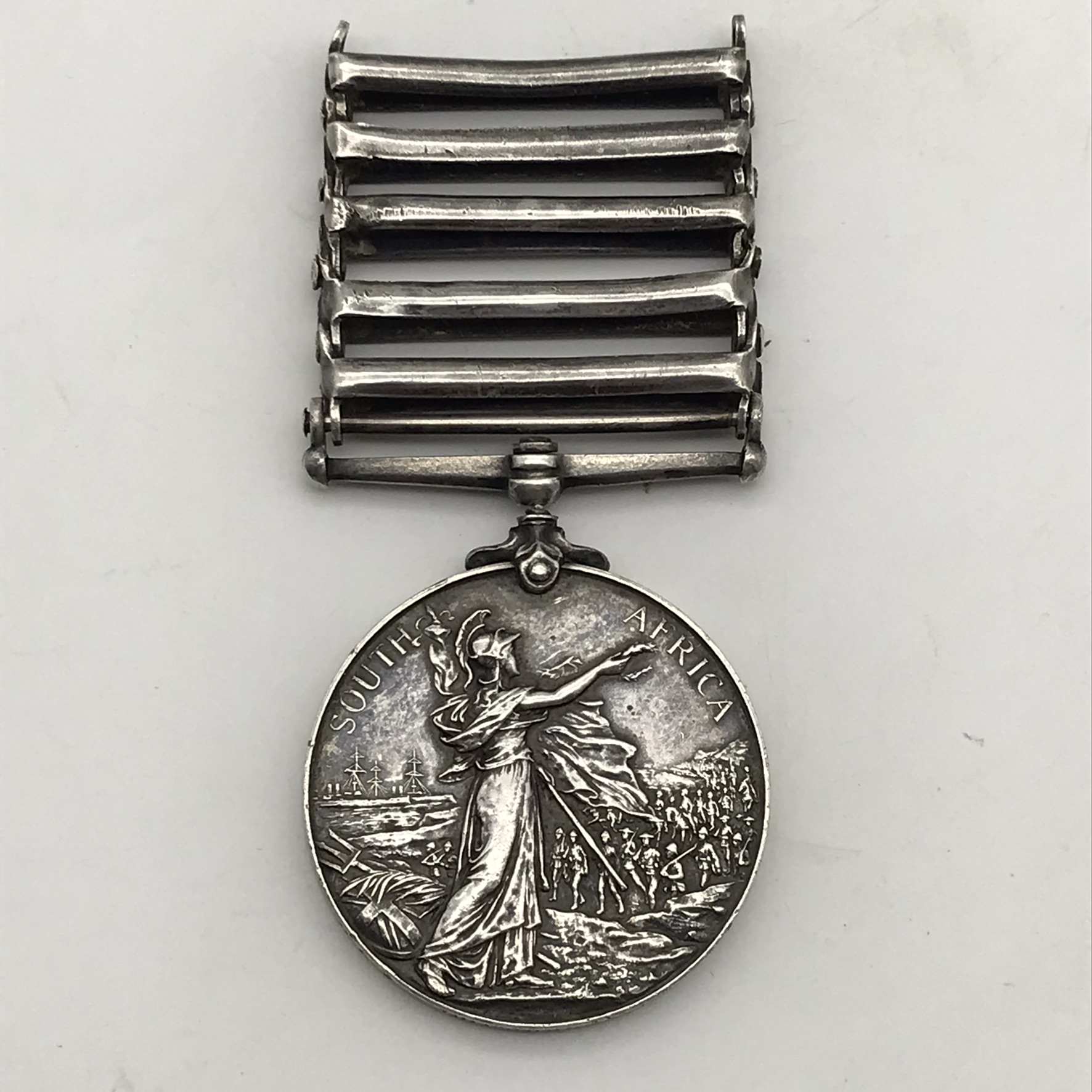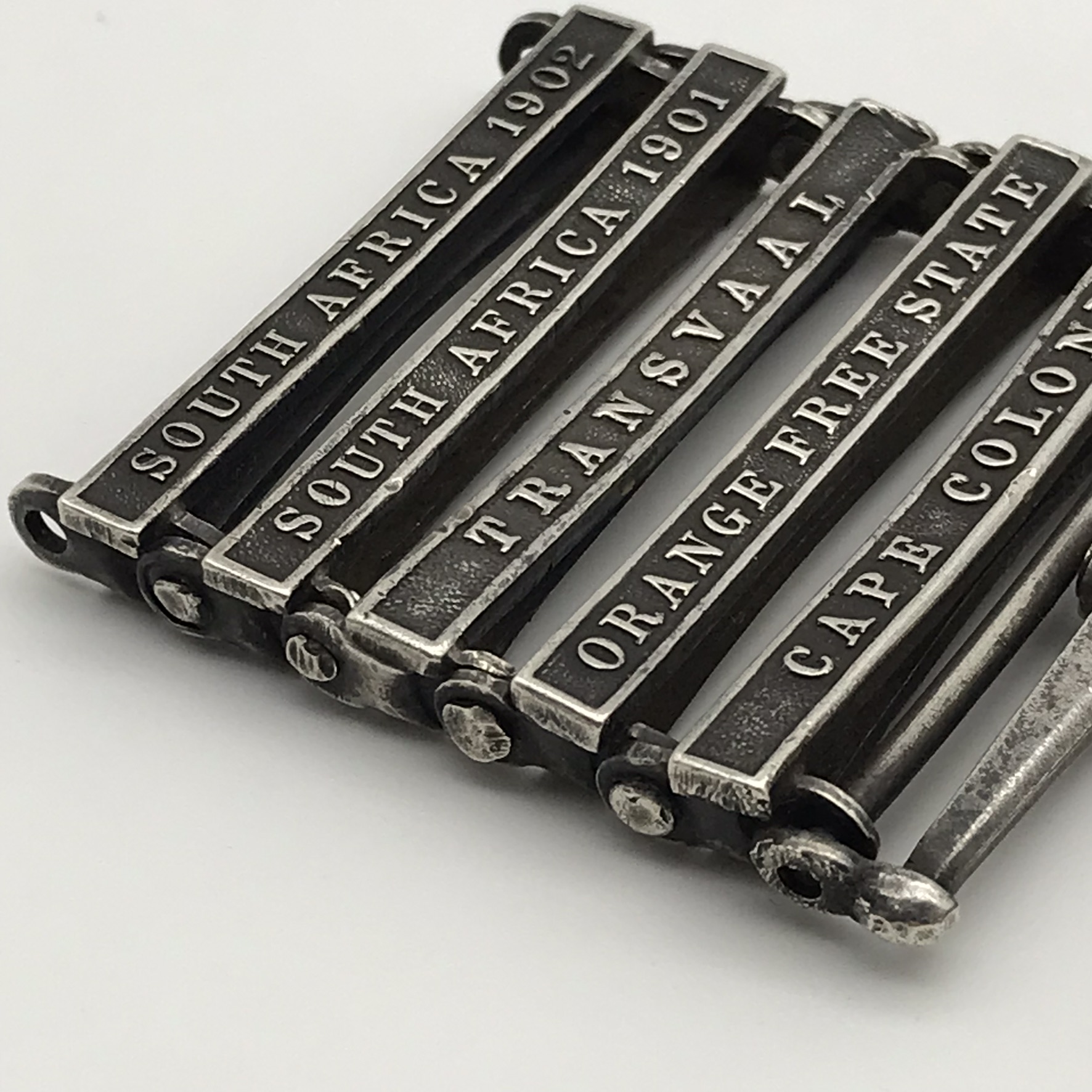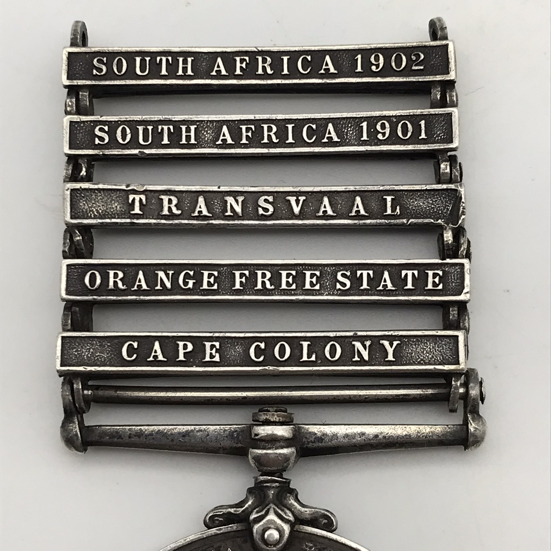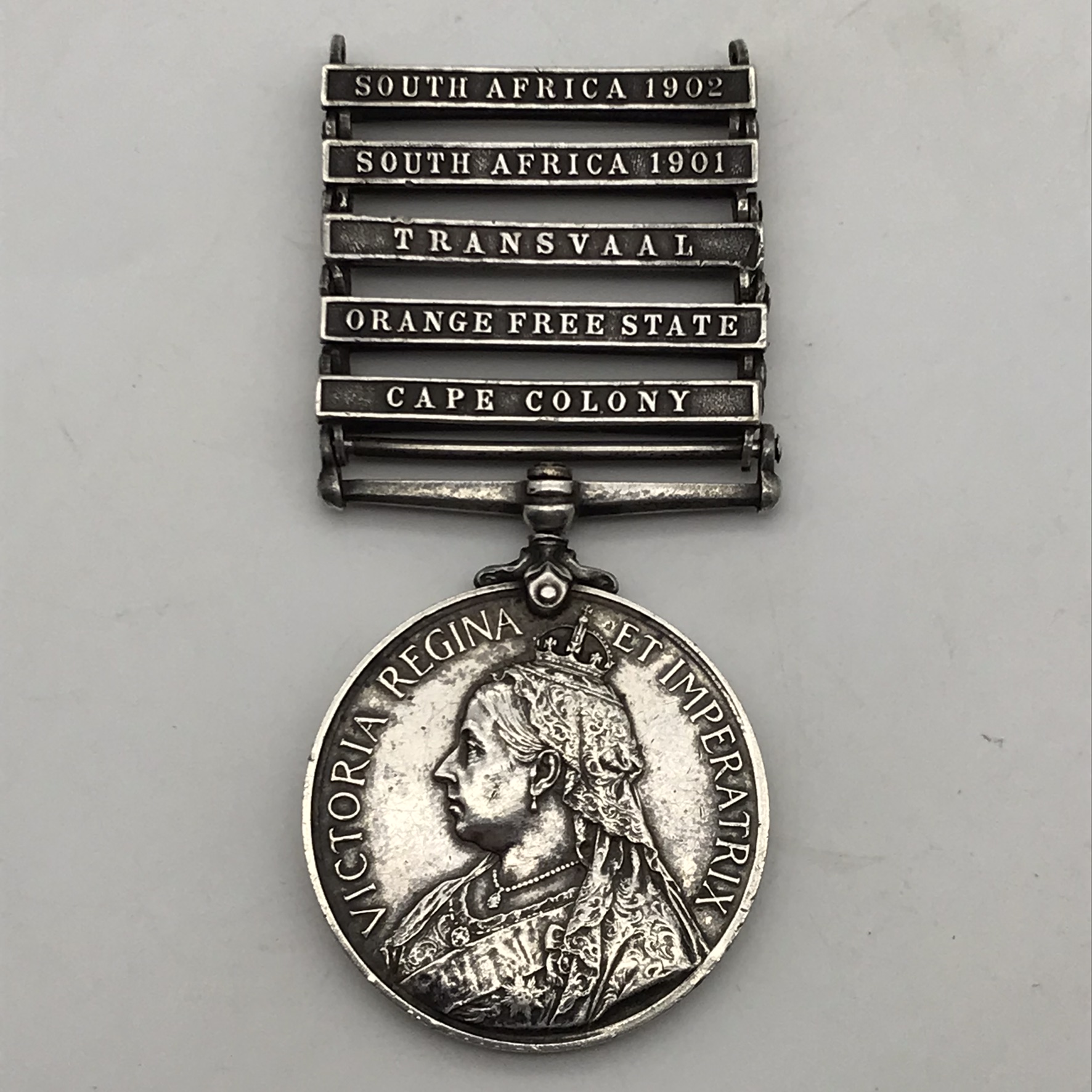This original, full size ‘Queen South Africa’ medal with five clasps: Cape Colony, Orange Free State, Transvaal, South Africa 1901 and 1902 was issued to a ‘Civilian Farrier, H. Johnston from the Army Veterinarian Department’ (AVD). Sadly, the medal has come away from its suspender, which I’ve read, can be repaired by a jeweller, and other than the attachment, the medal is nicely tarnished, in excellent condition and un-researched.