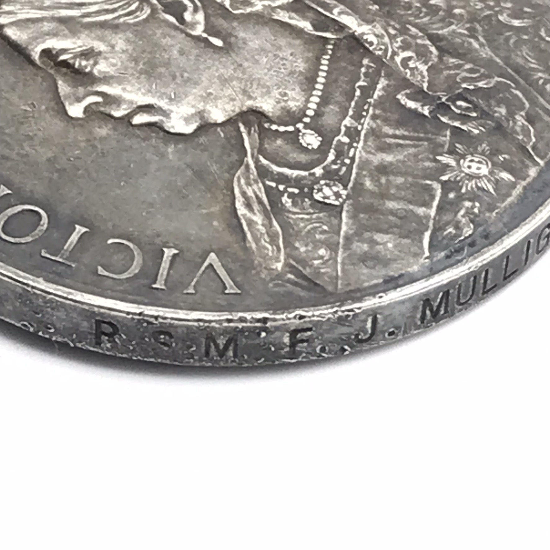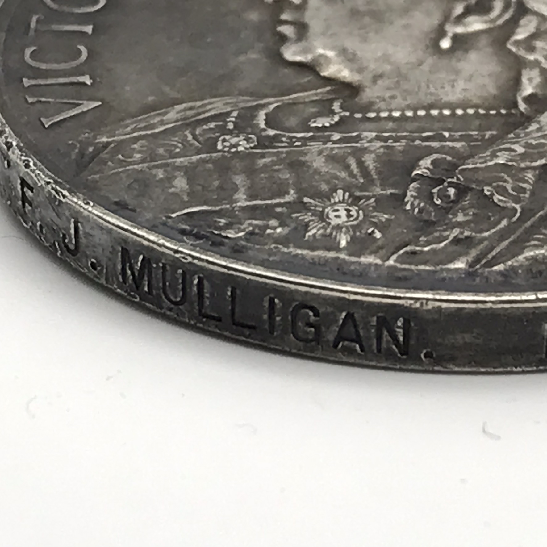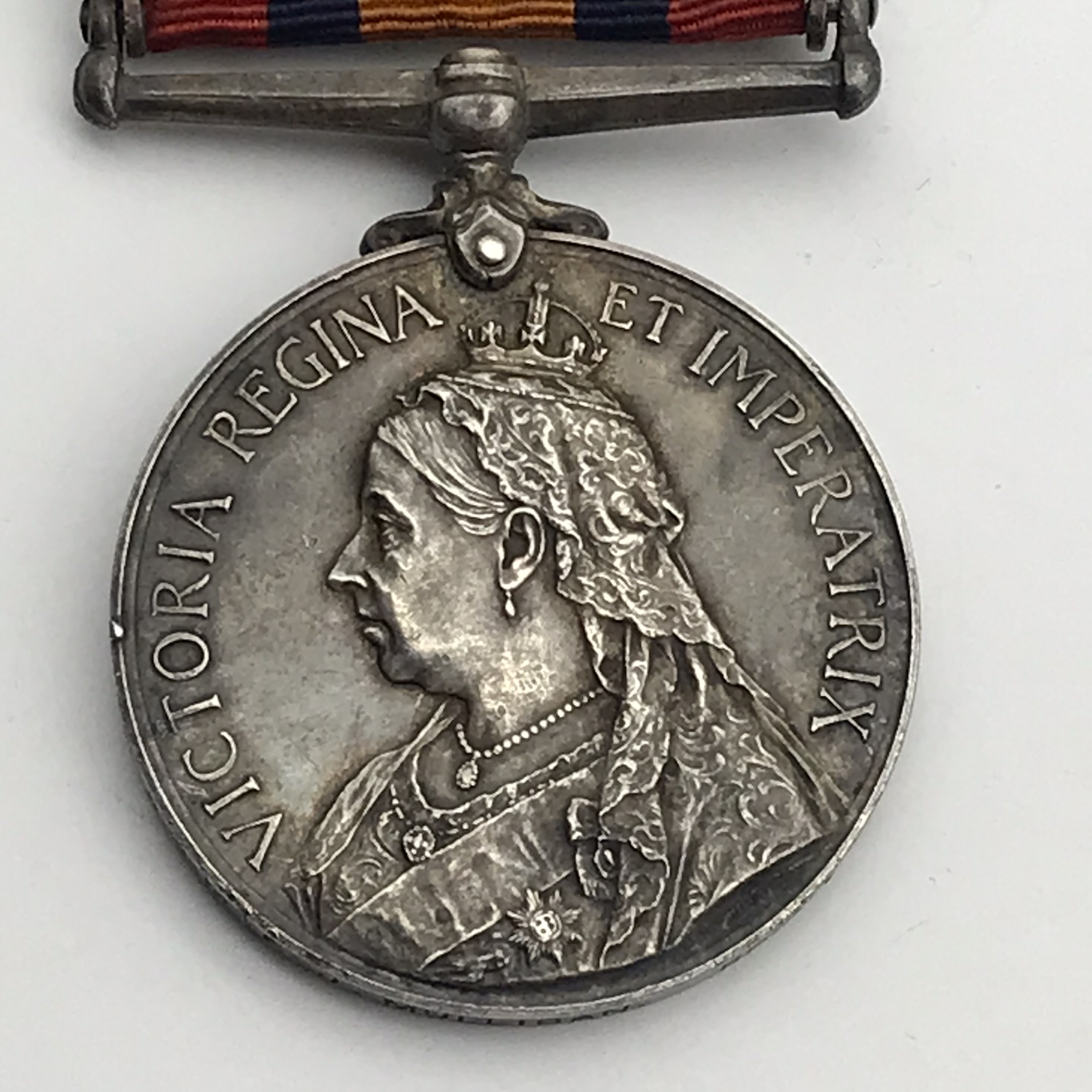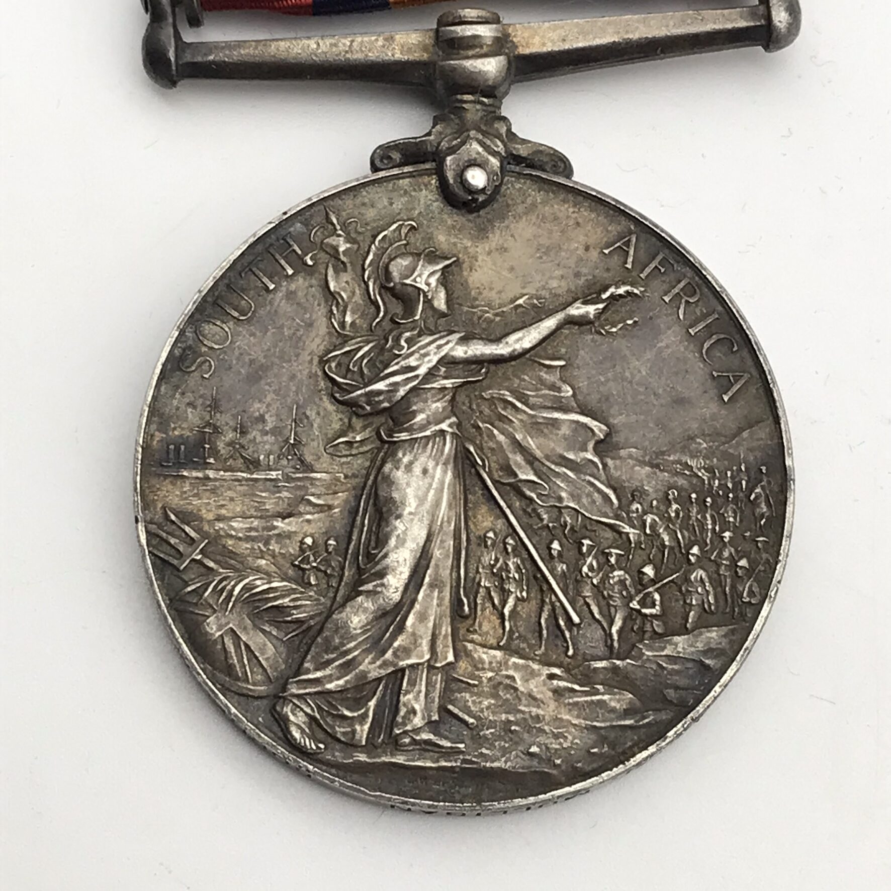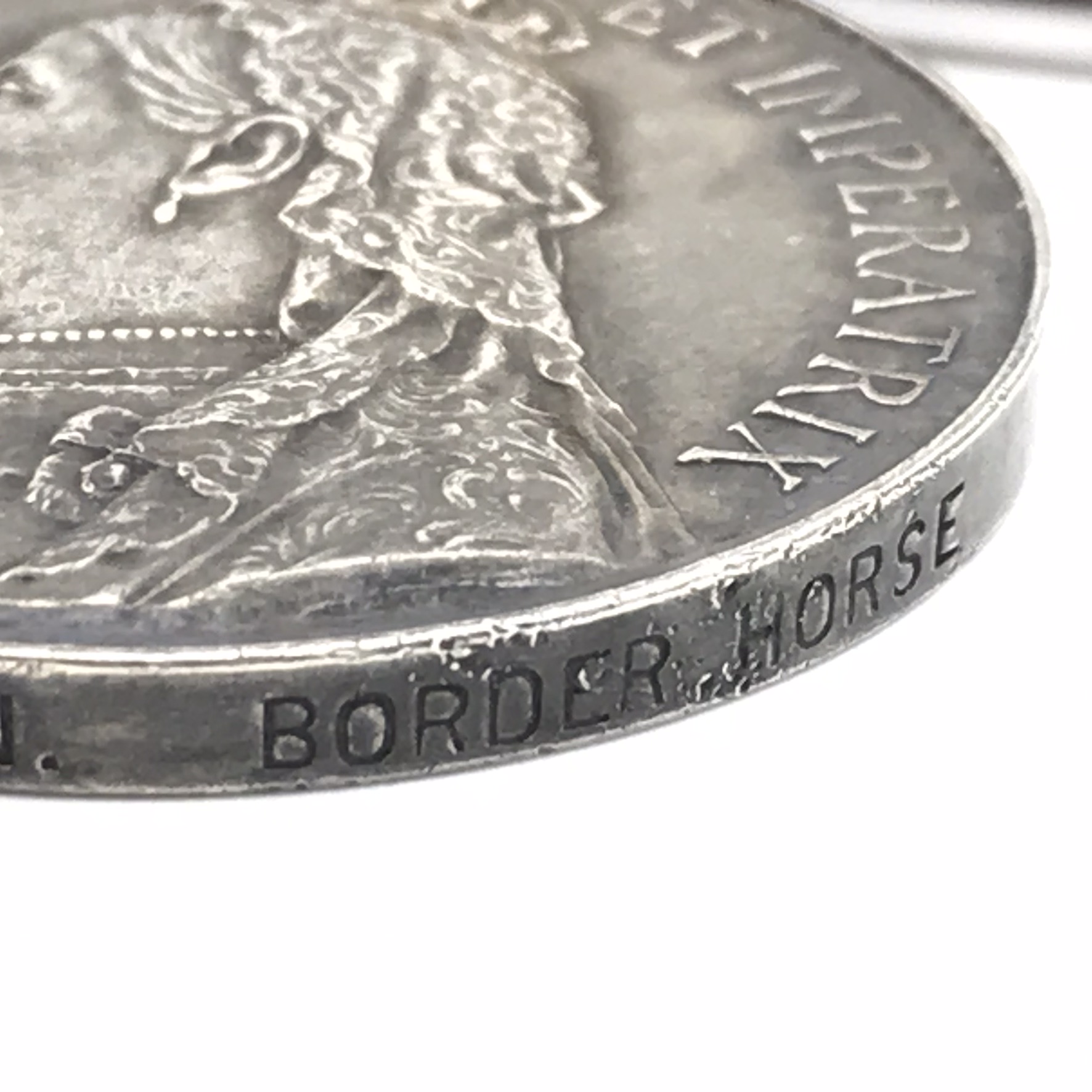 This original, scarce, full size ‘Queen South Africa’ medal is issued to a high rank (R.S.M), very seldom seen. It has three clasps: (Cape Colony, Transvaal, Wittebergen), and was awarded to ‘Regimental Sergeant Major (RSM) F. J. Mulligan (Francis James)’ who served with the ‘Border Horse’. This medal is un-researched, but confirmed on the roll, is in great condition, with its original ribbon, and nicely tarnished.