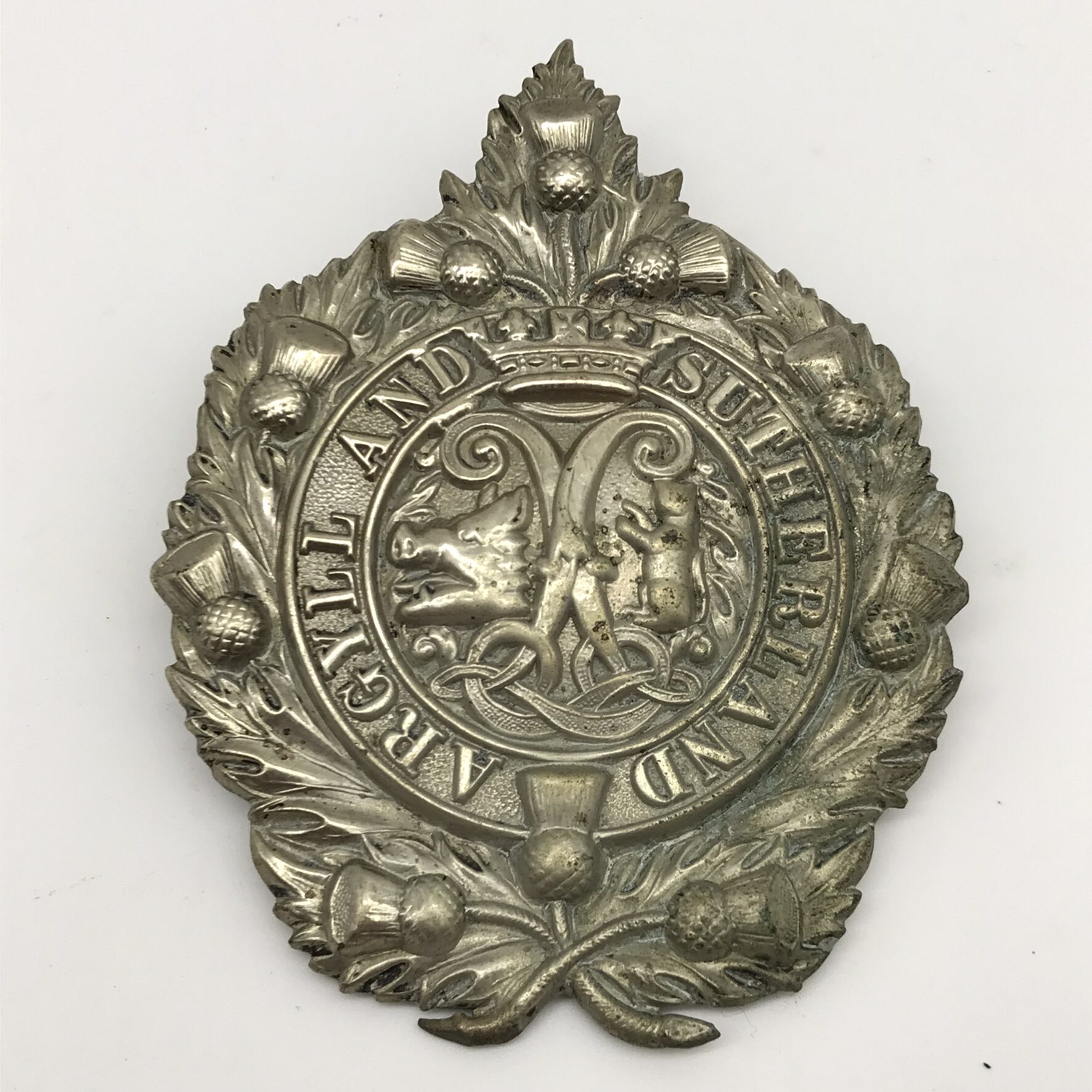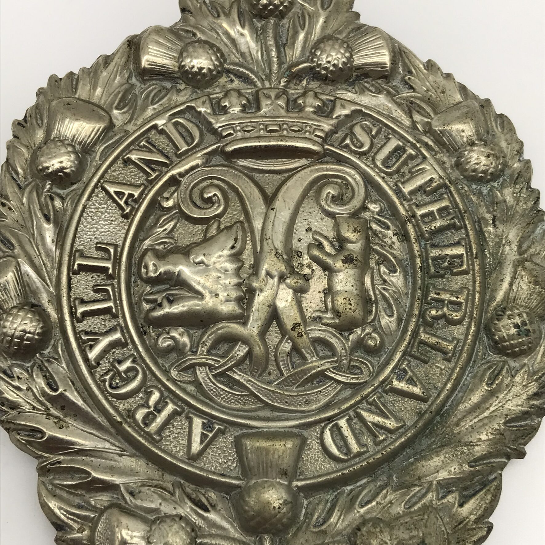 This early, original, quality, white metal British cap badge of the ‘Argyll & Sutherland Highlanders’ (Princess Louise’s) is the ‘un-voided’ version, with lovely detail. It’s in excellent condition with both lugs intact and measures 76mm x 58mm.