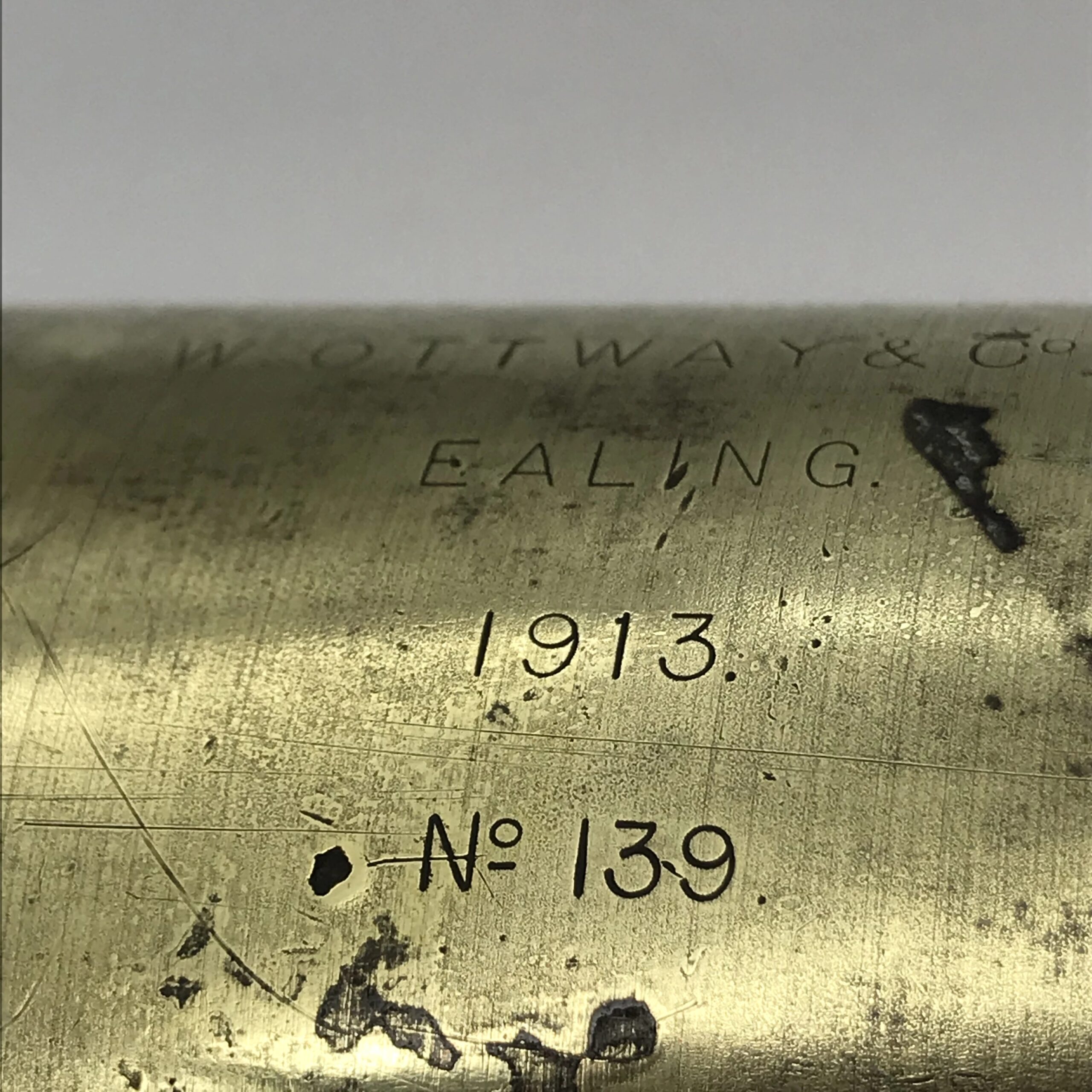 Note: ‘W. Ottway & Co.’ was established in 1640 in London. They became well known opticians and by the late 1800’s were manufacturing a wide range of scientific instruments. They then went on to make Naval & Military gun sighting telescopes, sextants, telescopes etc.