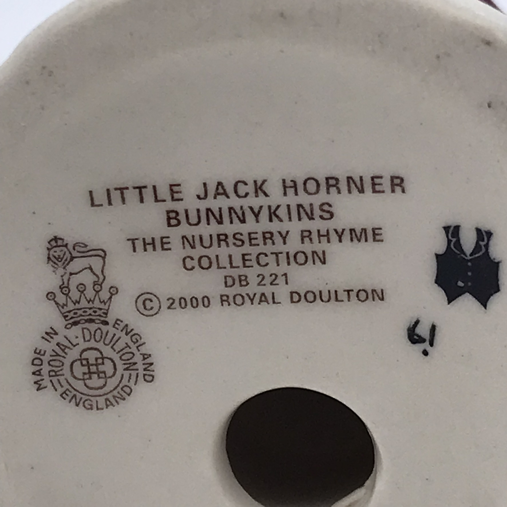 This lovely, hand painted, Royal Doulton china figure, titled ‘Little Jack Horner’ (DB221) from the ‘Bunnykins Nursery Rhymes Collection was designed by ‘Martyn Alcock’ and produced for a short period, between 2000 and 2003. The figure is in excellent condition and stands 8,8cm high.