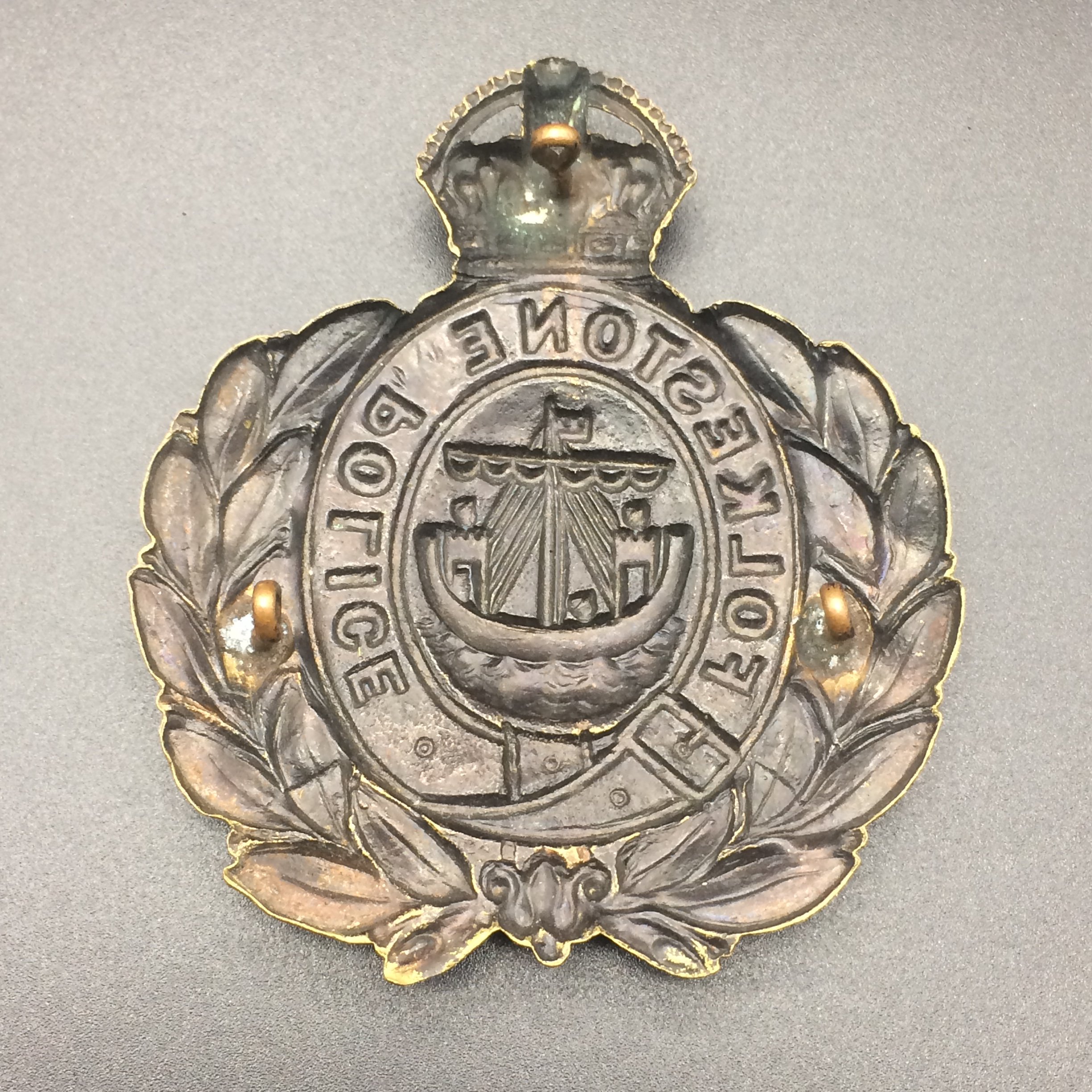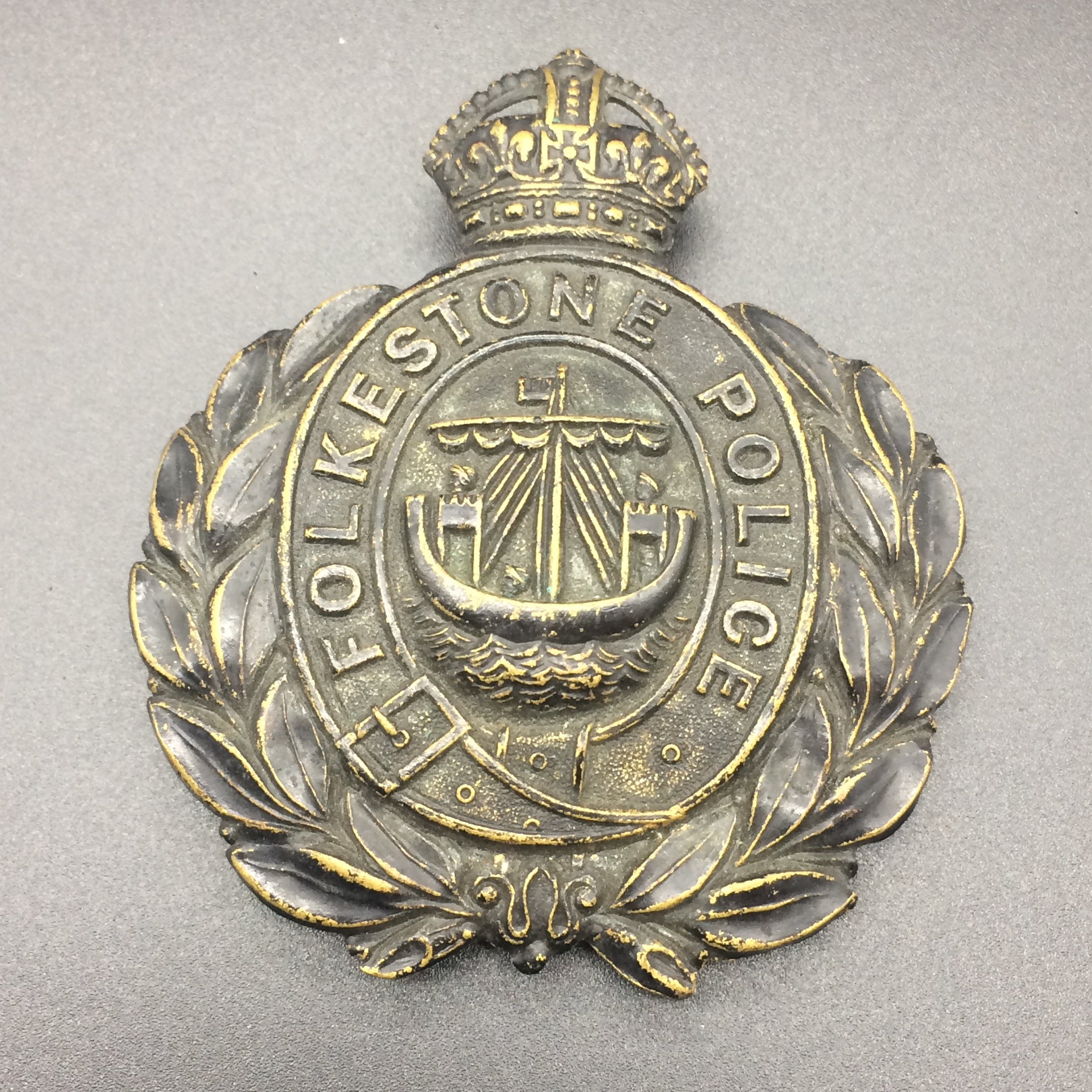 This rare blackened brass helmet plate is in excellent condition, complete with 3 lugs on the back. Folkestone is a small port town on the English Channel, in Kent, in south-east England. It measures 8.5cm x 7cm.