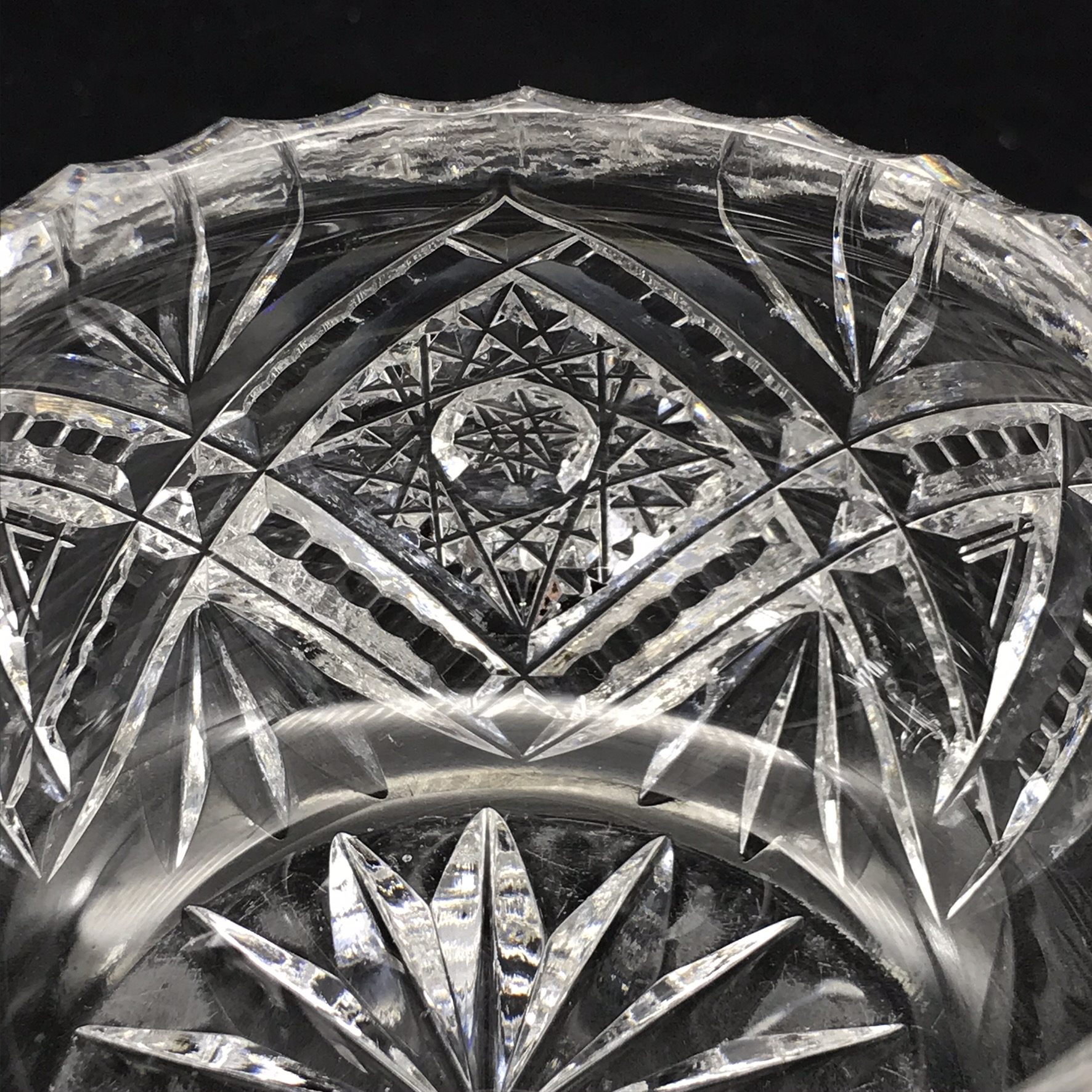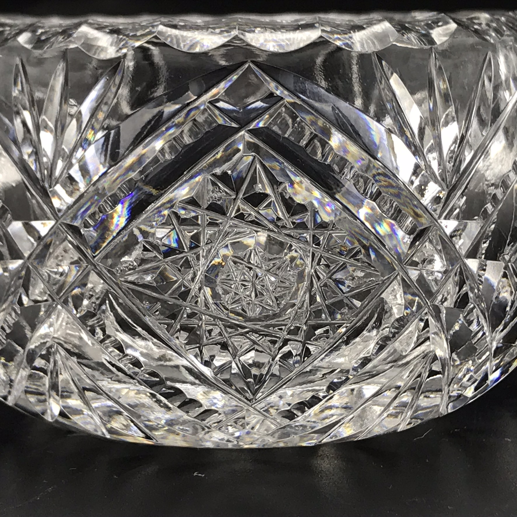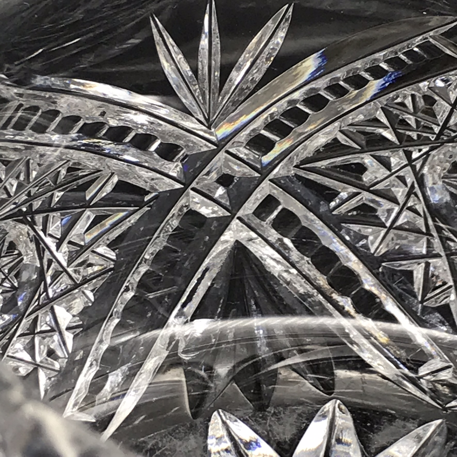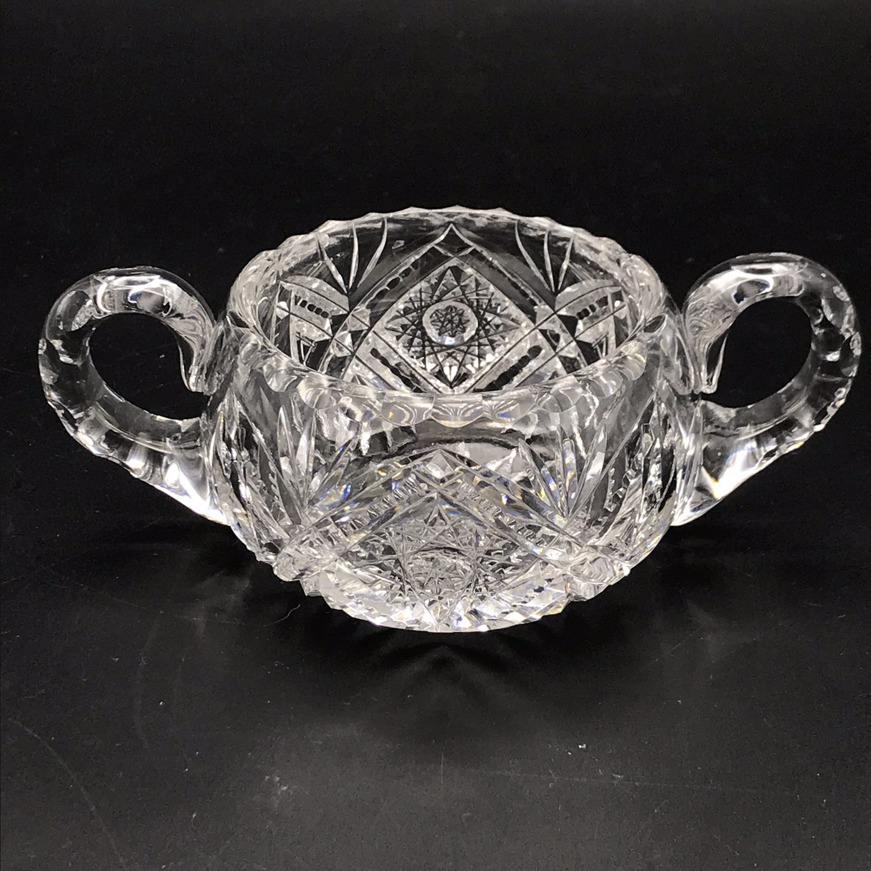 This heavy, super quality, cut-crystal milk jug and sugar bowl from the 1940/50’s are both in excellent condition. They have a wonderful, deep hand-cut busy pattern that reflects the light beautifully and are both made of a thick gauge crystal, which gives them a nice weight. The sugar bowl has a diameter of 9,5cm, with a handle-to-handle measurement of 16cm and stands 6cm high. The milk jug stands 7cm high, with a diameter of 9,5cm and together they weigh 890g.