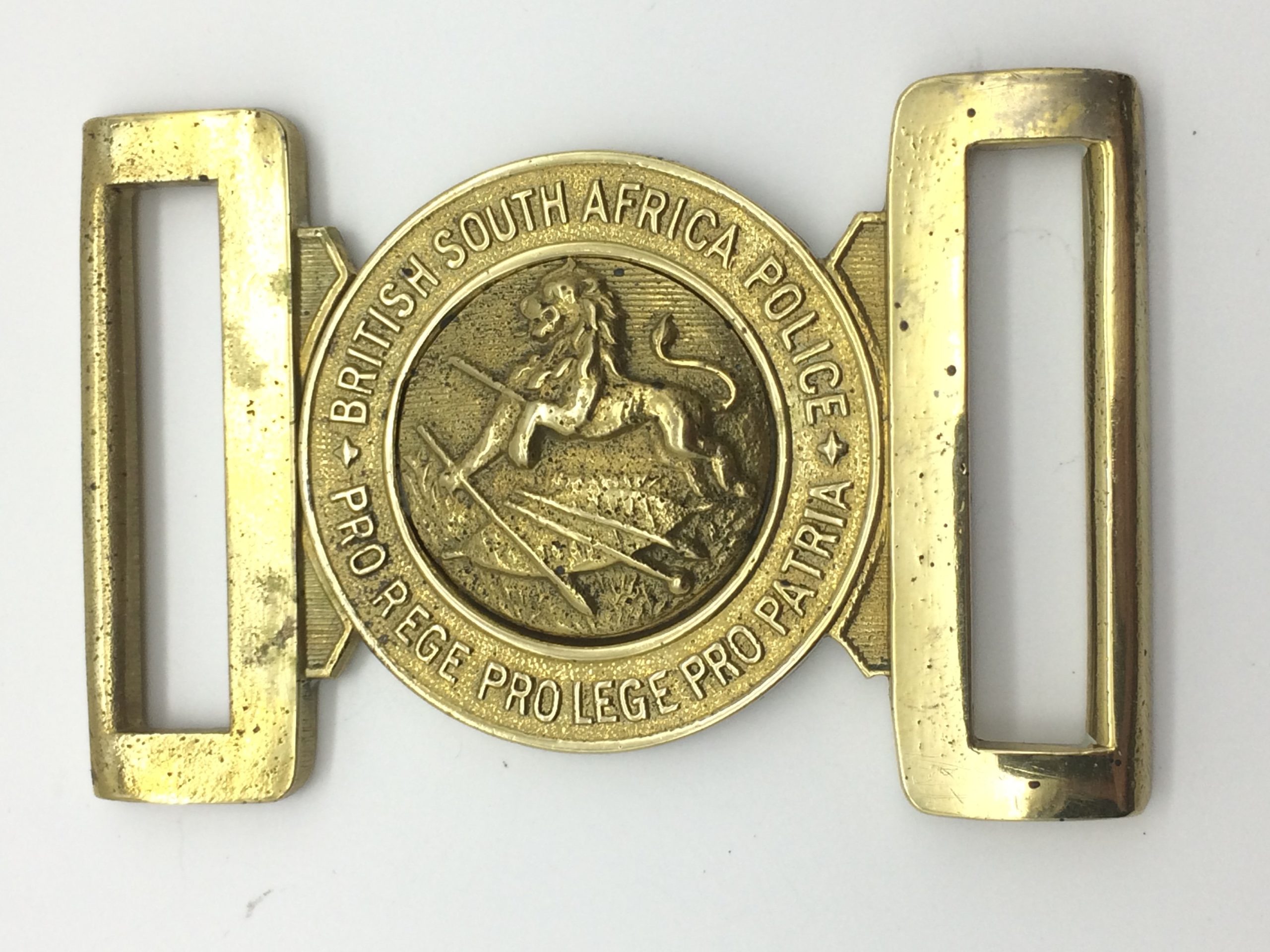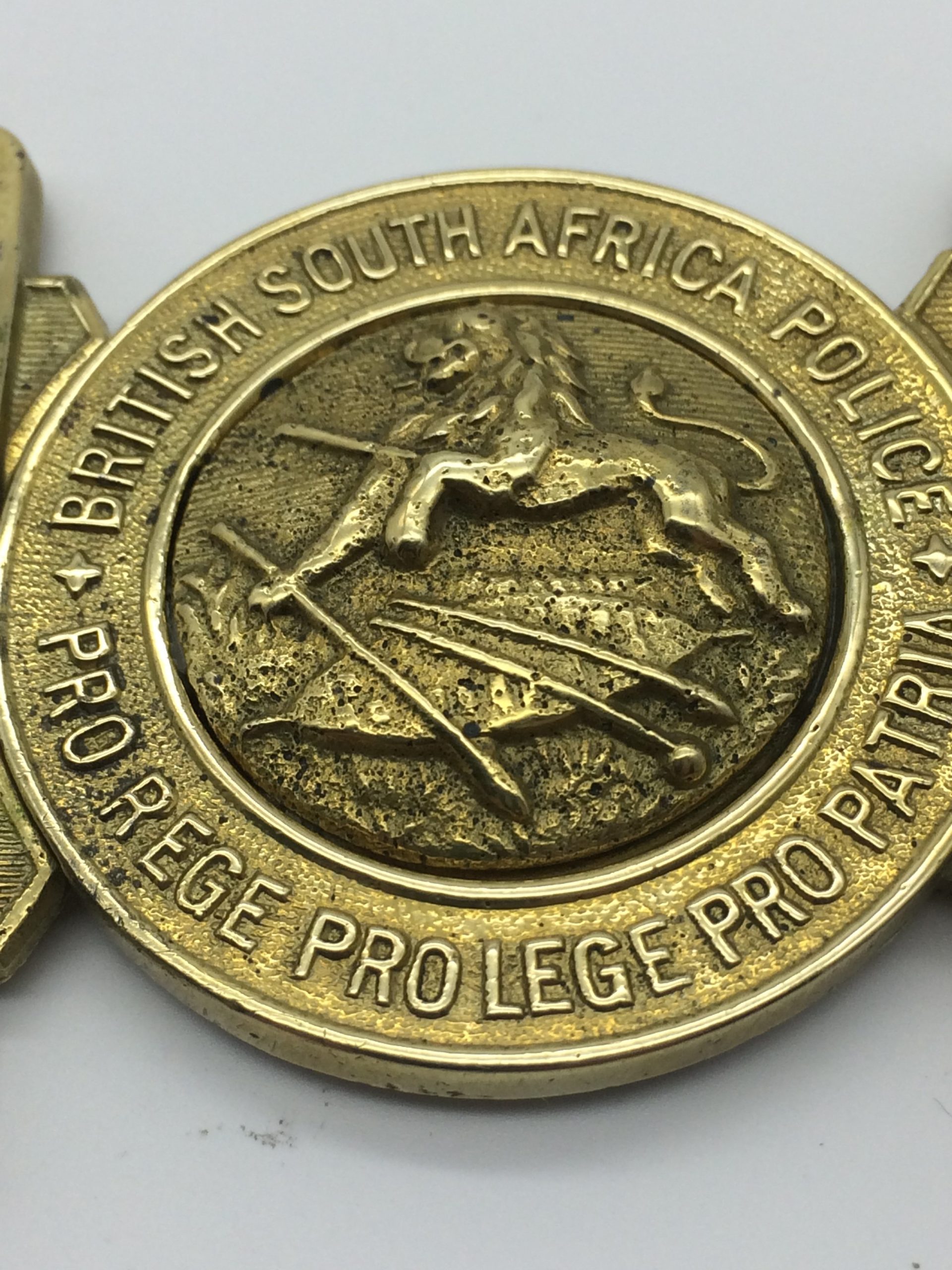 This brass Rhodesian British South Africa Police belt buckle is in great condition with nice detail.