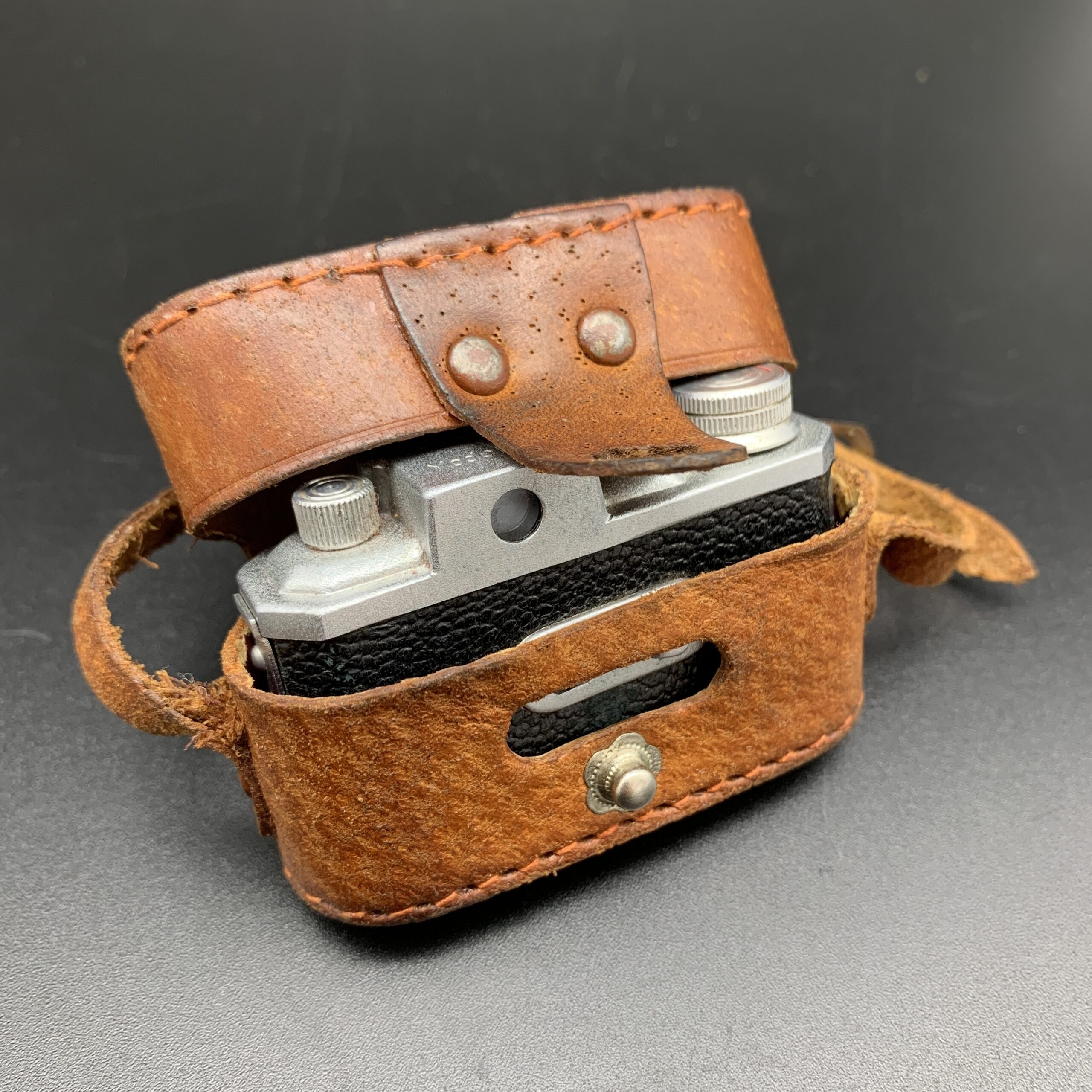 This lovely, early, collectable, sub miniature ‘Kiku16, Model II’ camera appears to be in great condition with no visible damage and comes complete with its original leather case and strap. The case measures 7cm x 4,5cm x 4cm and together with the camera weighs 104g.