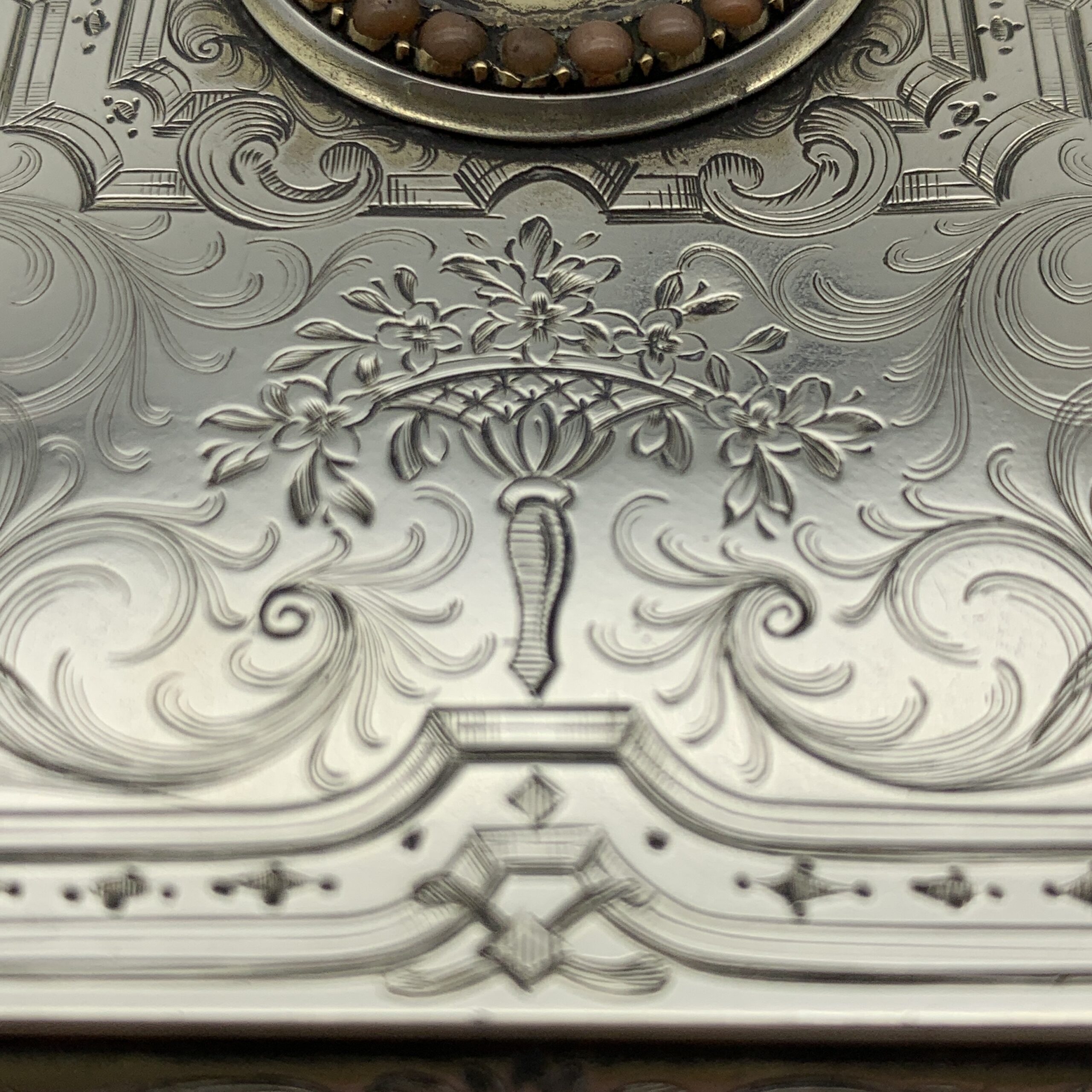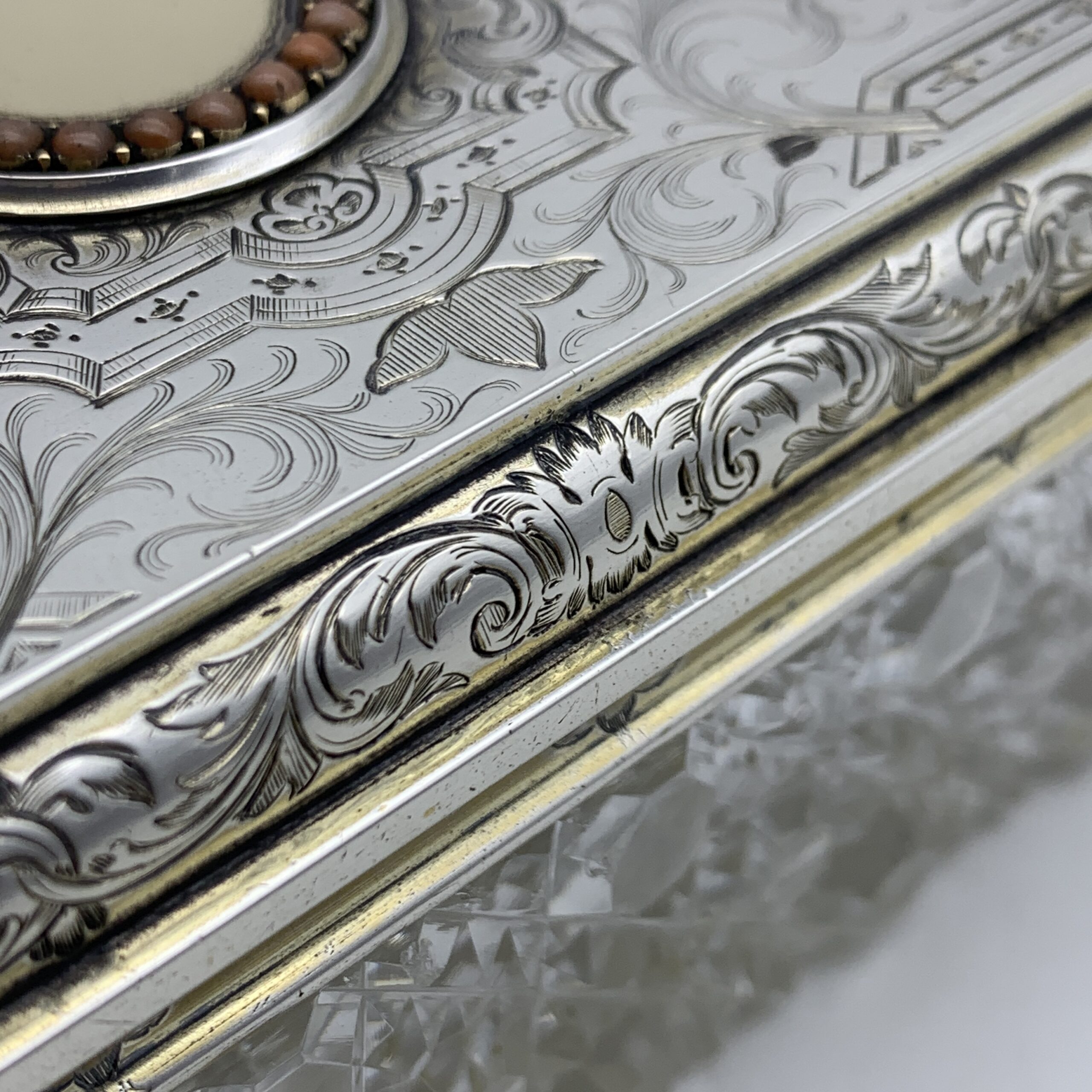 Fabulous Silver Gilt & Coral Crystal Vanity Box (Dated 1866)