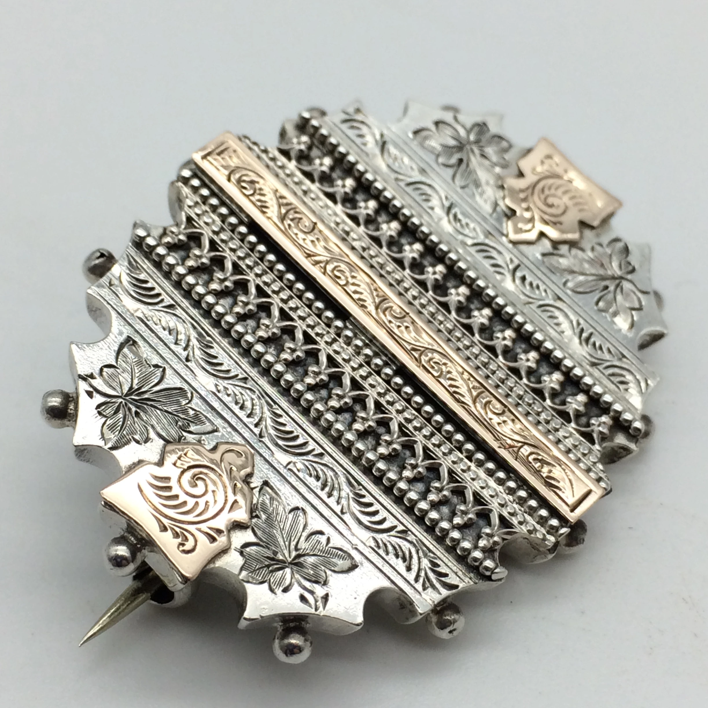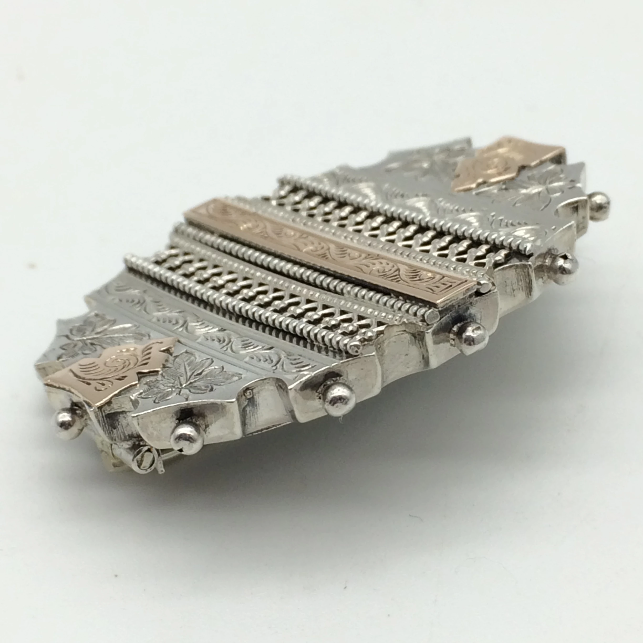 Fabulous Victorian Silver & Gold Sweetheart Locket Brooch
