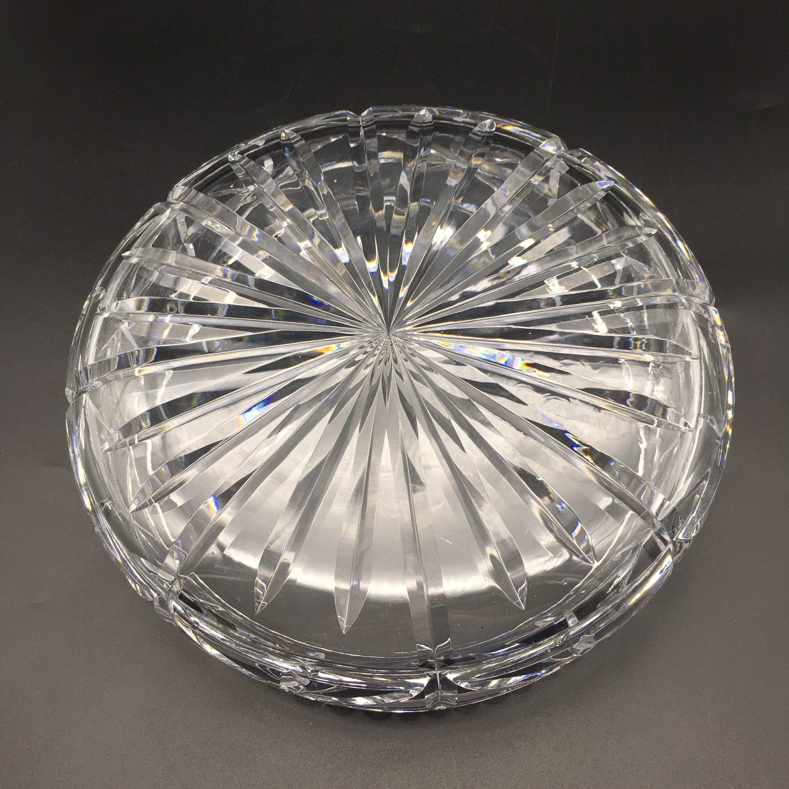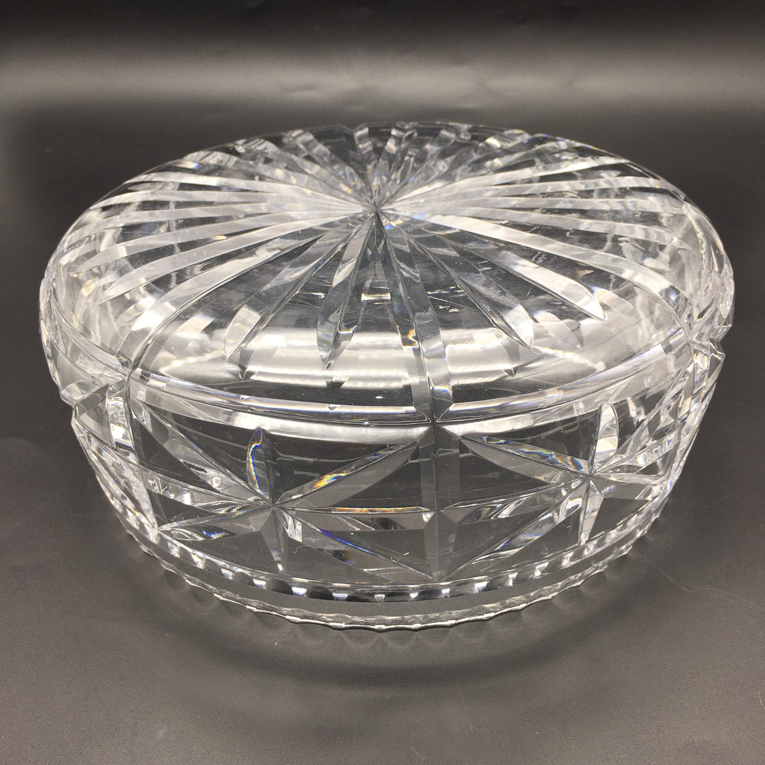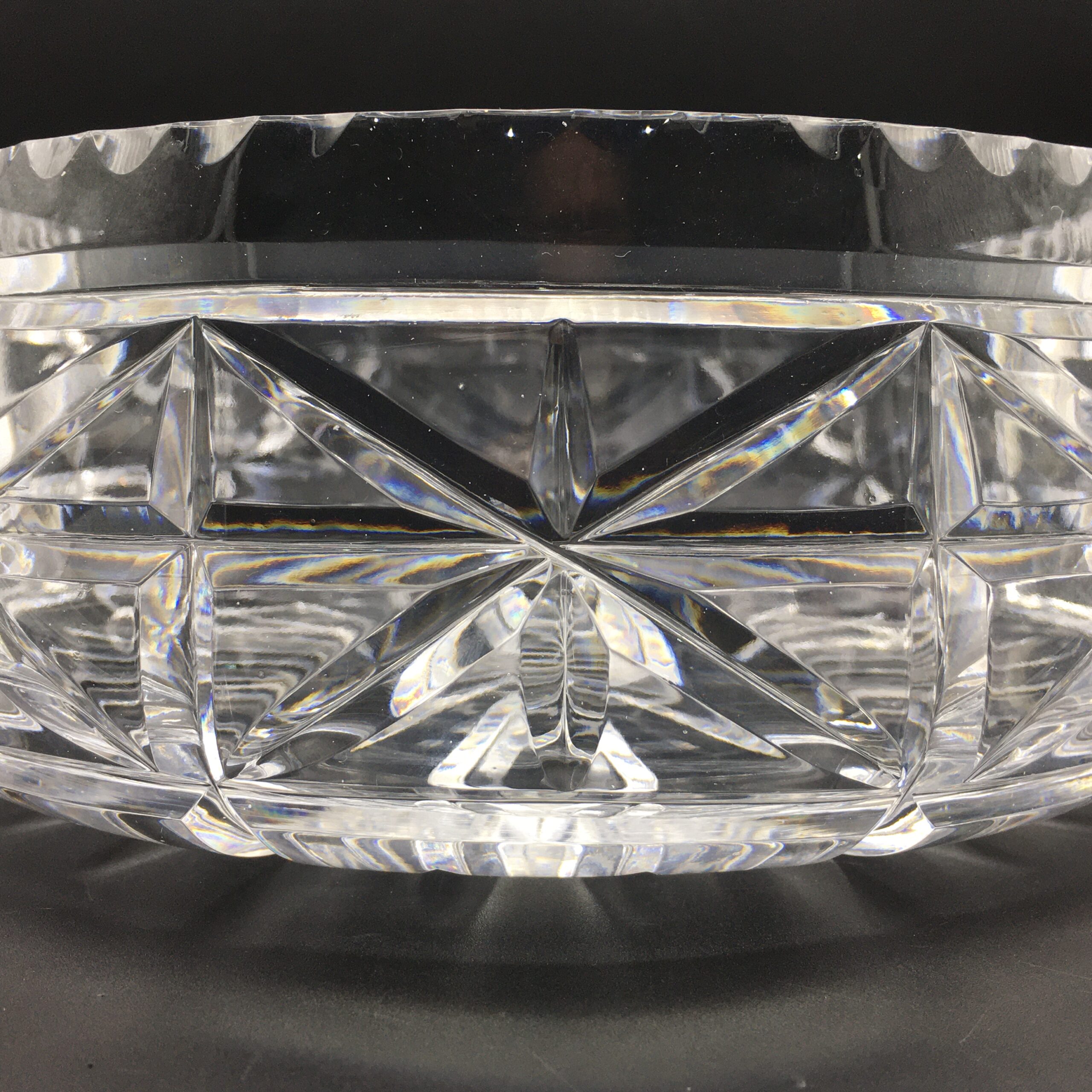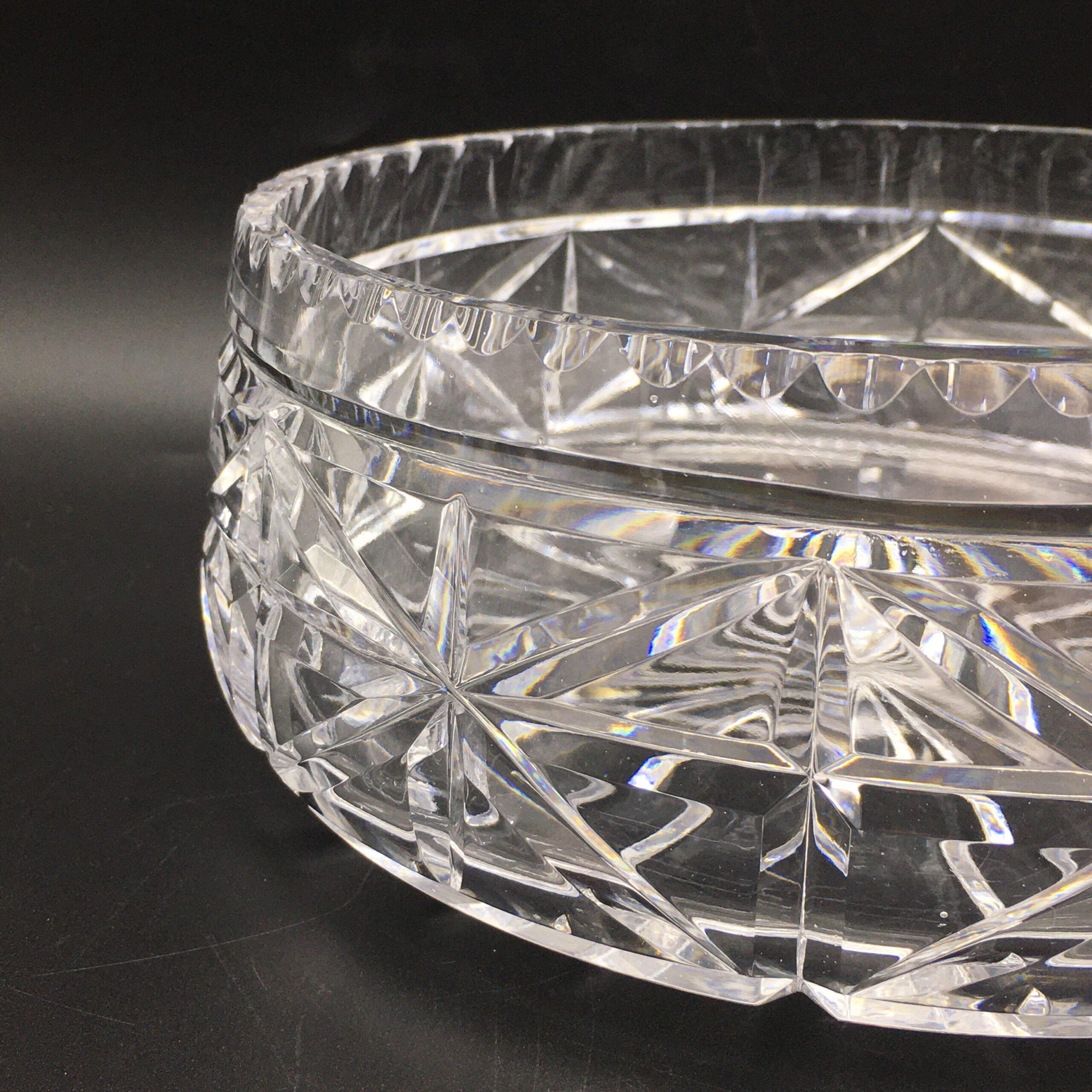 This heavy, large, good quality cut-crystal bowl from the 1940/50’s has been beautifully hand-cut all round in a pattern that reflects the light well. It has a large star-cut base with a crimped-cut, outer edge along the top and other than a very minor inner rough edge, it’s in great condition and the crystal is nice and clear. I couldn’t find any frosted makers marks on the base, but in my opinion it’s from one of the top crystal factories. The bowl has a diameter of 22cm, stands 8,2cm high and weighs 1,7kg.