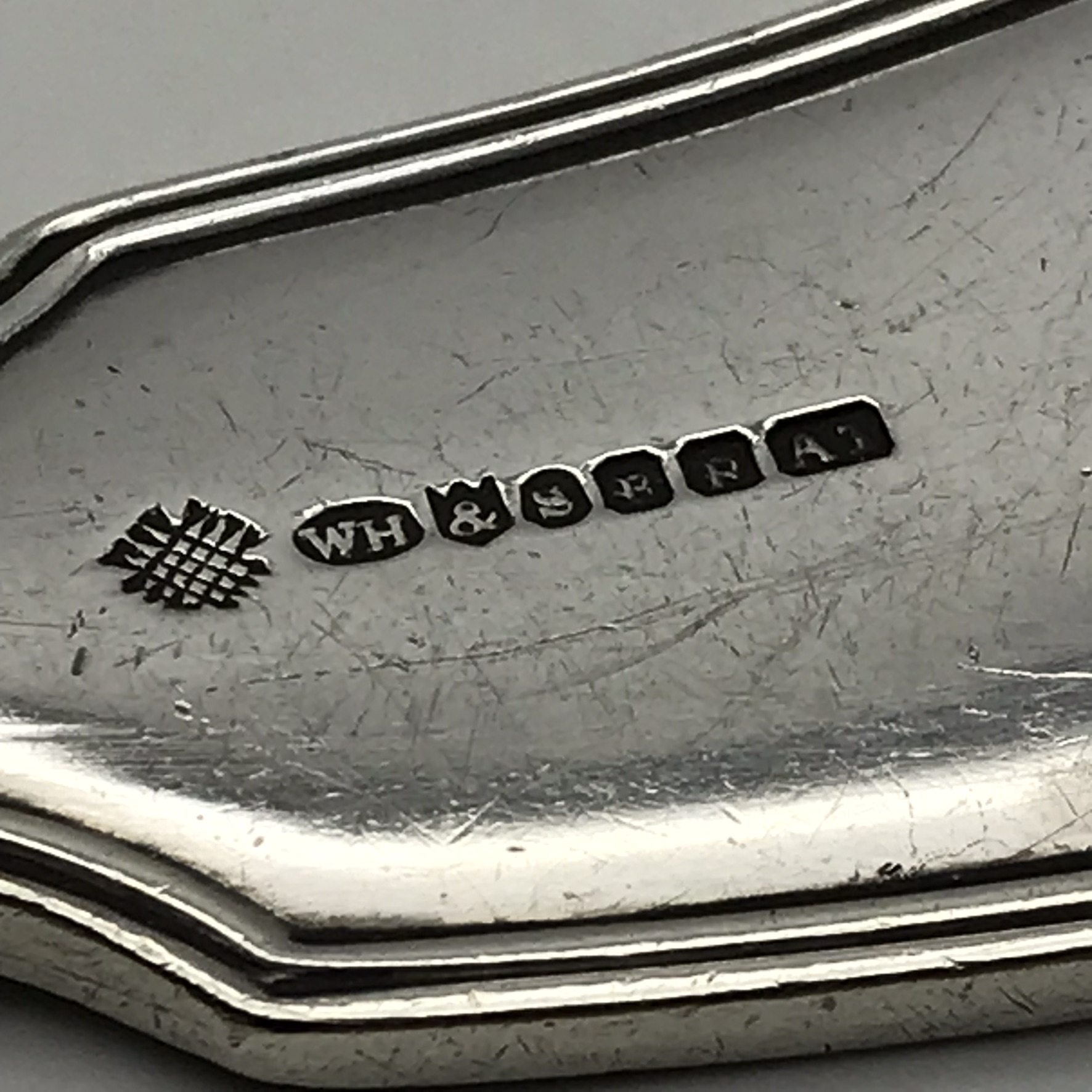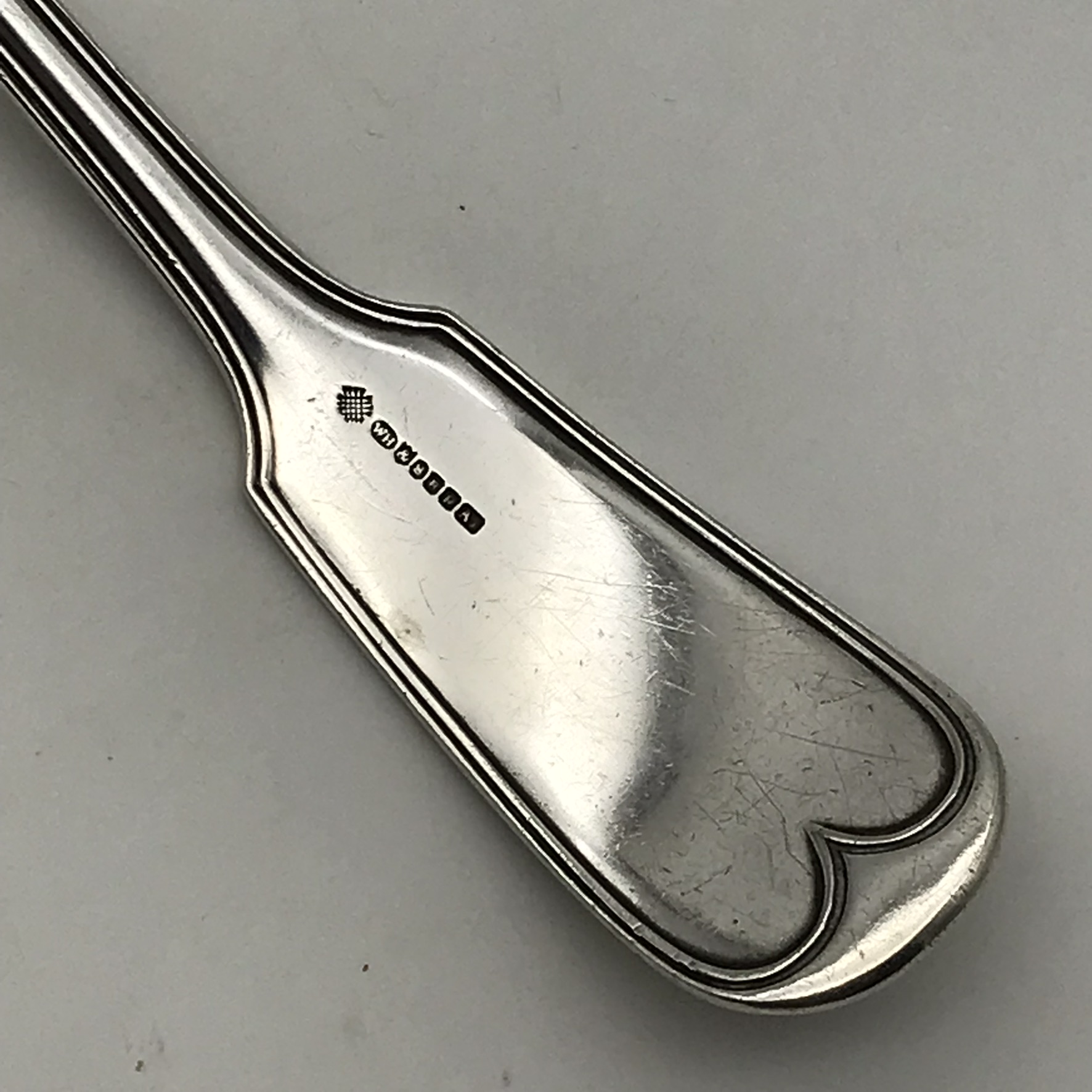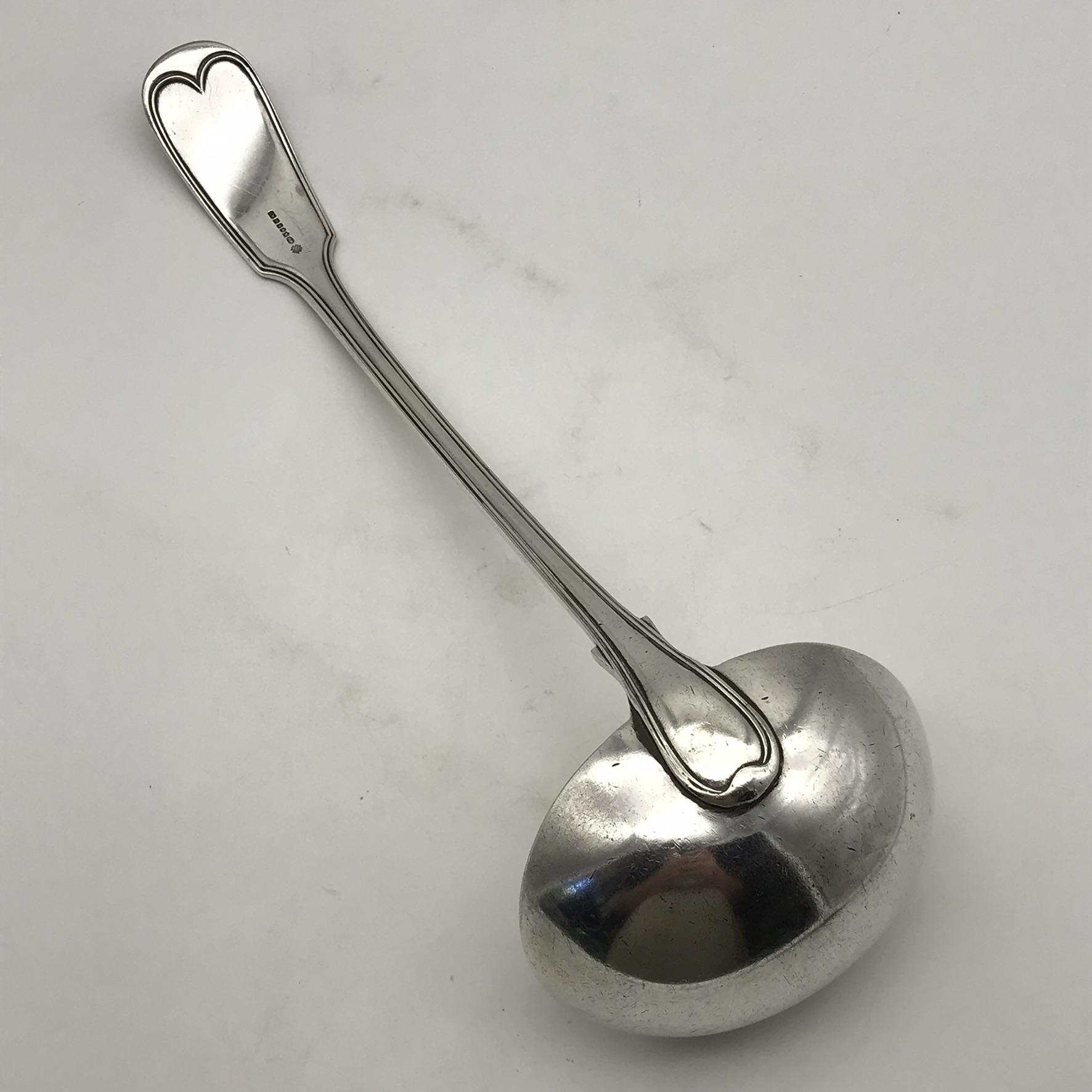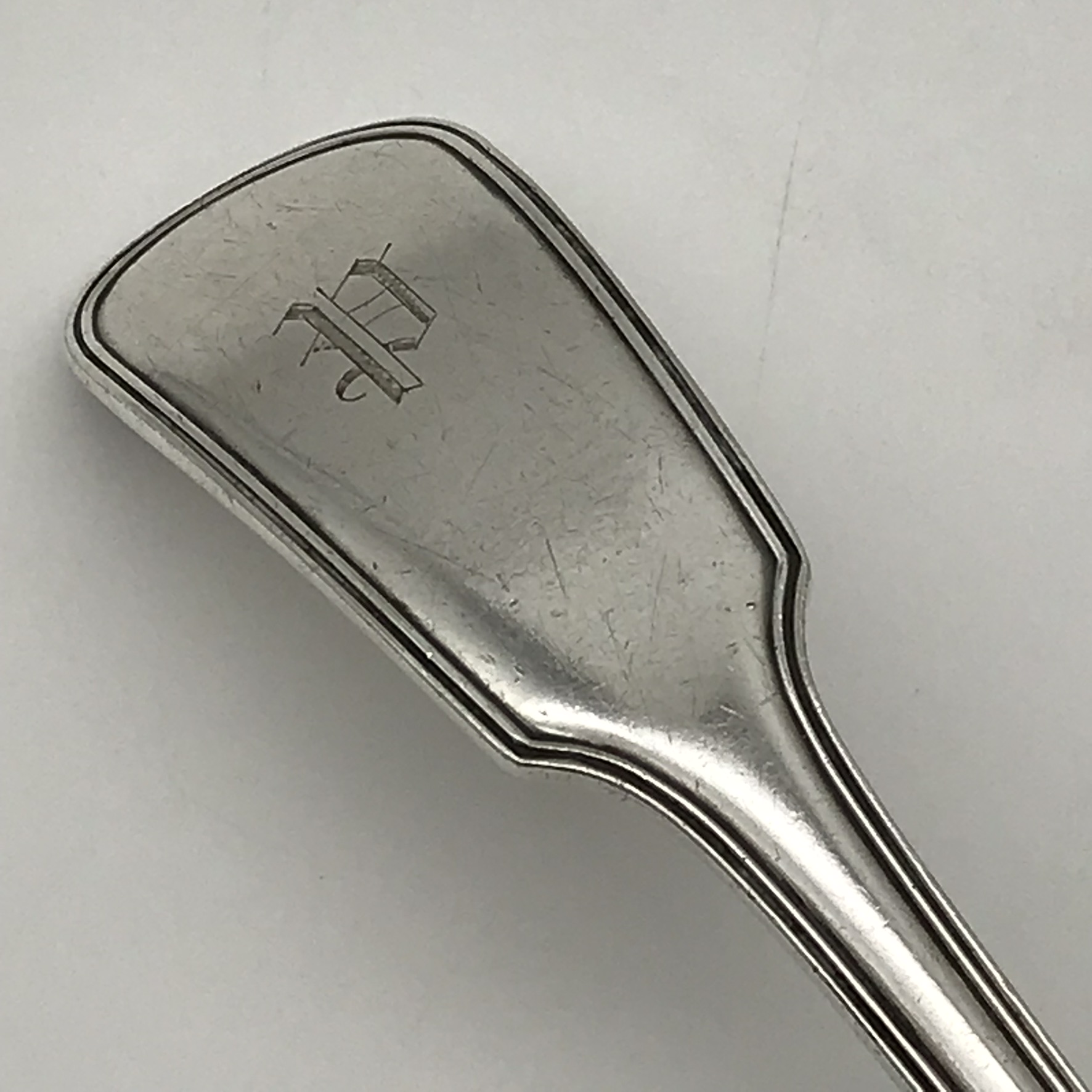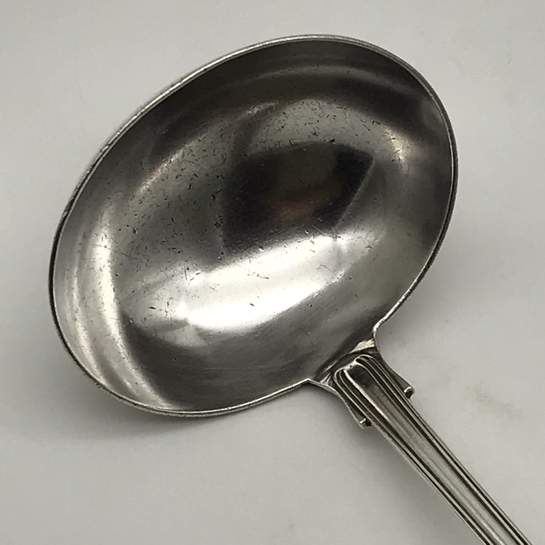 This very good quality, large antique silver-plated soup ladle, in the ‘Fiddle & Thread’, pattern was manufactured in the early 1900’s, in England by makers ‘William Hutton & Sons’ (WH & S). The ladle has the letter ‘P’ on the front and is stamped on the back with the makers trademark ‘WH & S’ and ‘A1’ for the quality of plating. It has a super weight and is in lovely condition. It measures 32cm in length, with a bowl measurement of 10,5cm x 8,5cm and weighs 260g.