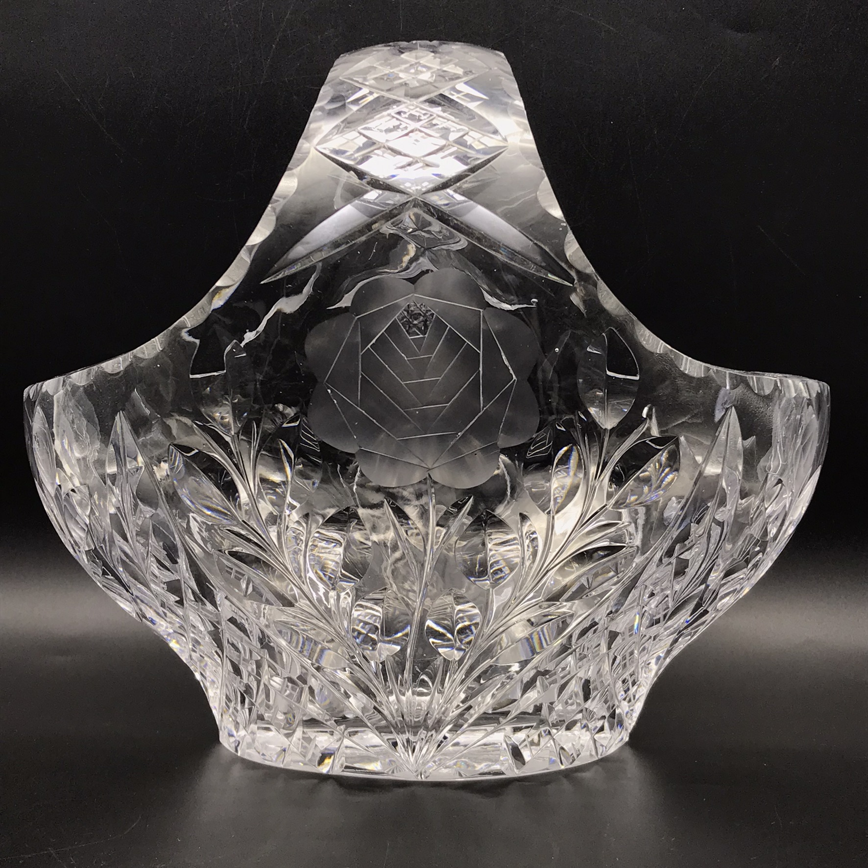 Large Attractive Early ‘Rose-Cut’ Crystal Basket