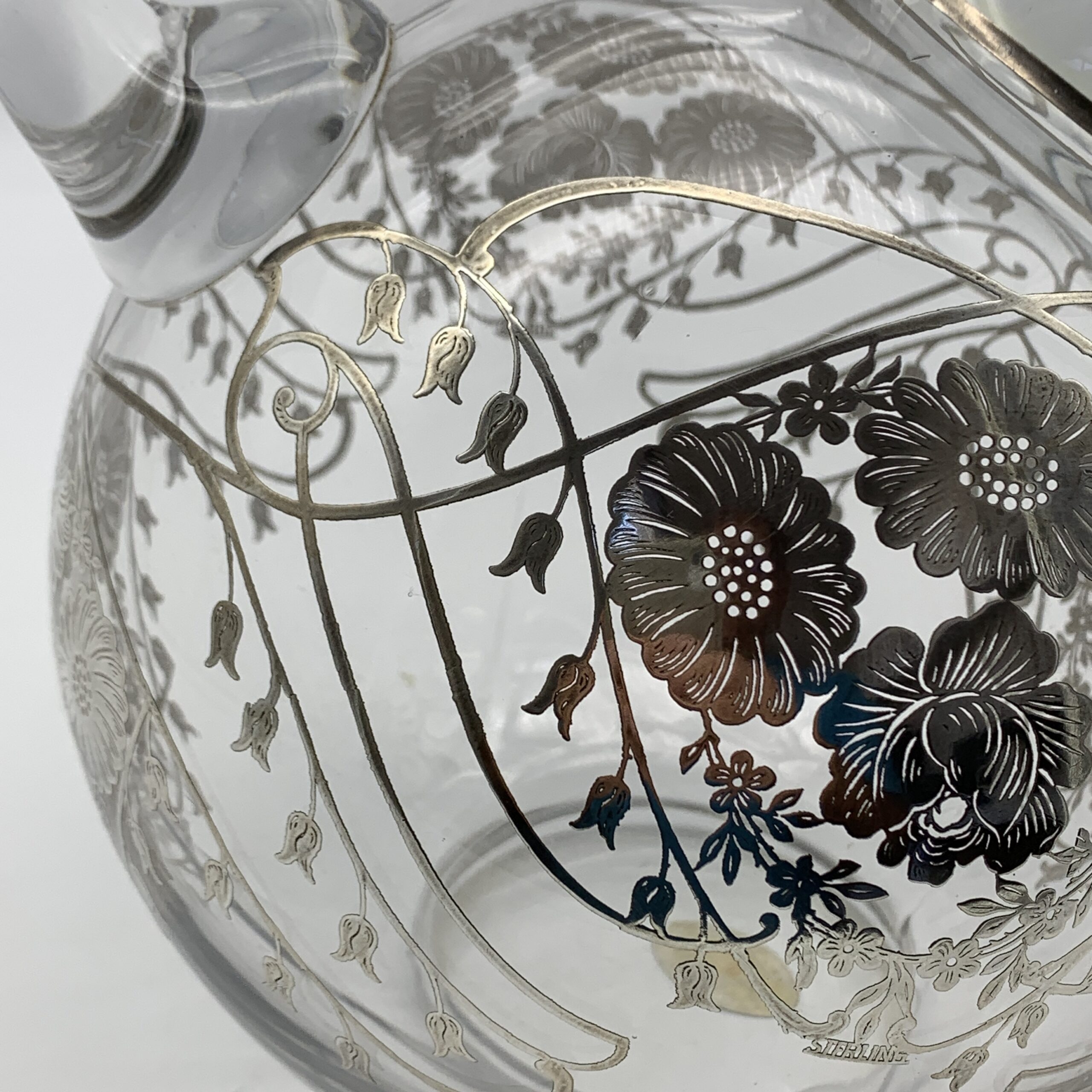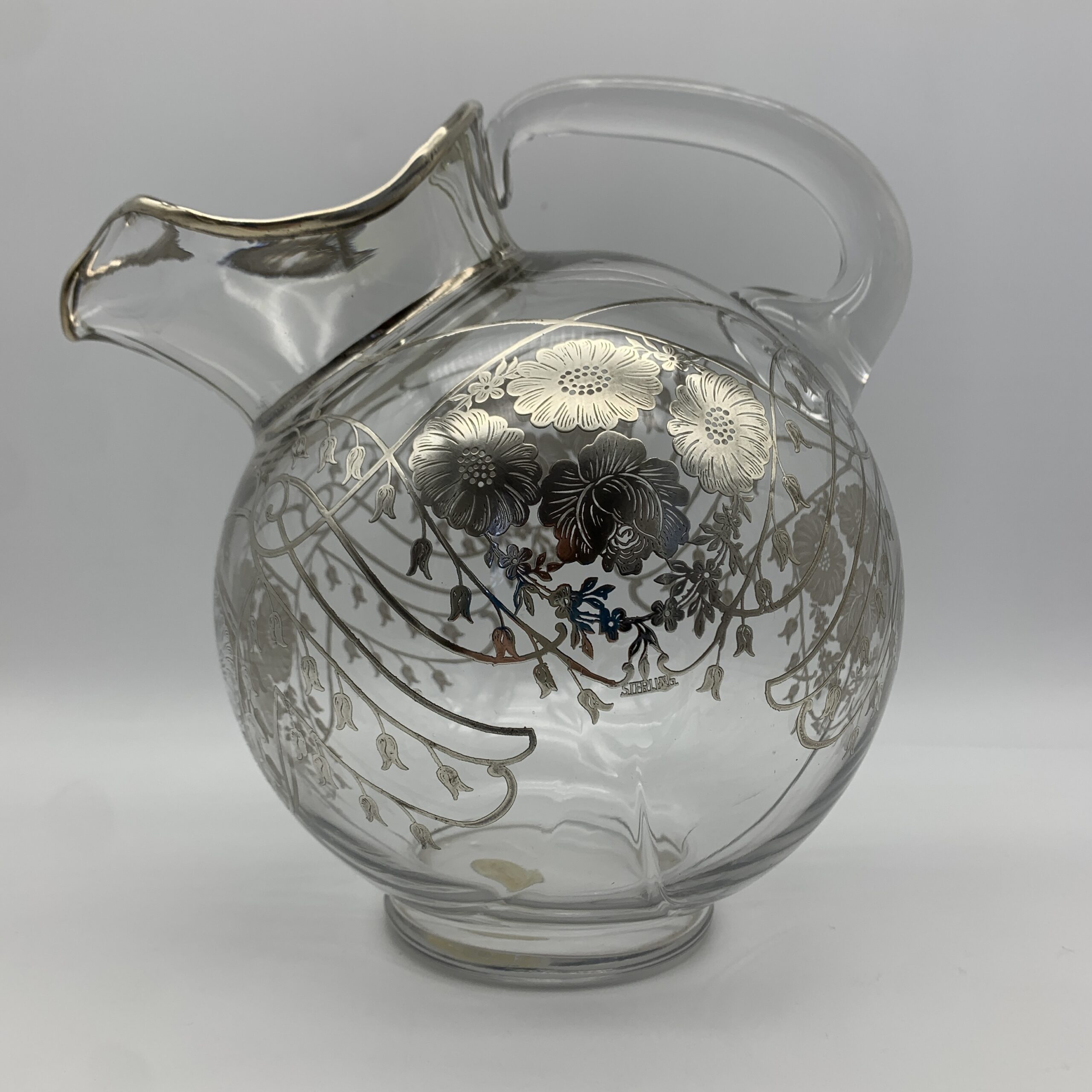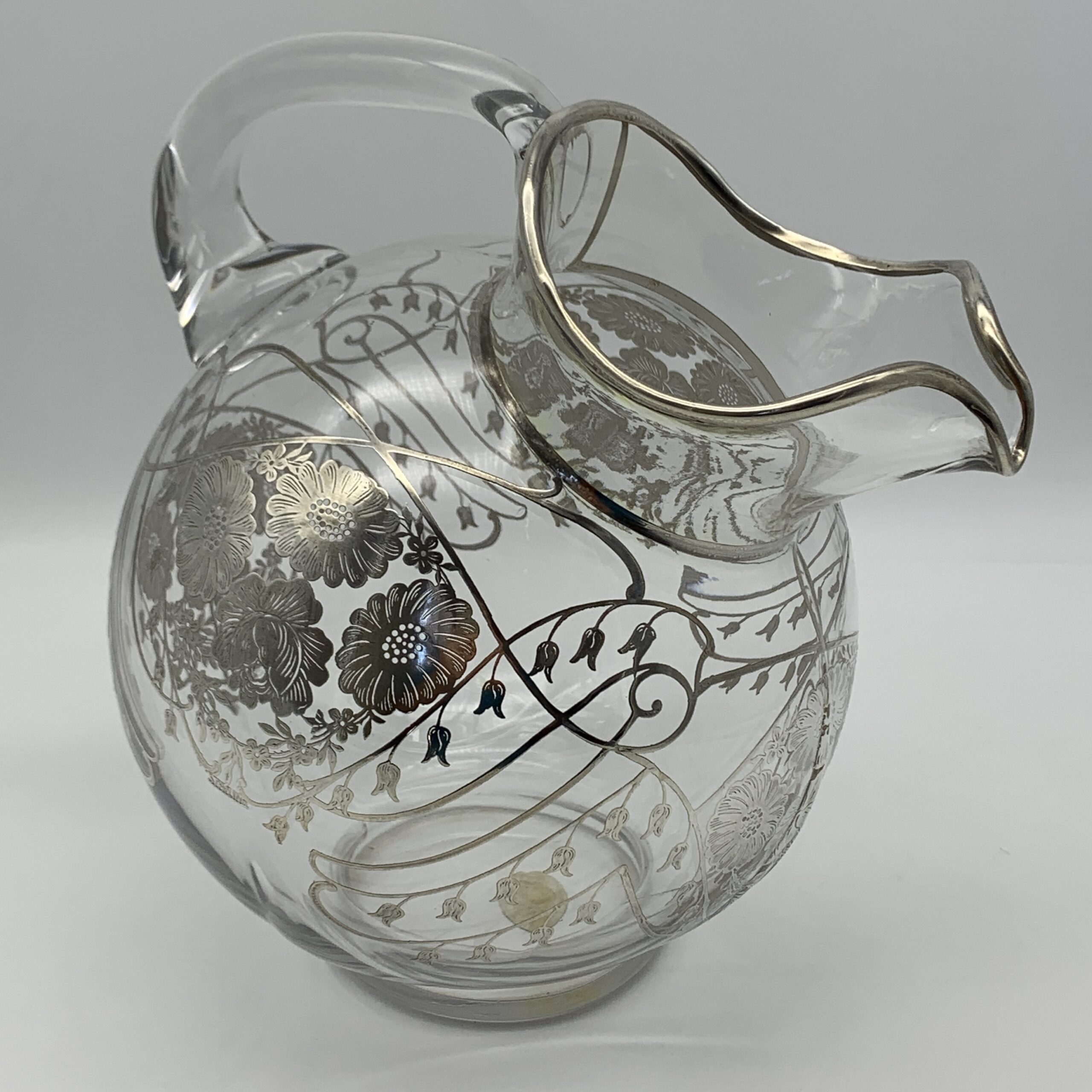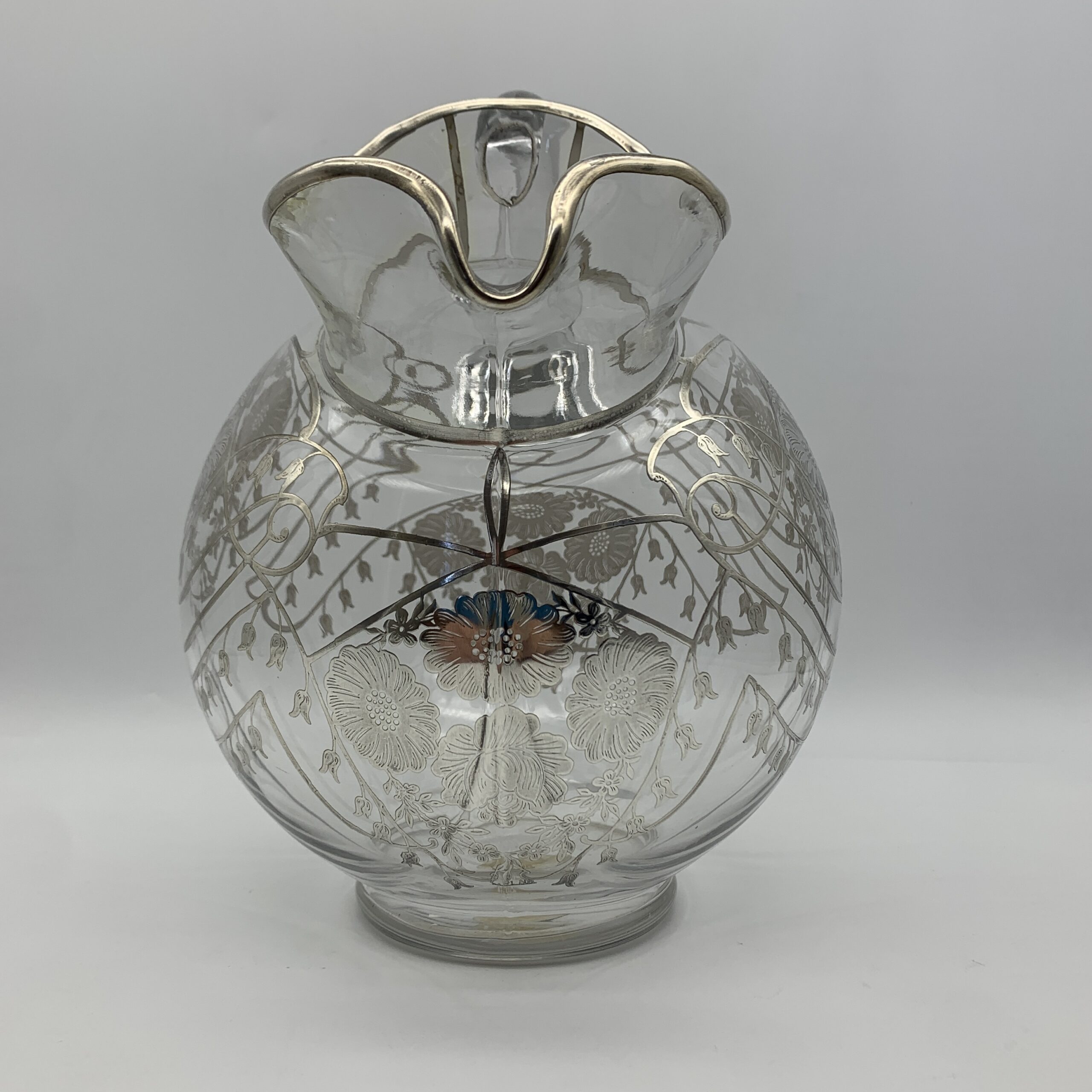 Large Glass Sterling Silver Overlay Water Jug (1940’s)