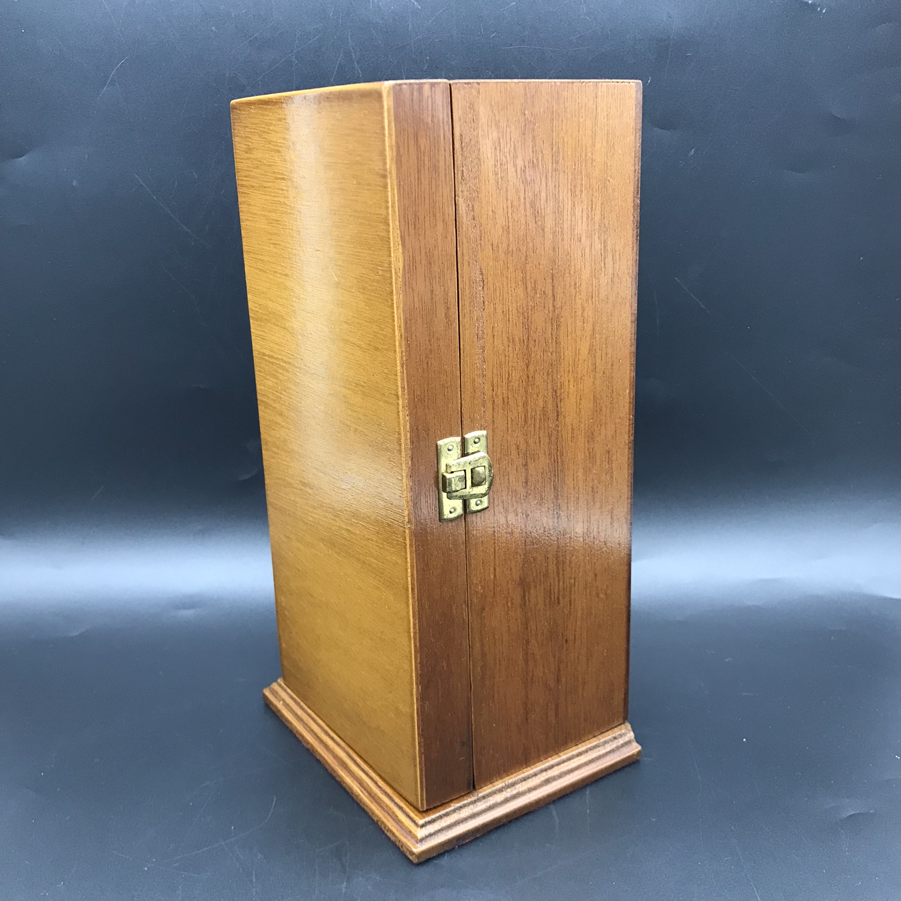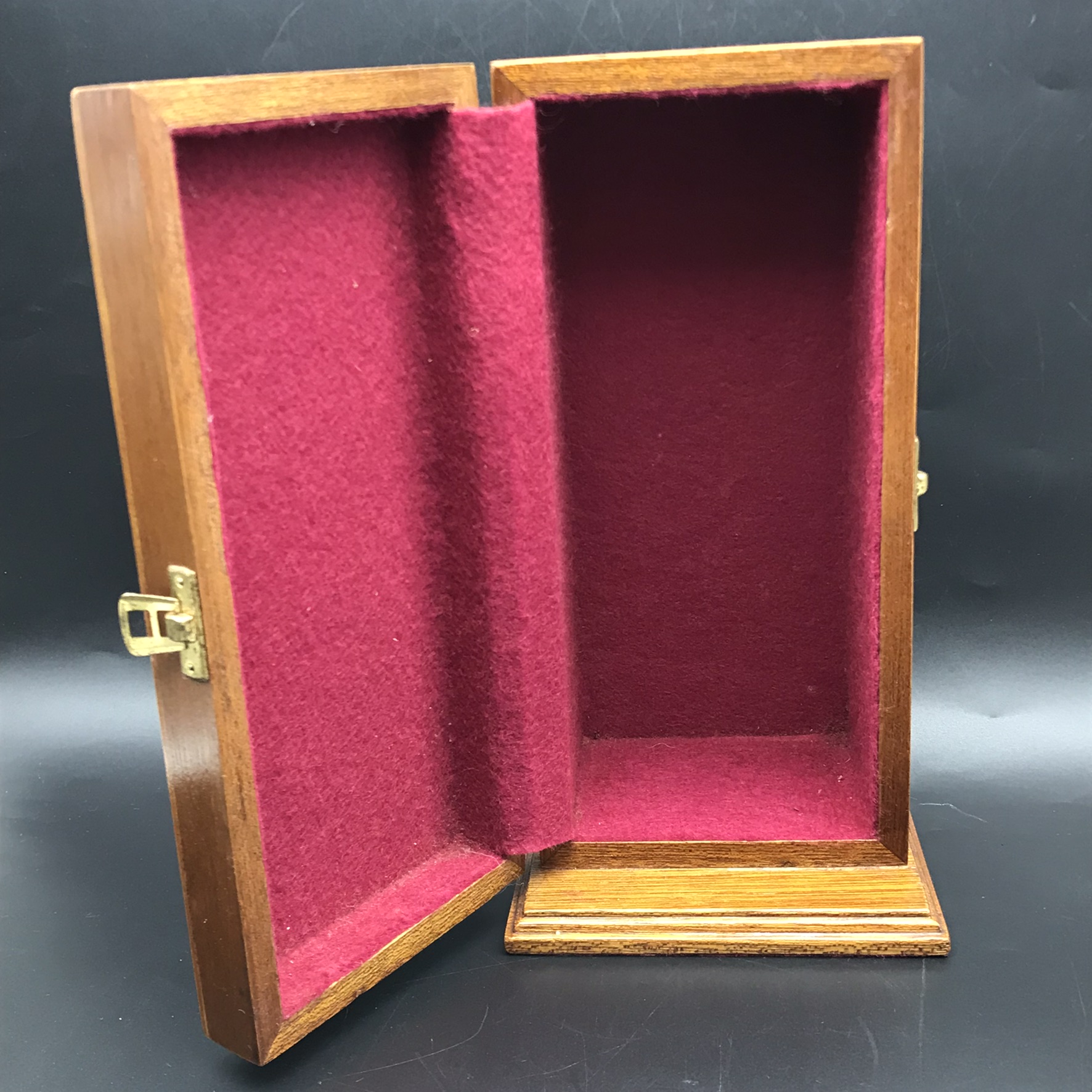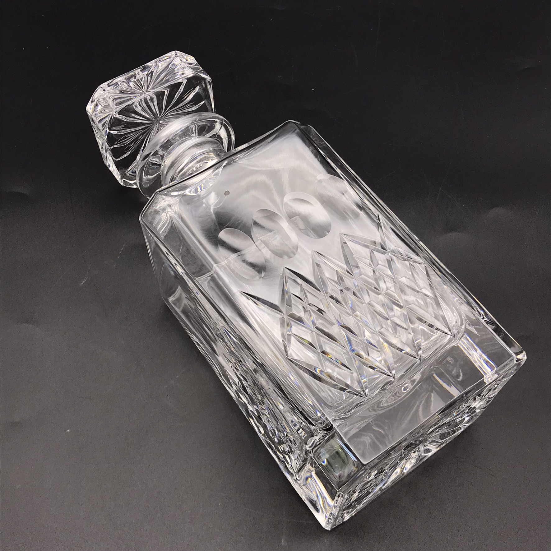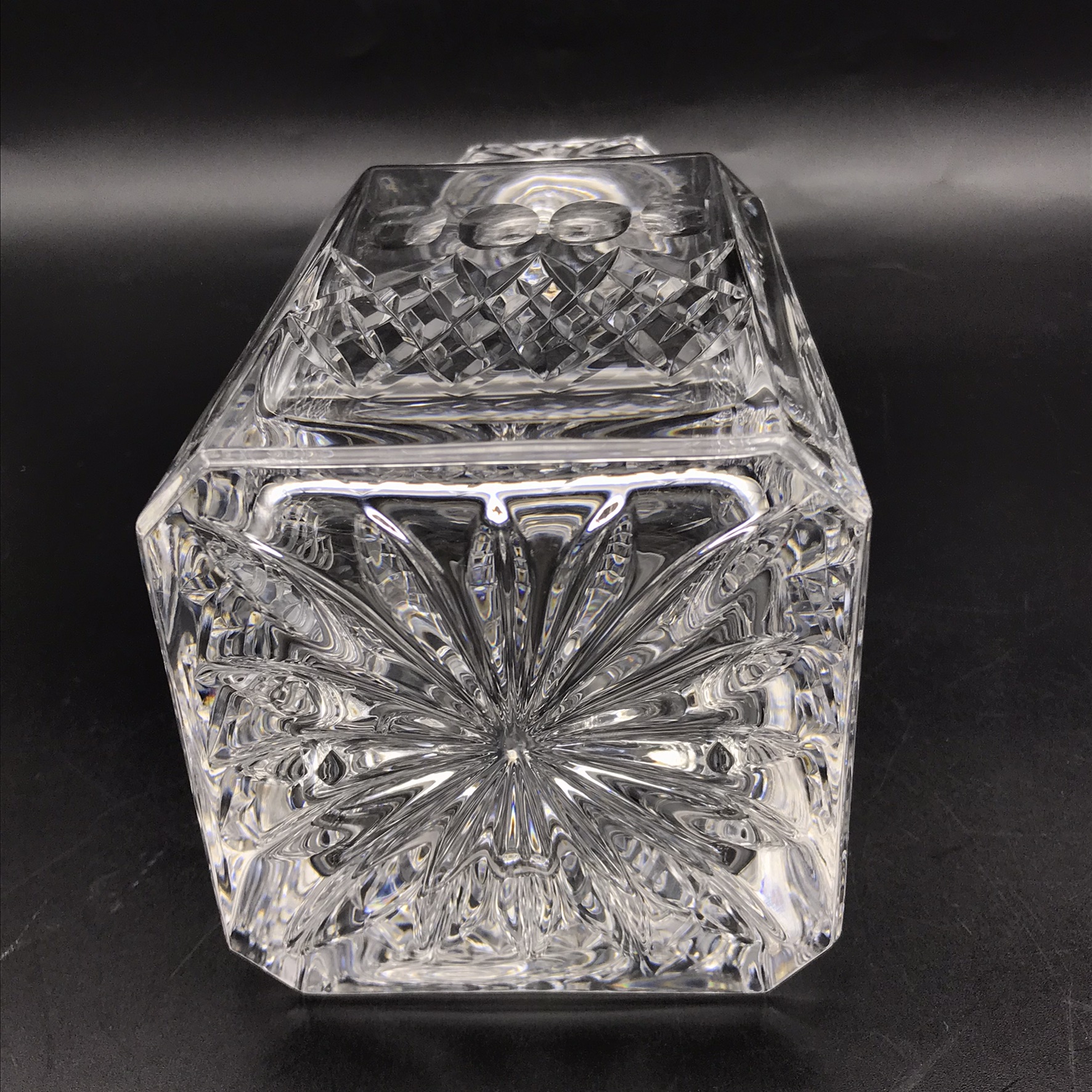 This vintage, super quality ‘Somerset’ Crystal decanter is in excellent condition and comes with its original, very well made, solid wood, velvet lined presentation case. The crystal decanter has a lovely weight and is beautifully hand-cut in a simple but attractive pattern, with a star-cut base, and stands 22cm high (18,3cm without stopper), has a base measurement of 9cm x 9cm and weighs 1,5kg. The case measures 27cm x 13,8cm x 11,2cm and together with the decanter weighs 2kg.