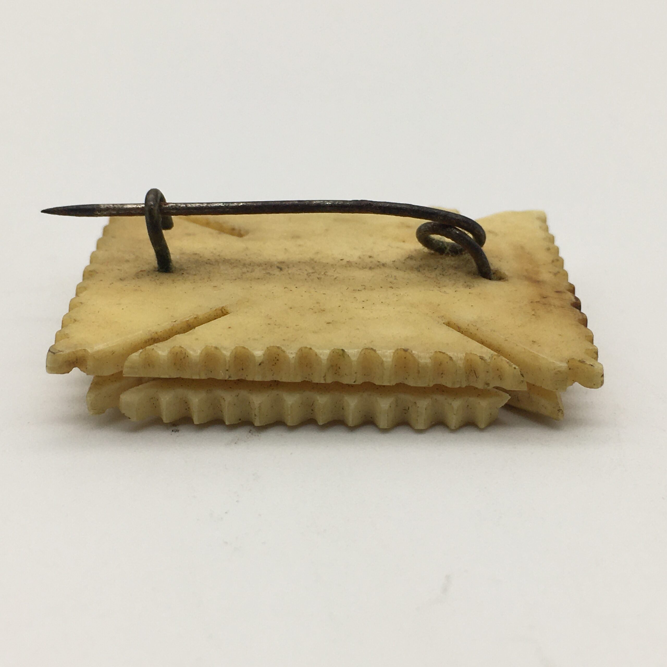 Rare Boer War – P.O.W. (St. Helena 1902) Bone Brooch