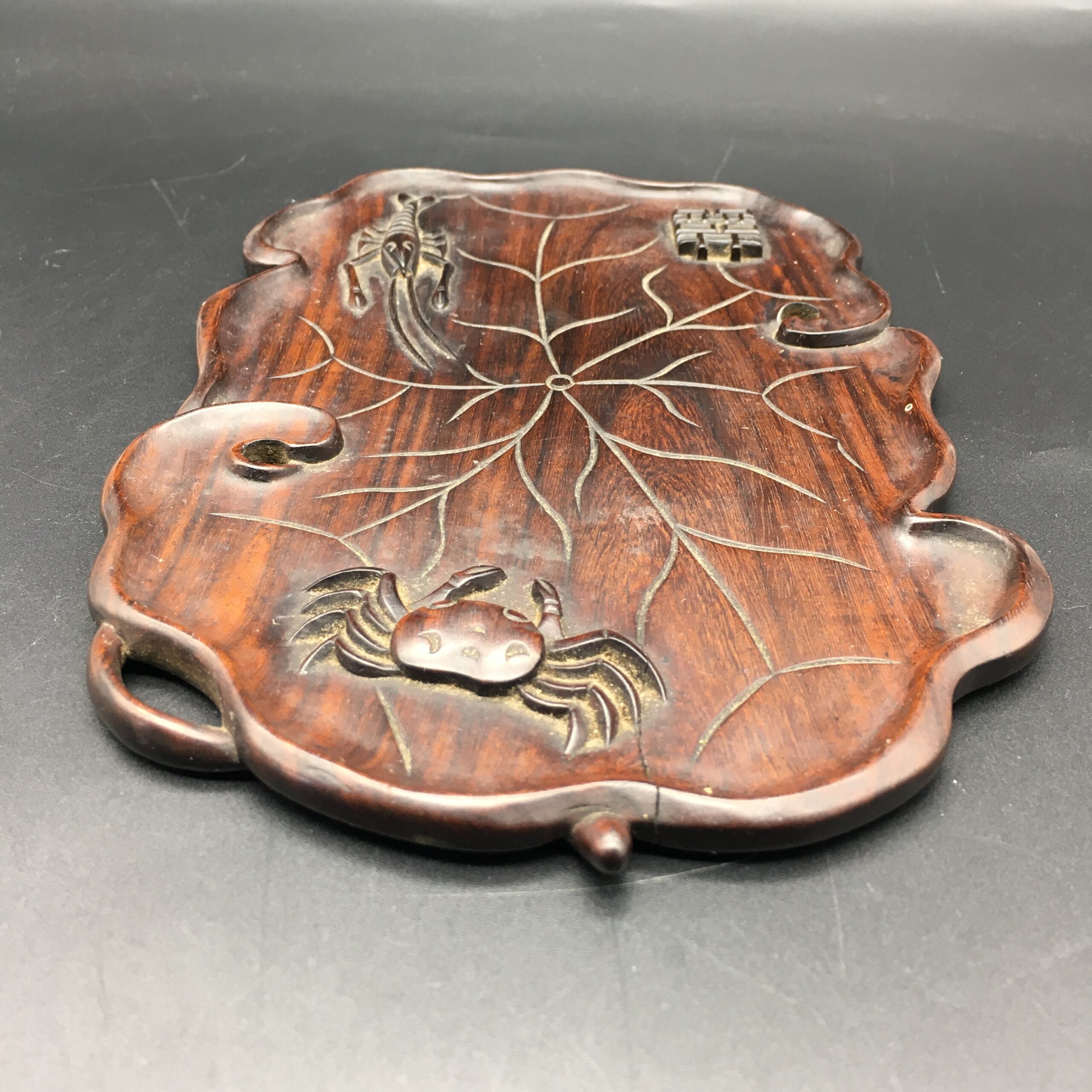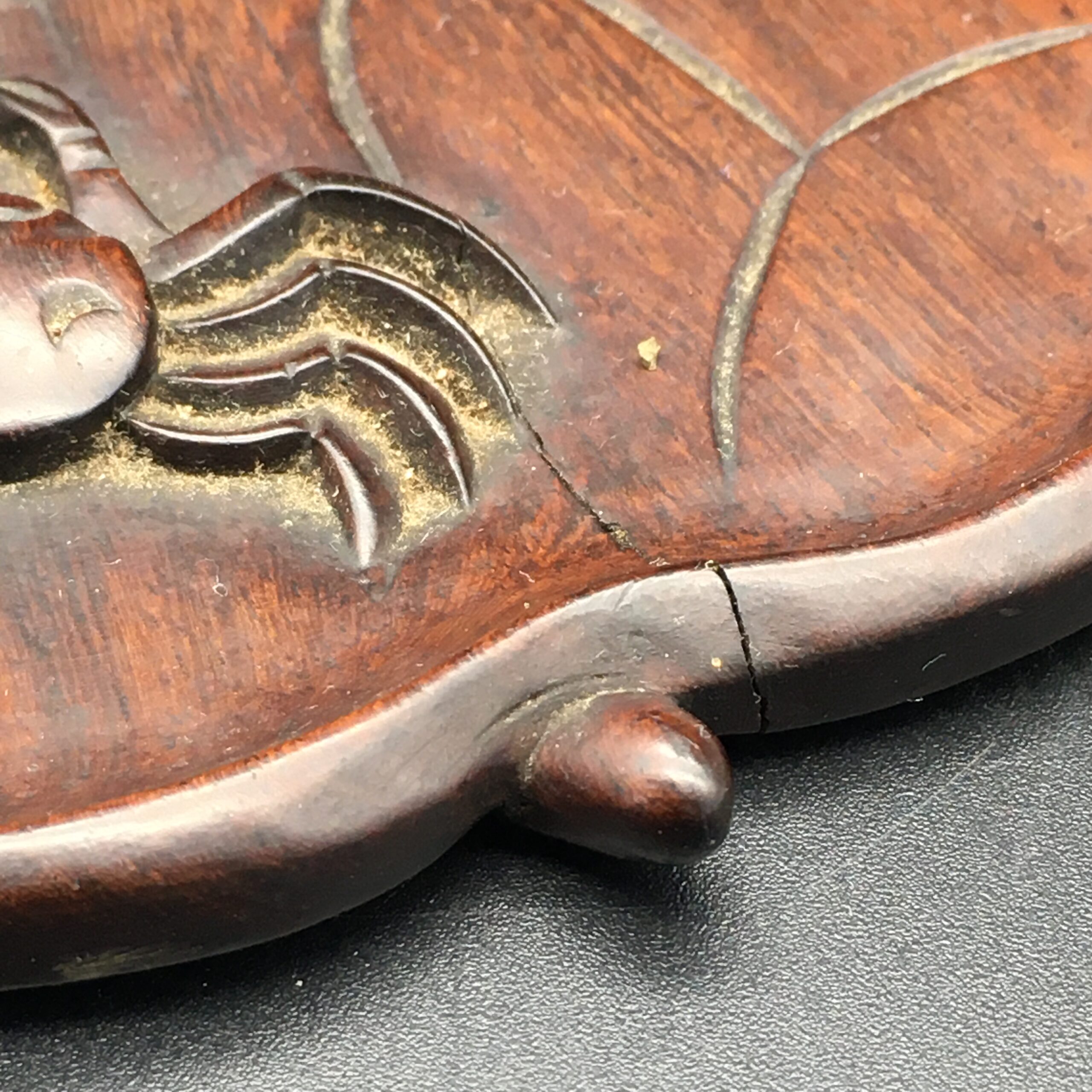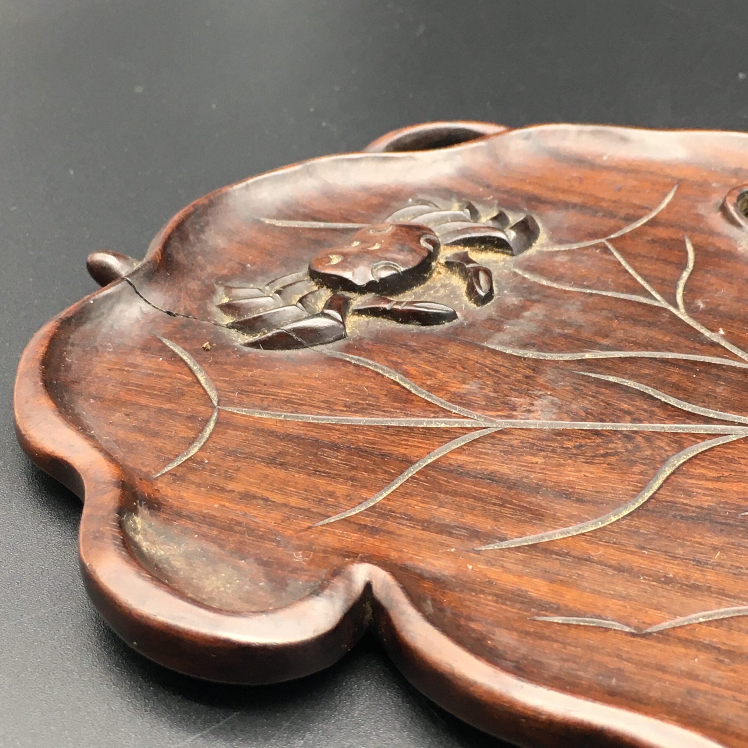 Rare ‘Japanese’ Antique Carved ‘Lily Pad’ Tray (Signed)