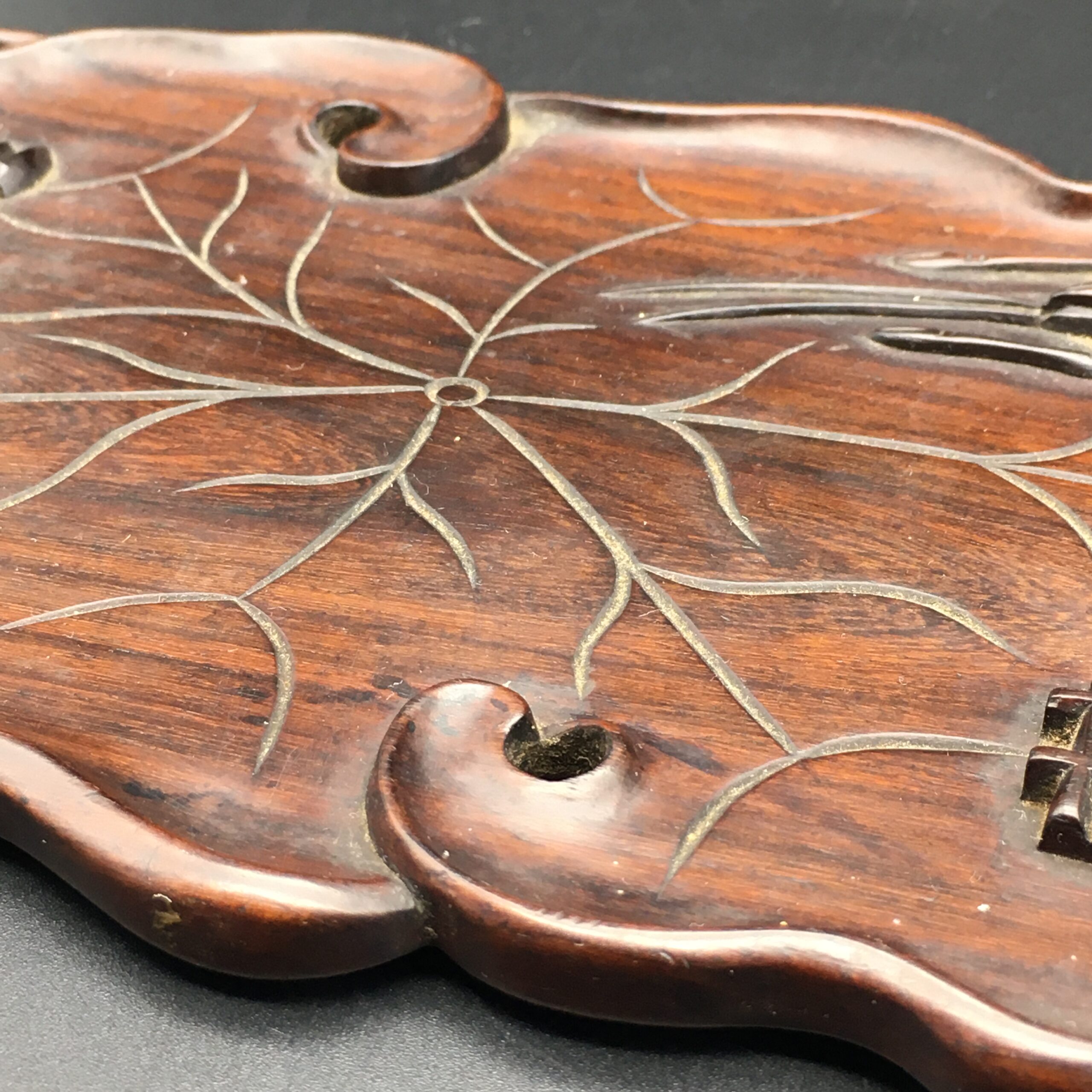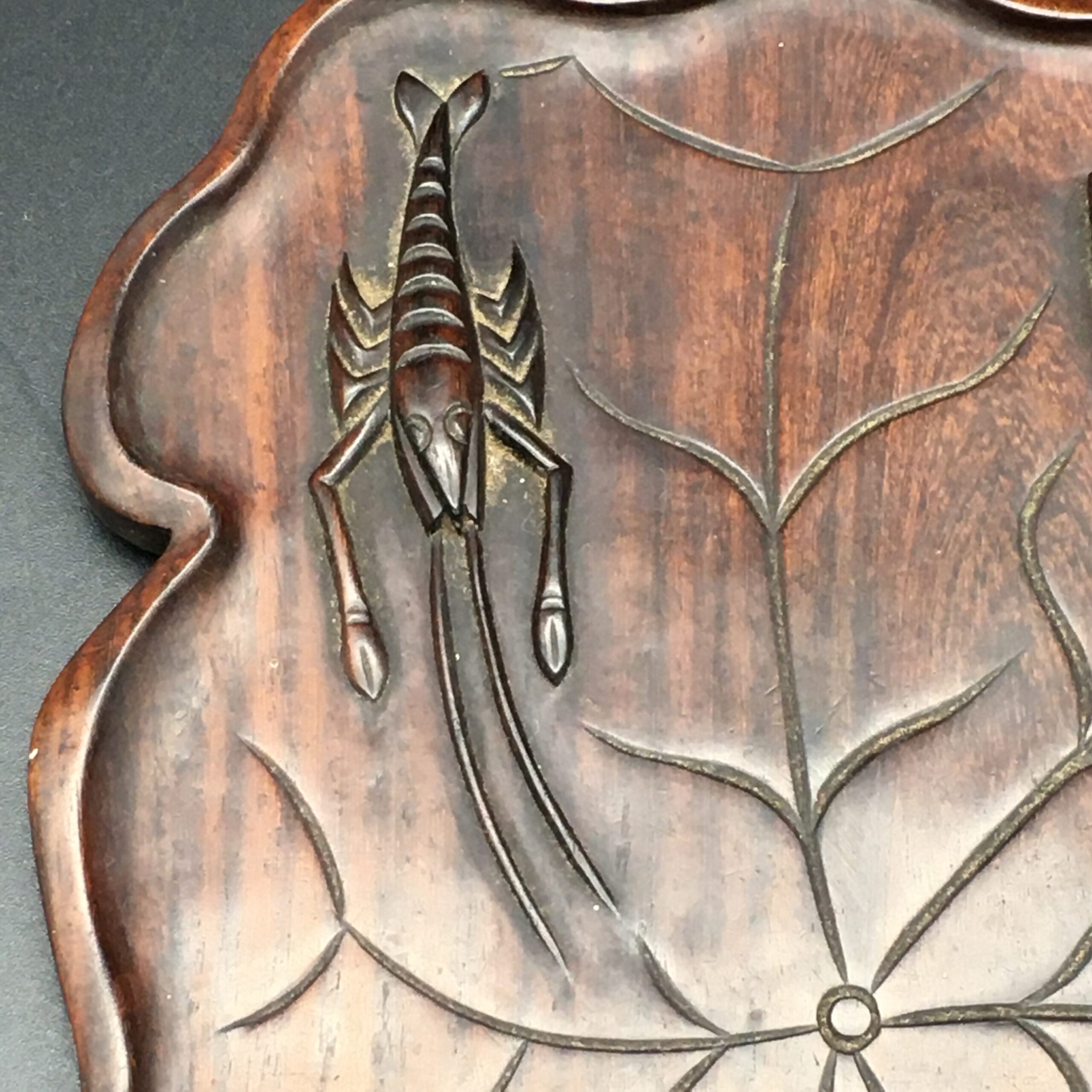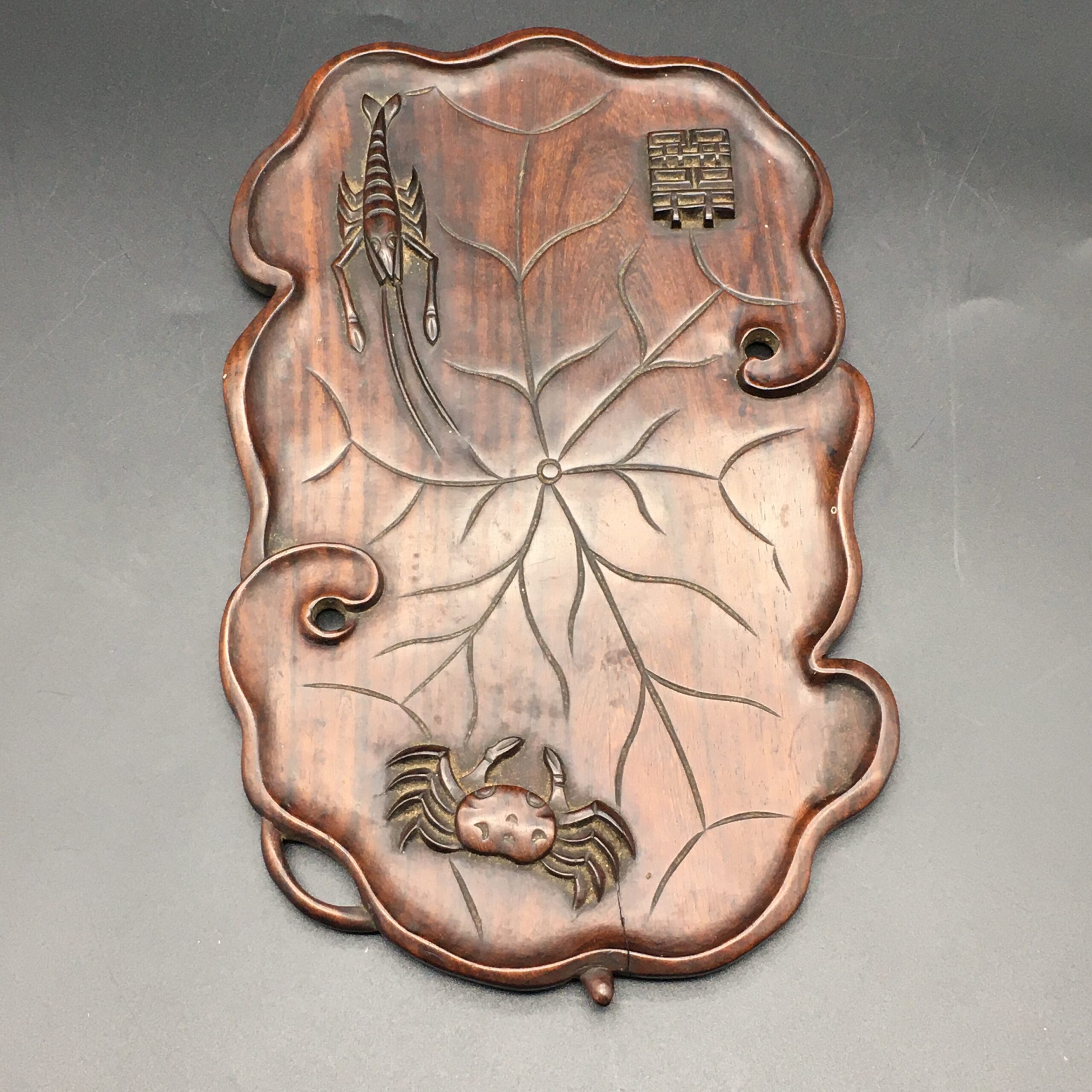 Rare ‘Japanese’ Antique Carved ‘Lily Pad’ Tray (Signed)