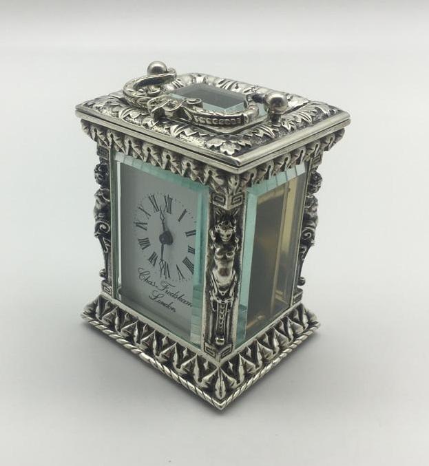Rare Sterling Silver 8 day Miniature Carriage Clock