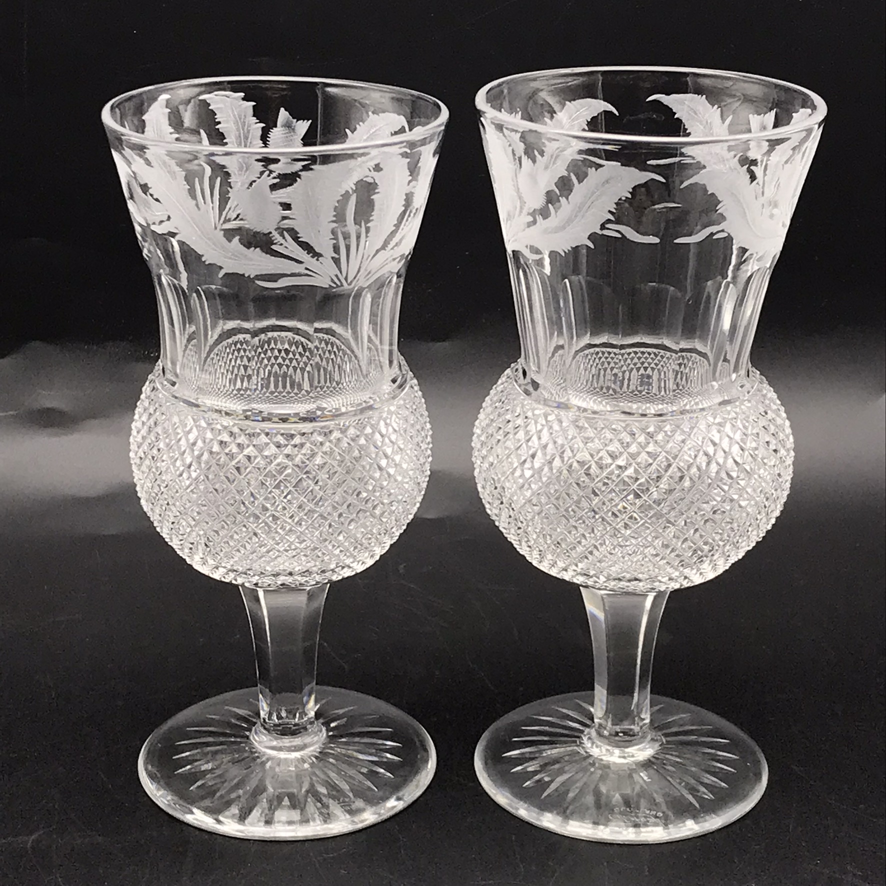 Scarce Pair of Large ‘Edinburgh’ Crystal Thistle Wine Glasses