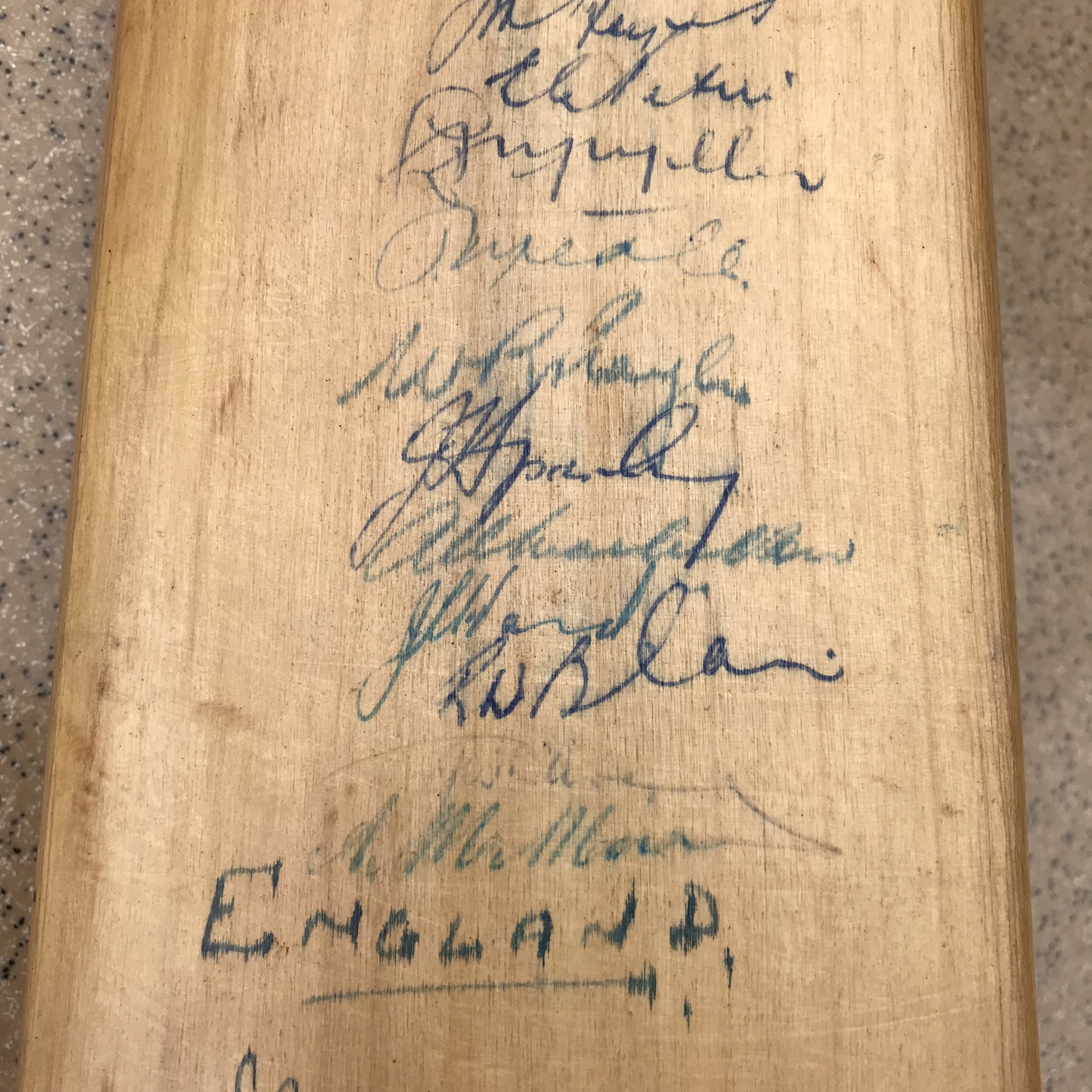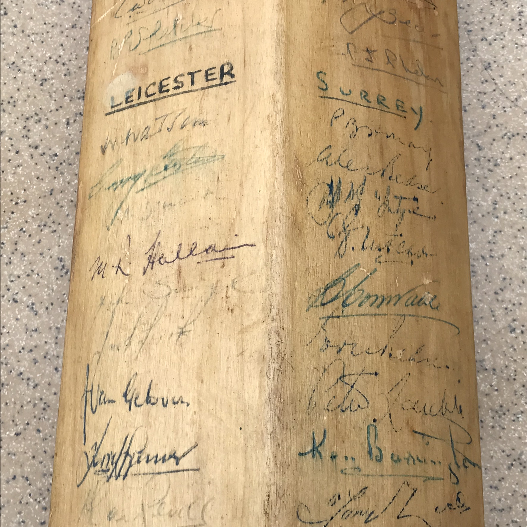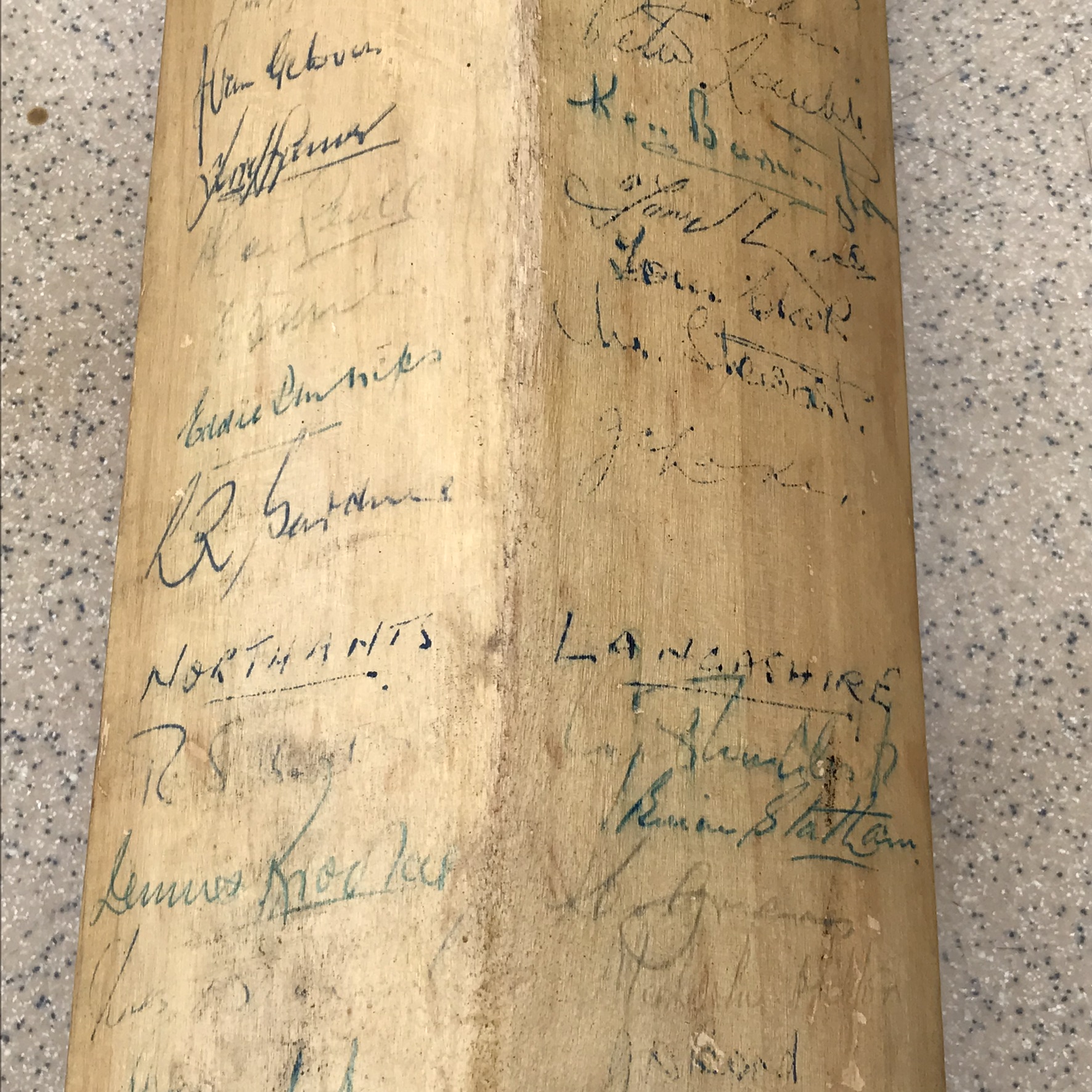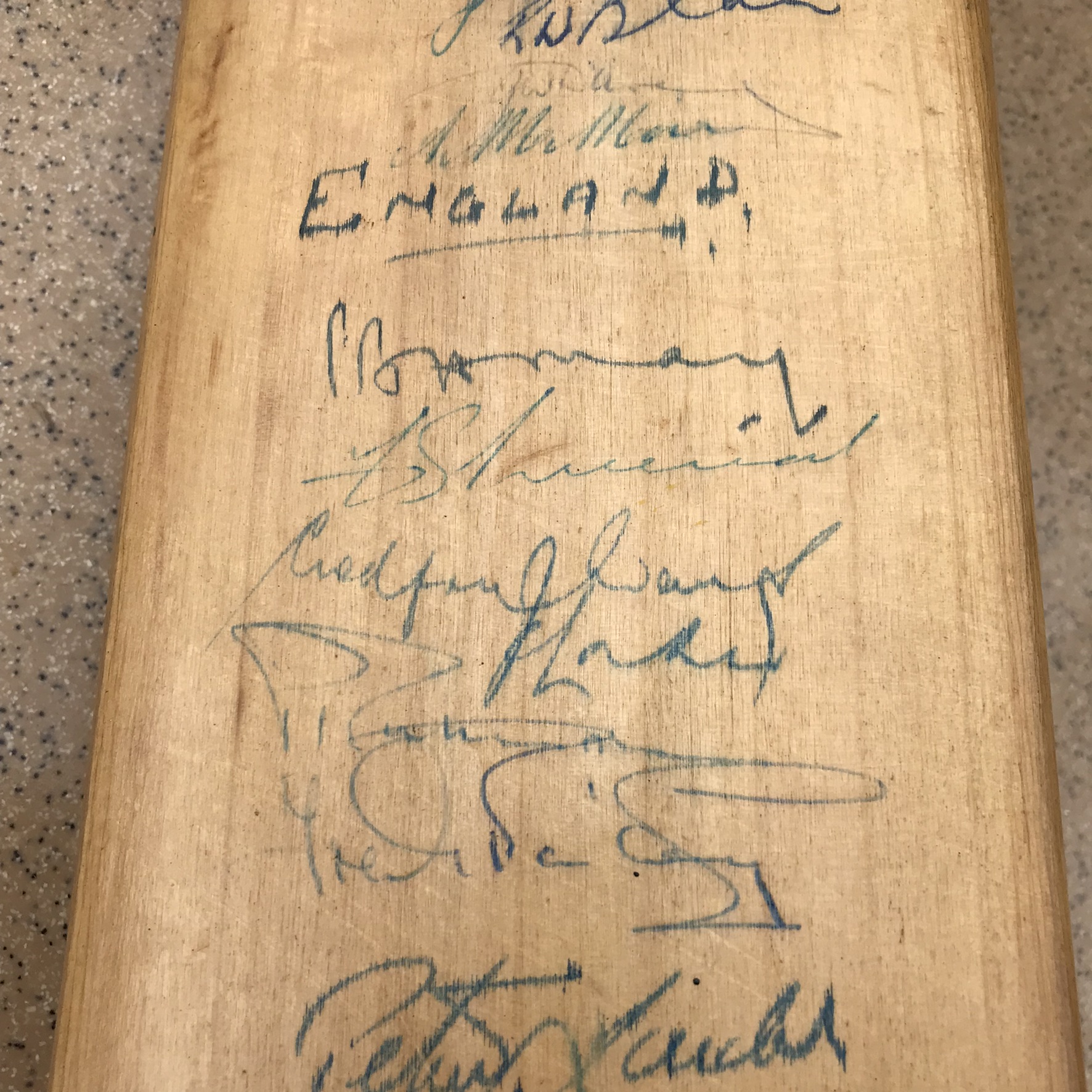 This scarce, fully autographed, circa 1958 ‘Stuart Surridge’ (The Royal County Driver) full sized cricket bat, I believe from looking at the names, is from the ‘1958 New Zealand Cricket tour to England’. It has been personally signed by all the players, on the front by both the New Zealand and England teams and on the back by several English County sides, Warwickshire, Essex, Leicestershire, Surrey, Northamptonshire, and Lancashire. Most of the signatures are still very clear and readable, but the bat grip appears to have hardened overtime and is covered with clear plastic, otherwise it’s in great condition. The bat measures 87,5cm x 10,5cm and weighs 1050g.