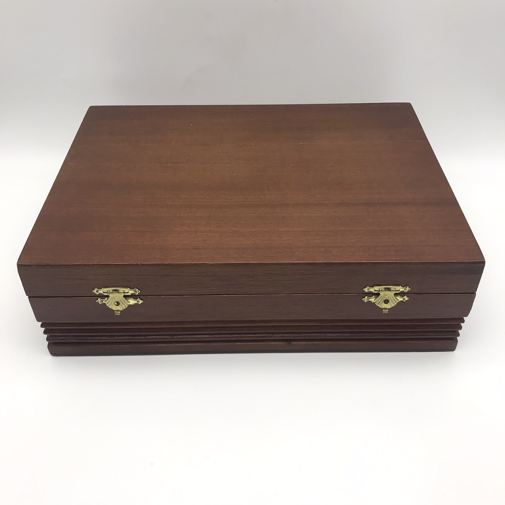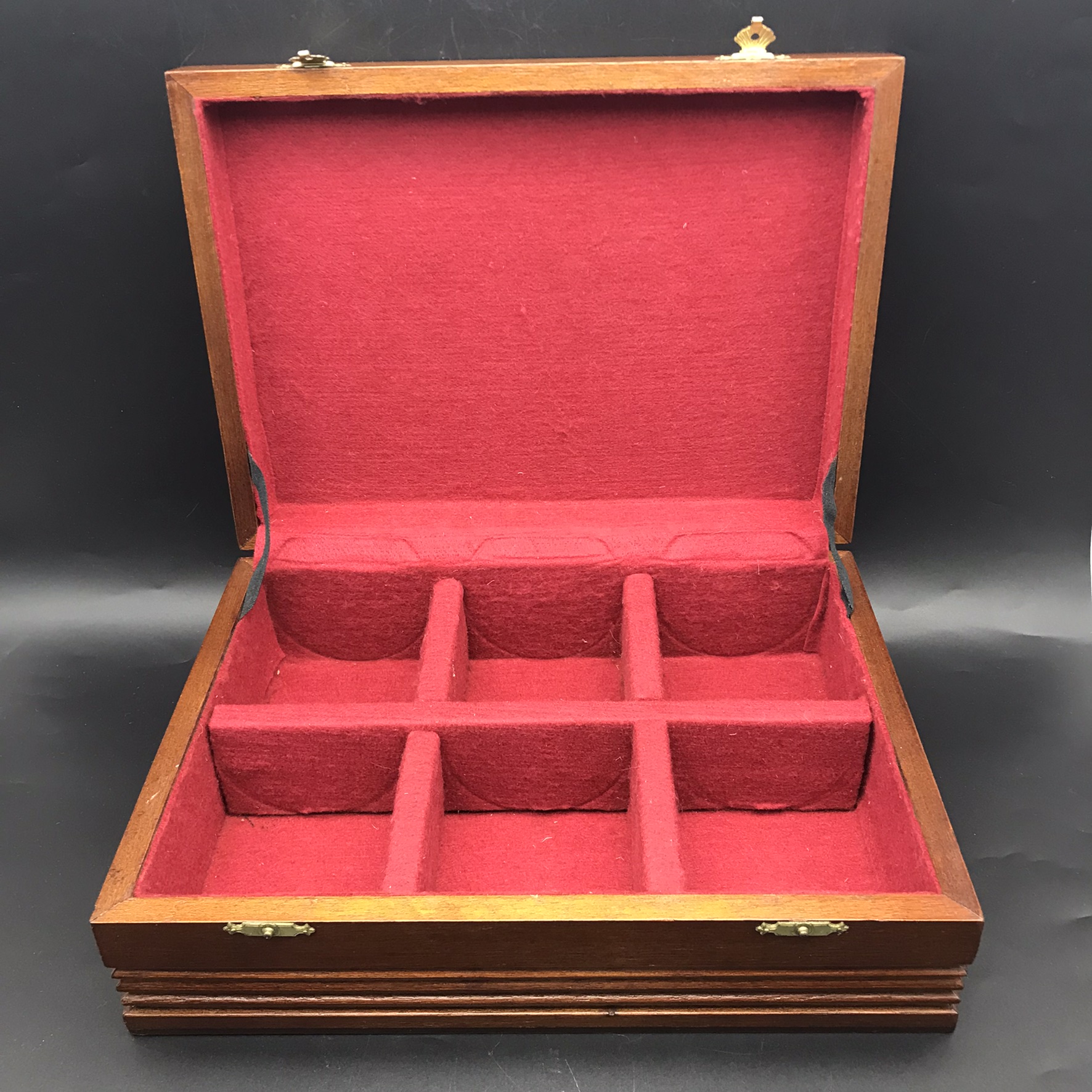 This wonderful set of six good quality, ‘Somerset’ crystal whisky glasses are beautifully hand-cut in a criss-cross pattern with a star-cut base, and come presented in their original, very well-made solid wood and velvet lined case. The glasses are a nice size whisky glass with a good weight and are all in excellent condition. They stand 9,3cm high, with a top diameter of 8cm and have a combined weight of 2025g. The hinged case with catches is also in excellent condition and measures 31cm x 23cm 9,5cm, and together with the glasses, weighs 3315g.