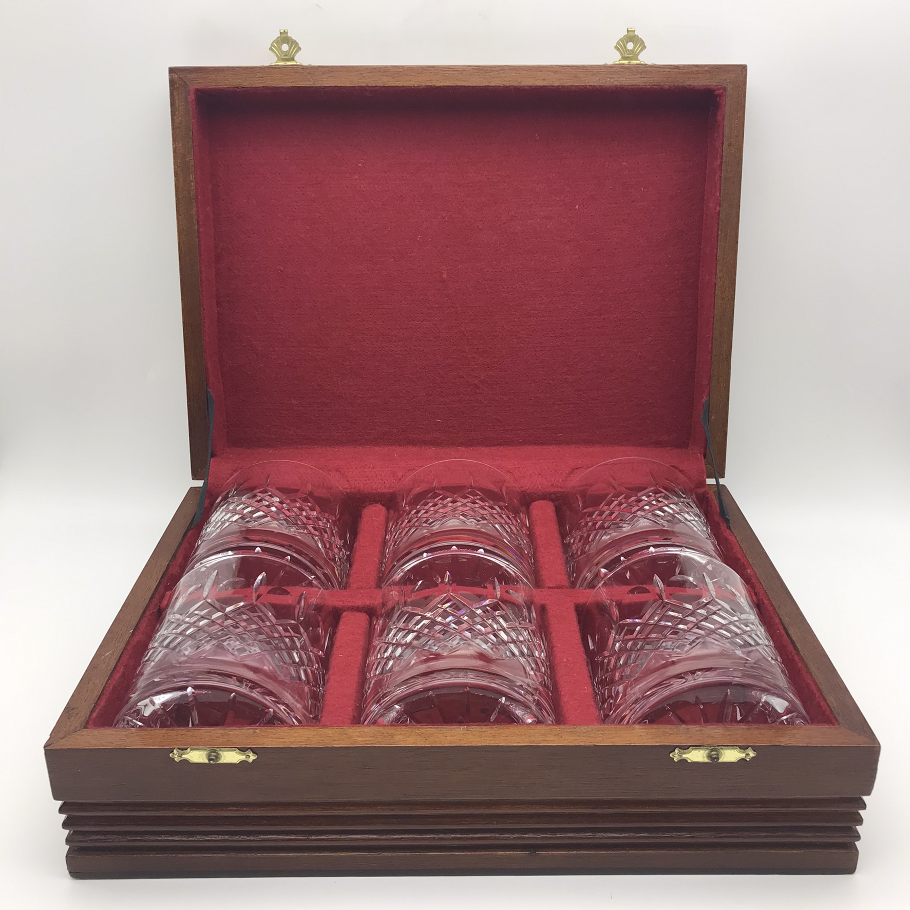 Six Wooden Cased ‘Somerset’ Crystal Whisky Glasses