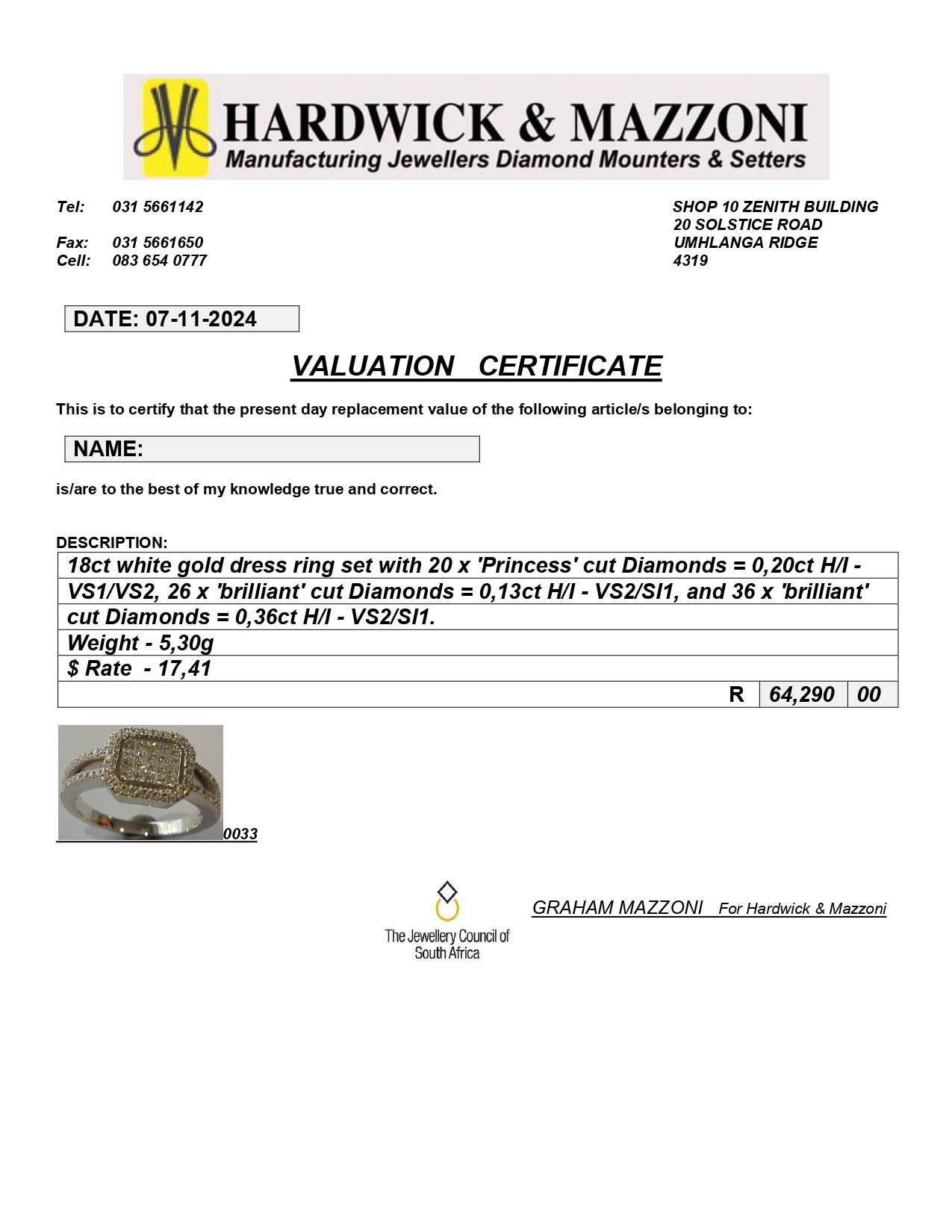 Replacement Value = R64 290.00 (This ring is sold with a reputable independent jeweller’s valuation certificate.)