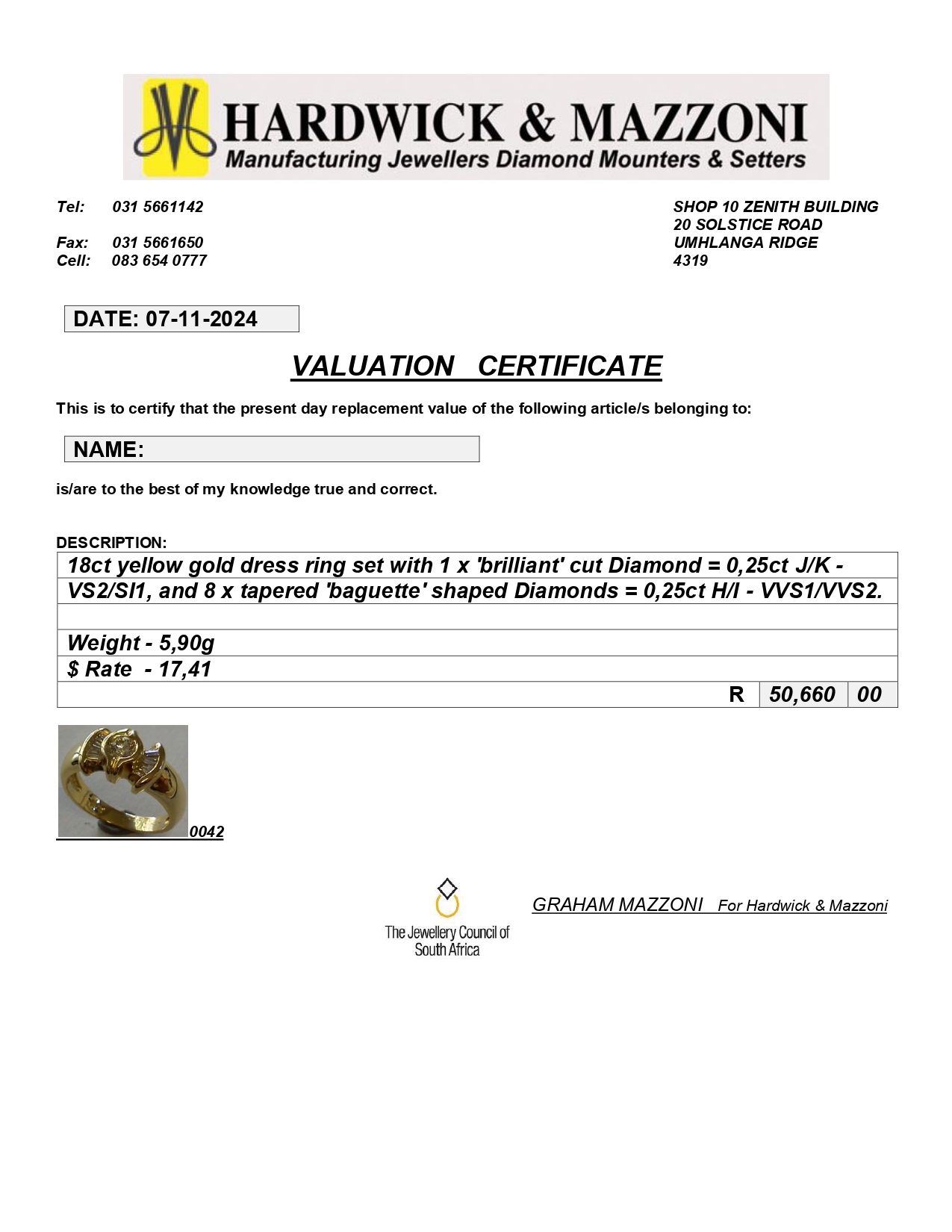 Replacement Value = R50 660 (This ring is sold with a reputable independent jeweller’s valuation certificate.)
