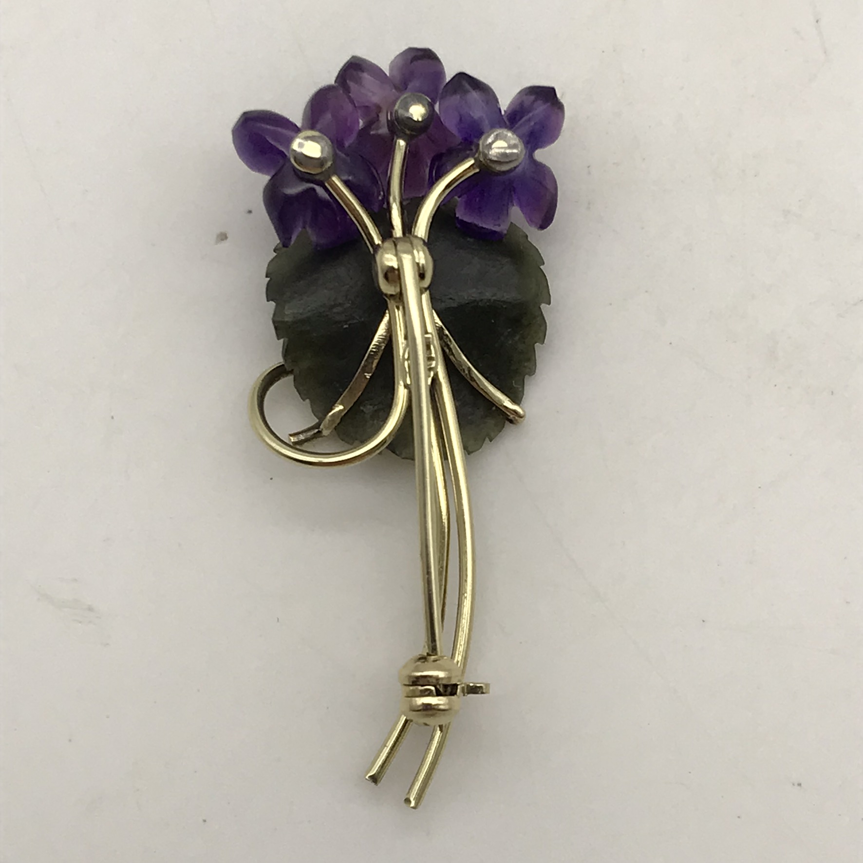 Vintage 14ct Gold, Amethyst & Jade Flower Brooch