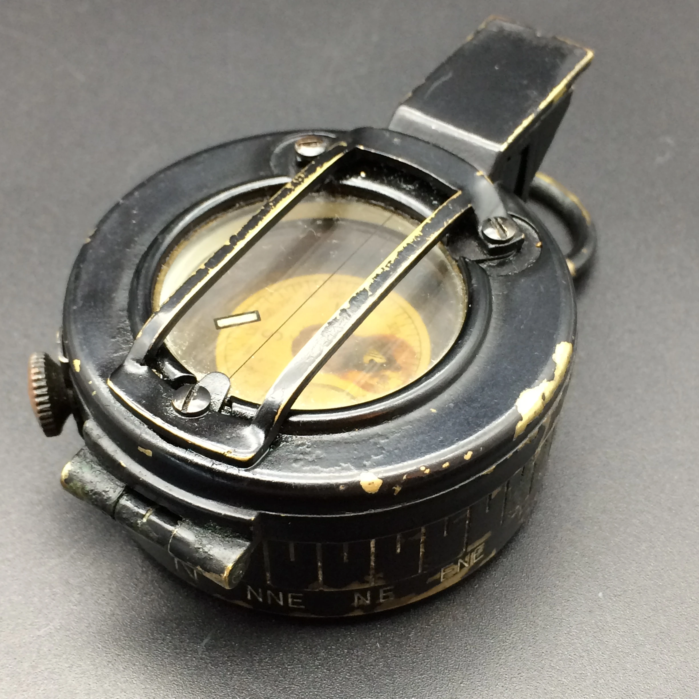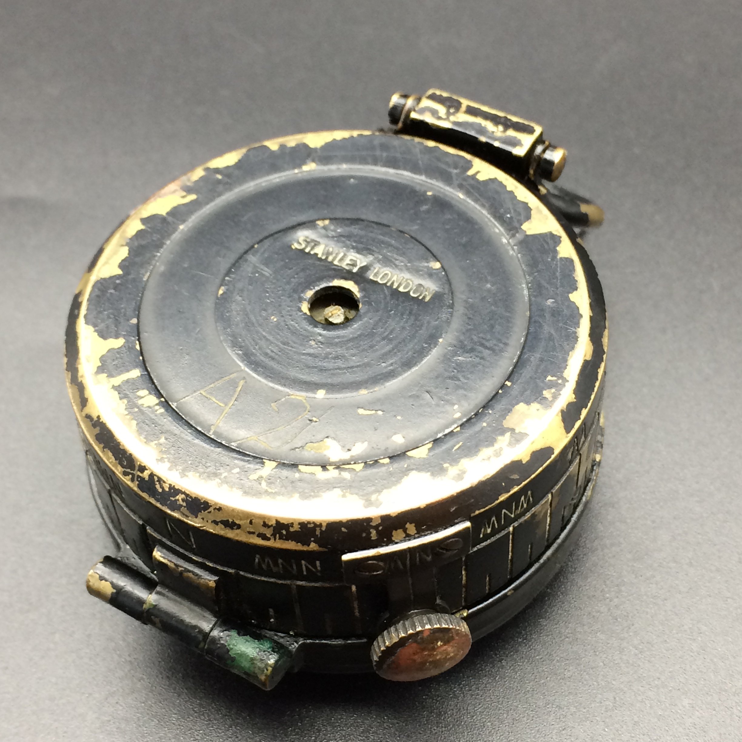 This early compass seems to be mechanically fine and other than some paint loss in places it is in good condition. It should clean up nicely for someone who knows what they are doing. It is stamped on the base ‘STANLEY LONDON.’