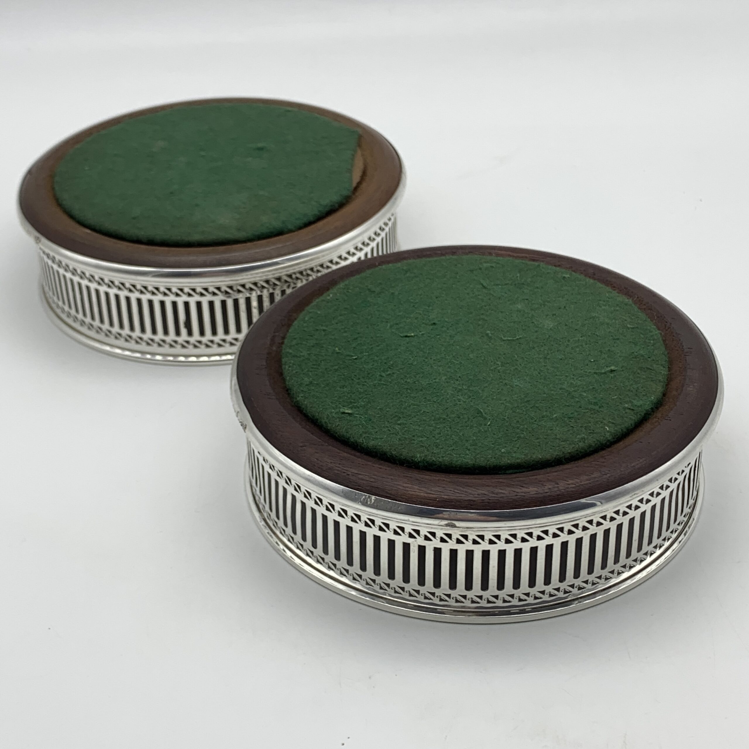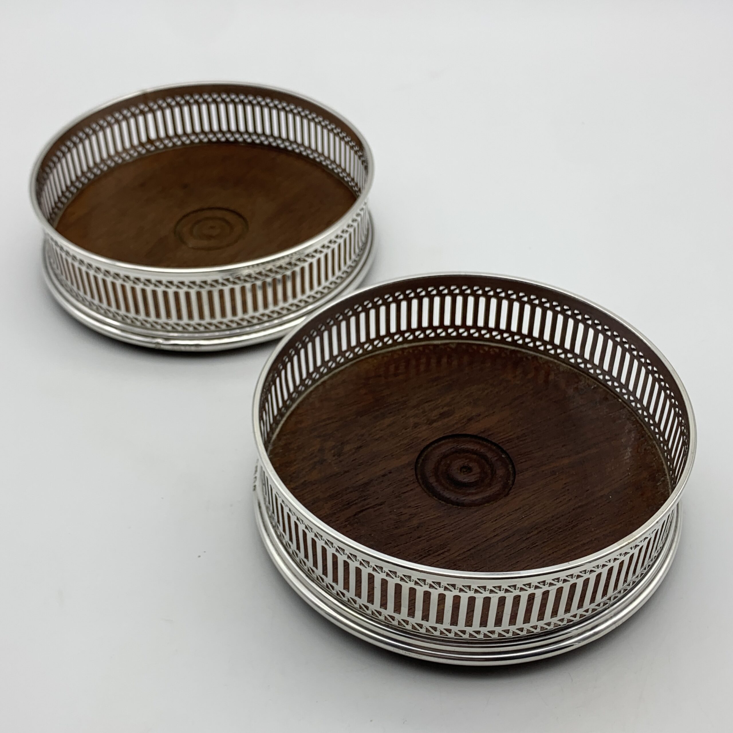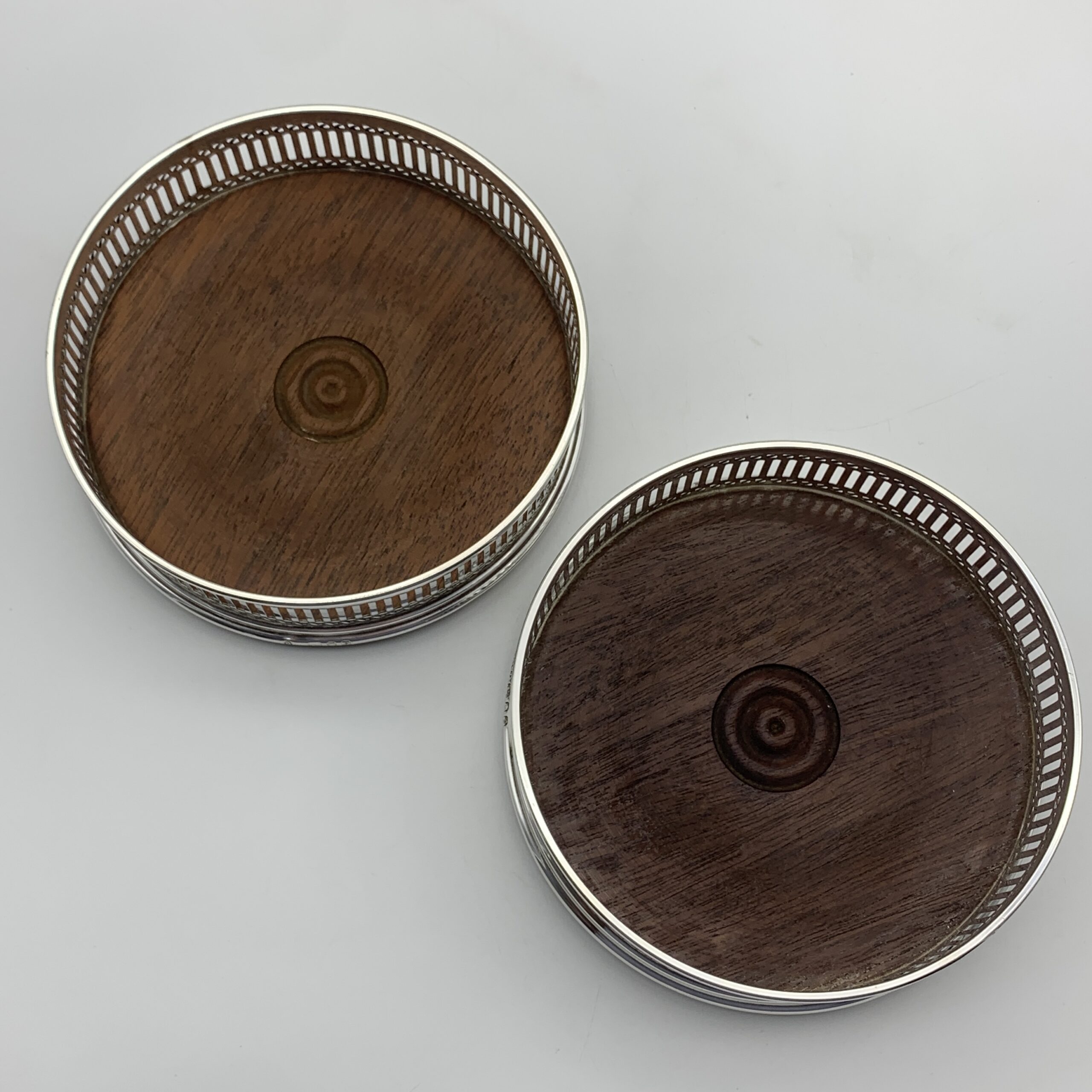 Vintage Pair of Sterling Silver Wine Coasters