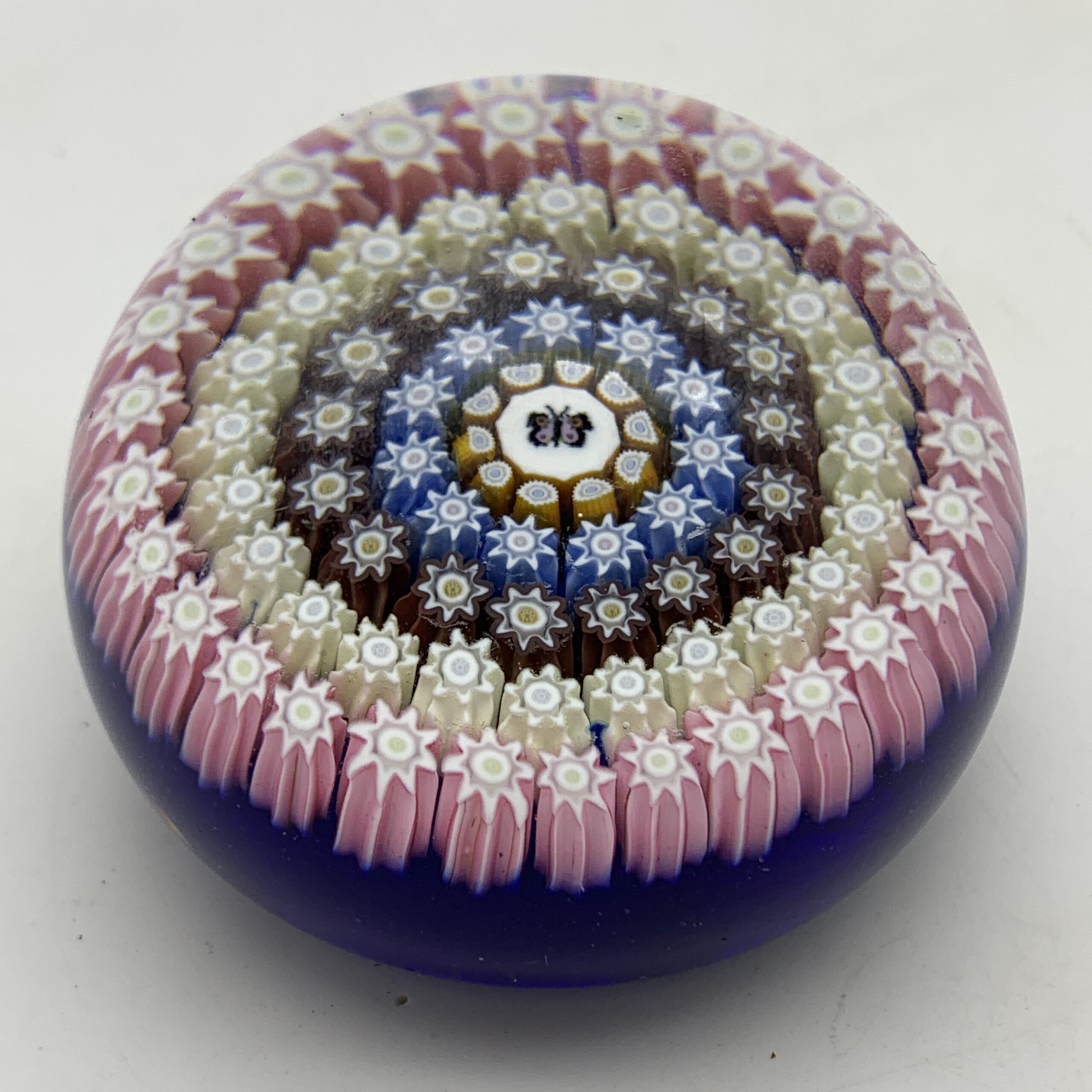 Vintage ‘Perthshire’ (Millefiori & Butterfly) Art Glass Paperweight (Signed)