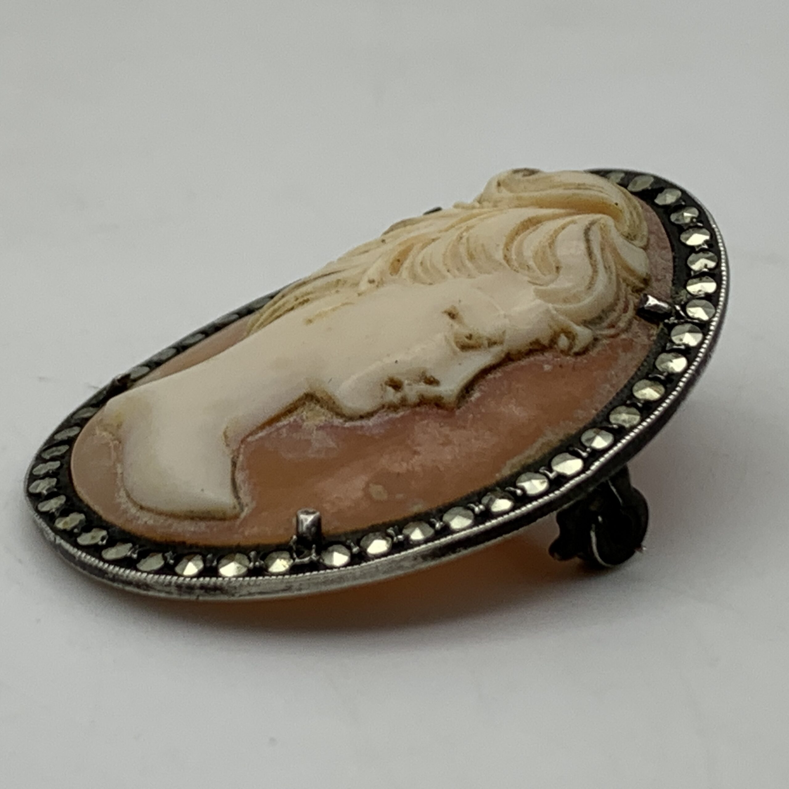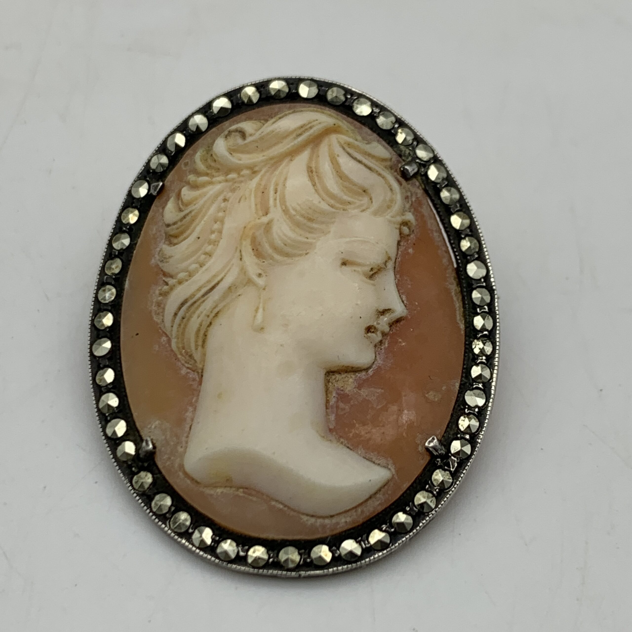 Vintage Silver & Marcasite Cameo Brooch/Pendant